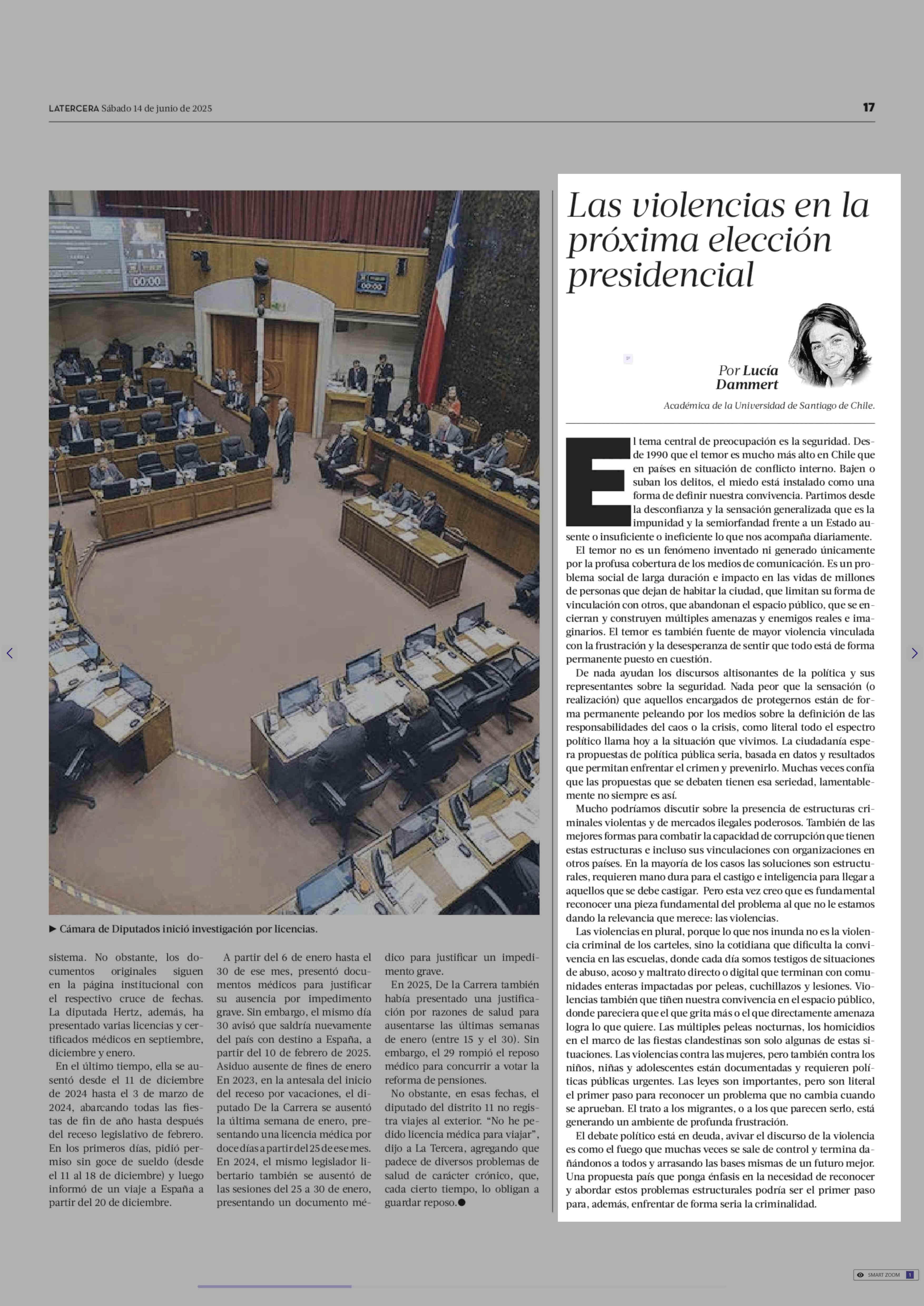 COLUMNAS DE OPINIÓN: Las violencias en la próxima elección presidencial 14-06-2025 La Tercera |