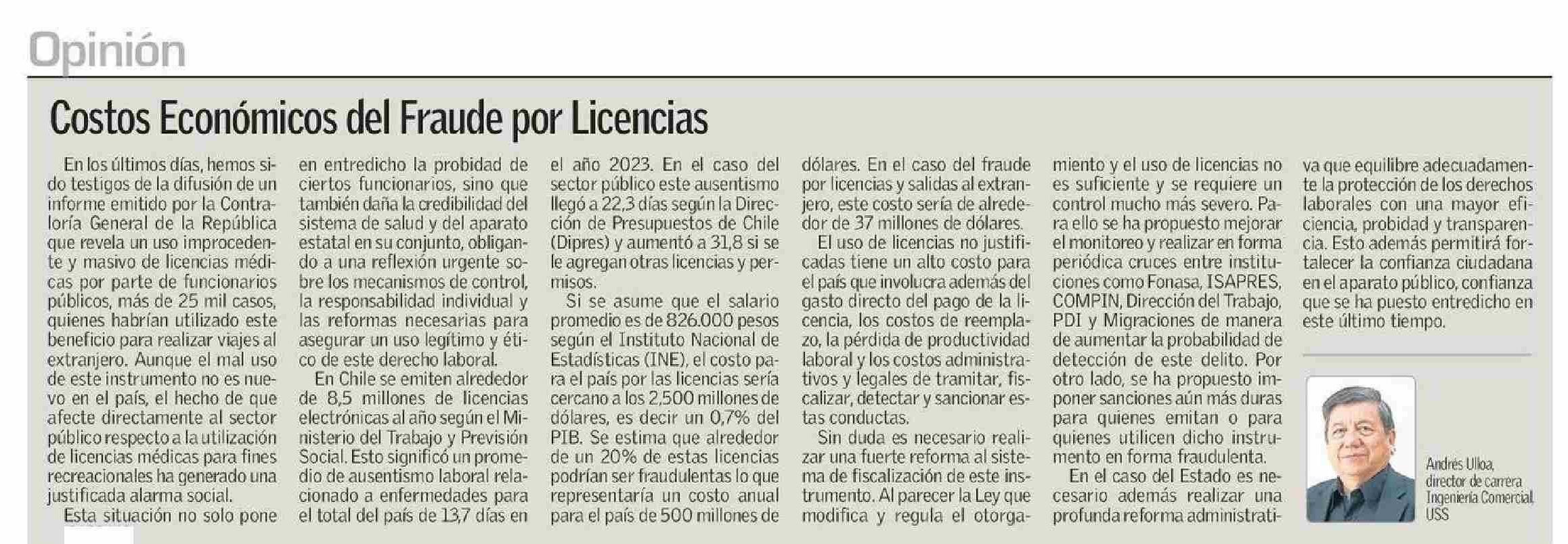 Columnas de Opinión: Costos Económicos del Fraude por Licencias 07-06-2025 El Sur |