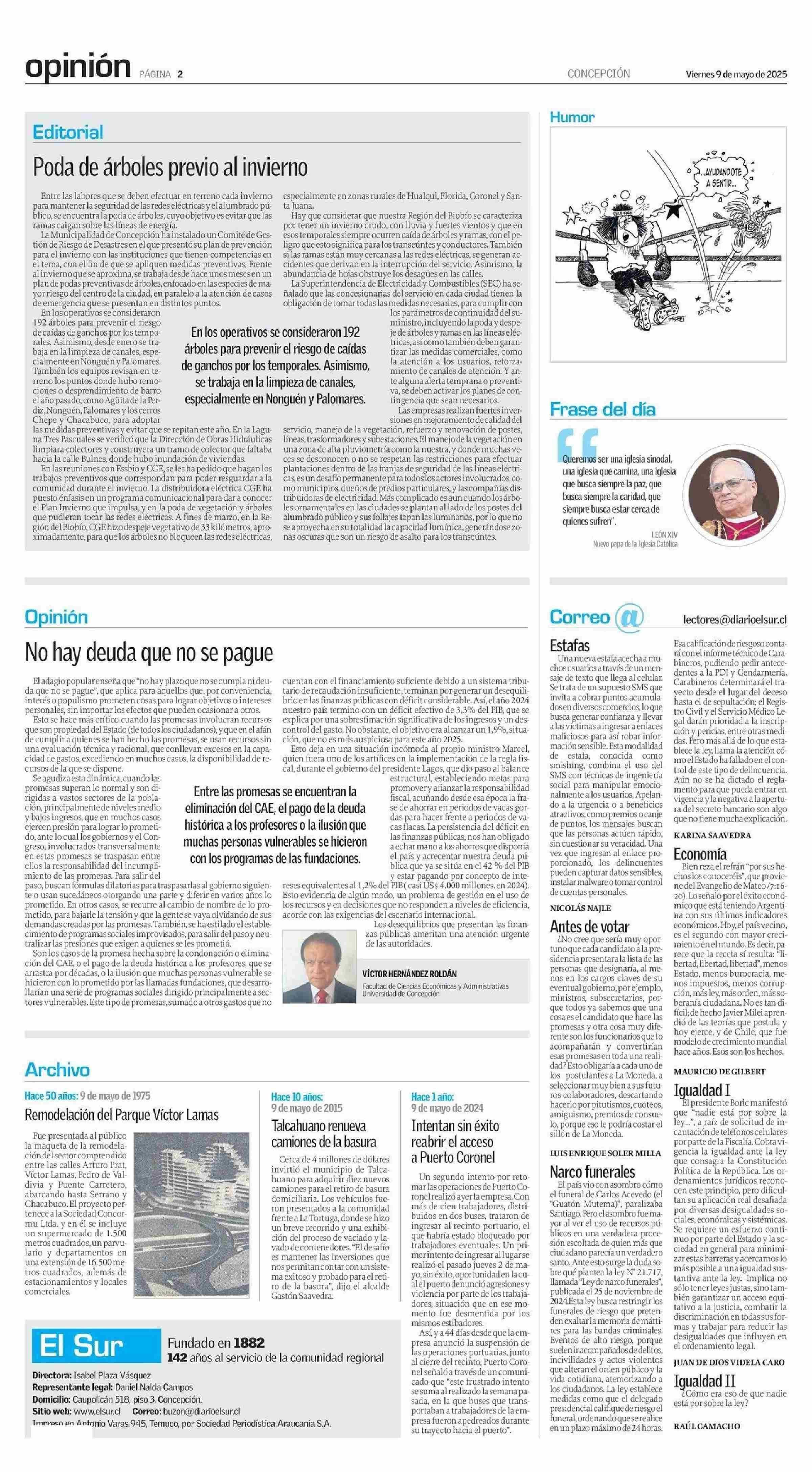 | Fecha: | 09-05-2025 | Sector: | Columnas de Opinión | Región: | Región del Bío-Bío |