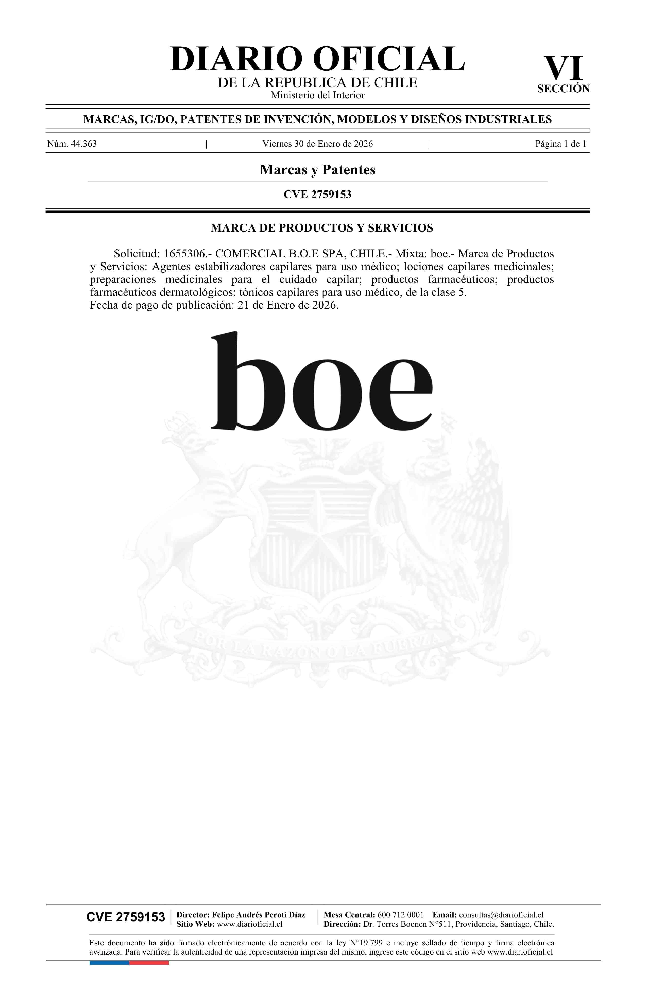 Solicitud número 1655306.- boe 30-01-2026 Diario Oficial Edición Electrónica |