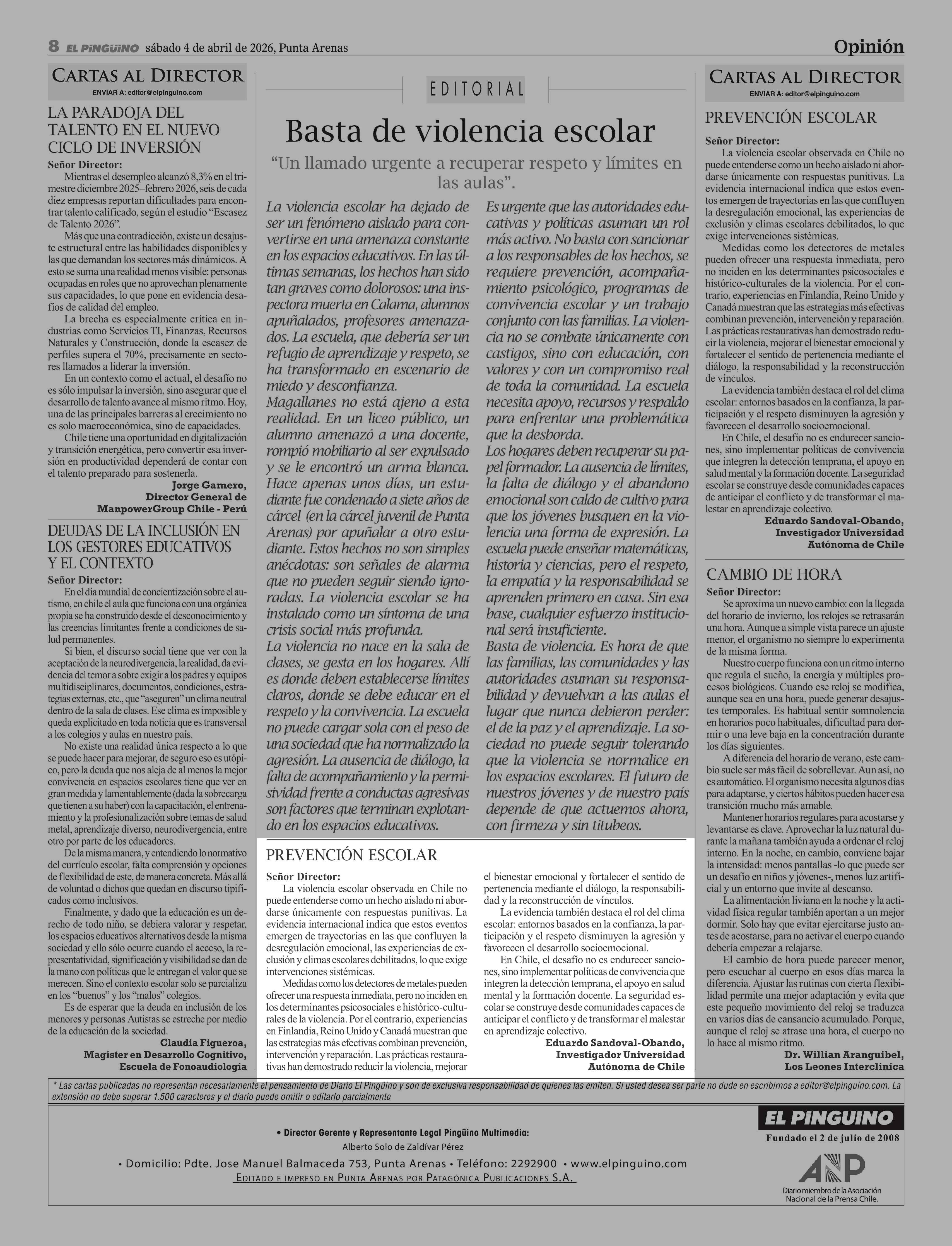Cartas: Prevención escolar 04-04-2026 El Pingüino |