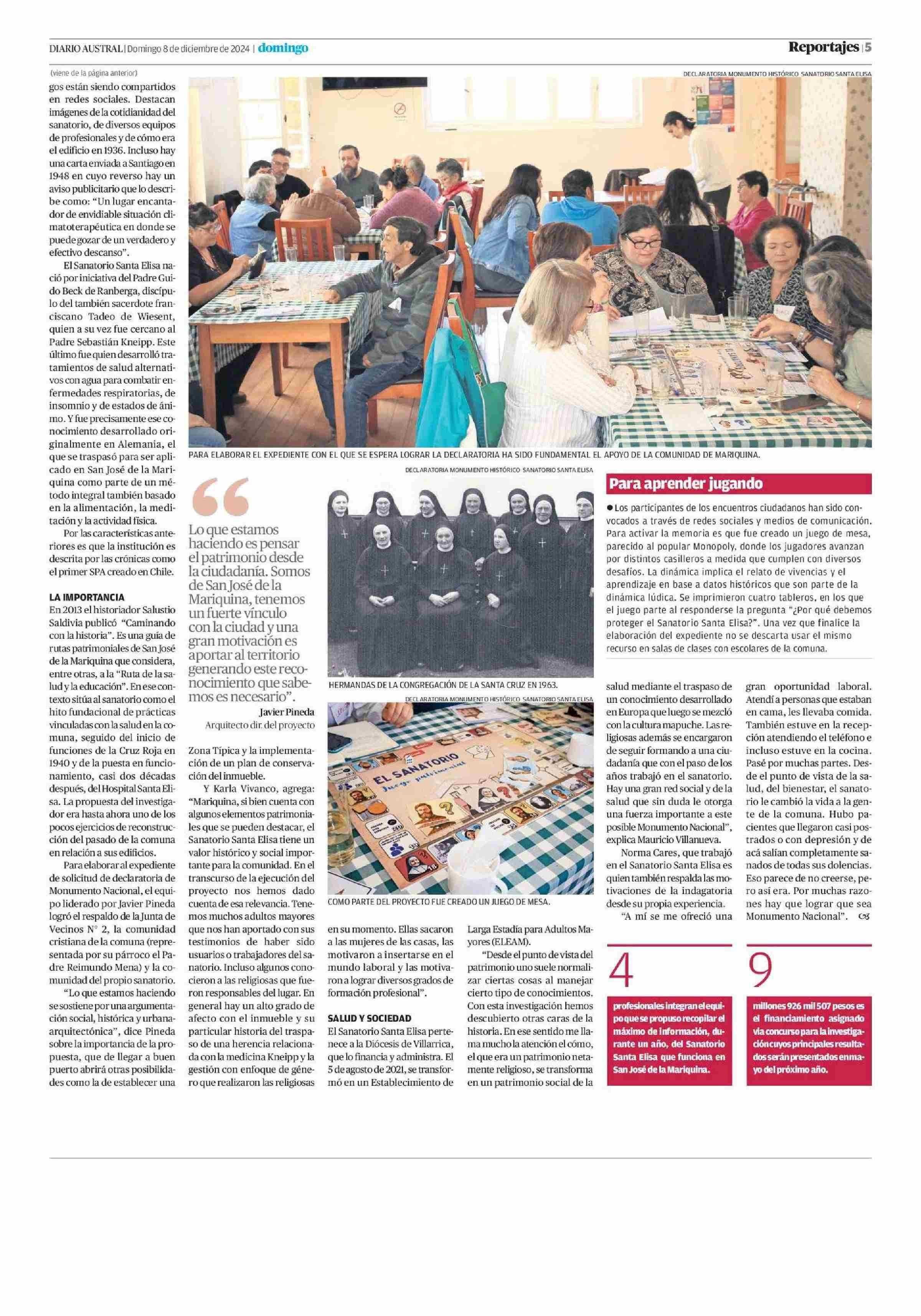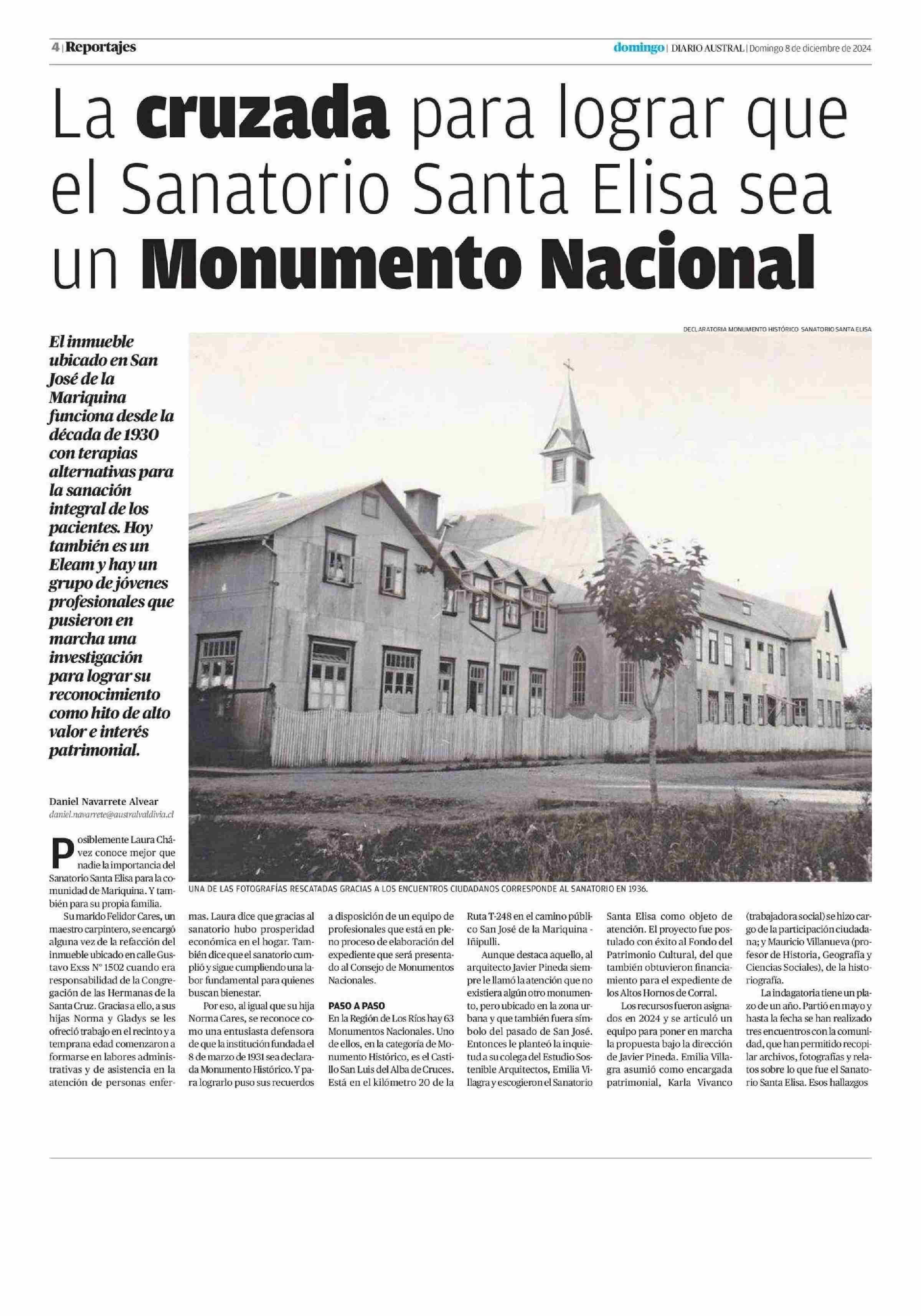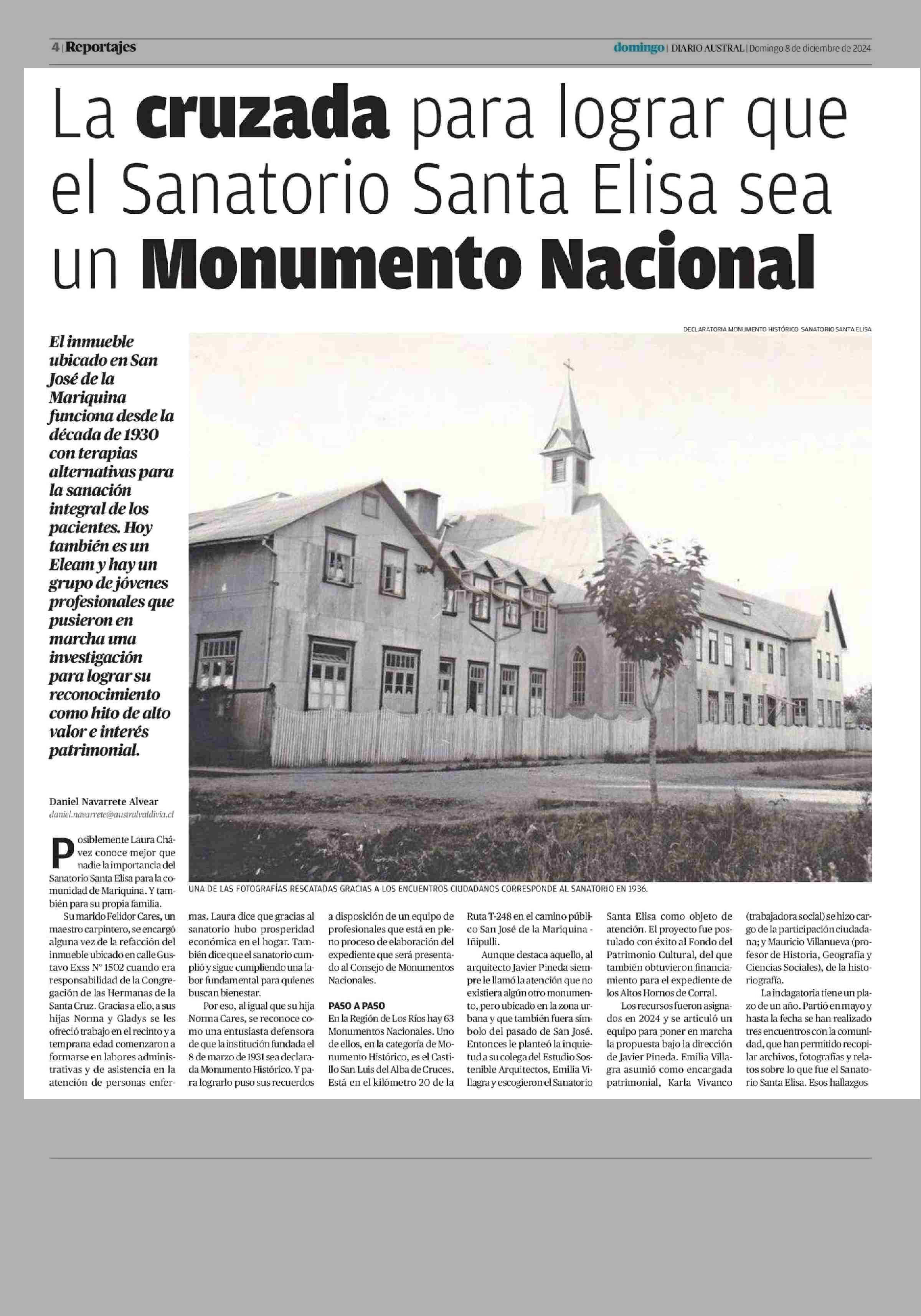 La cruzada para lograr que el Sanatorio Santa Elisa sea un Monumento Nacional 08-12-2024 Diario Austral Región de Los Ríos |