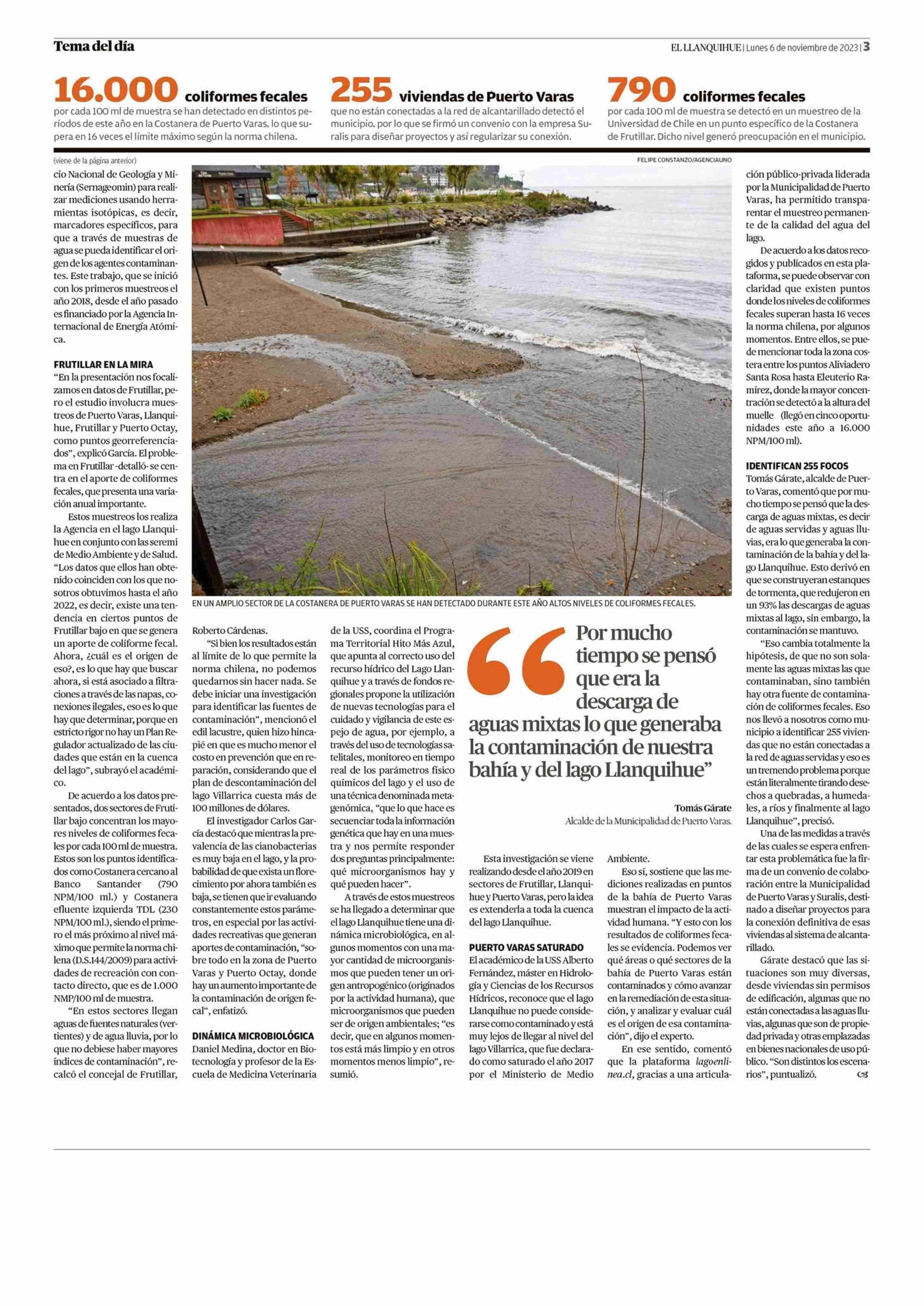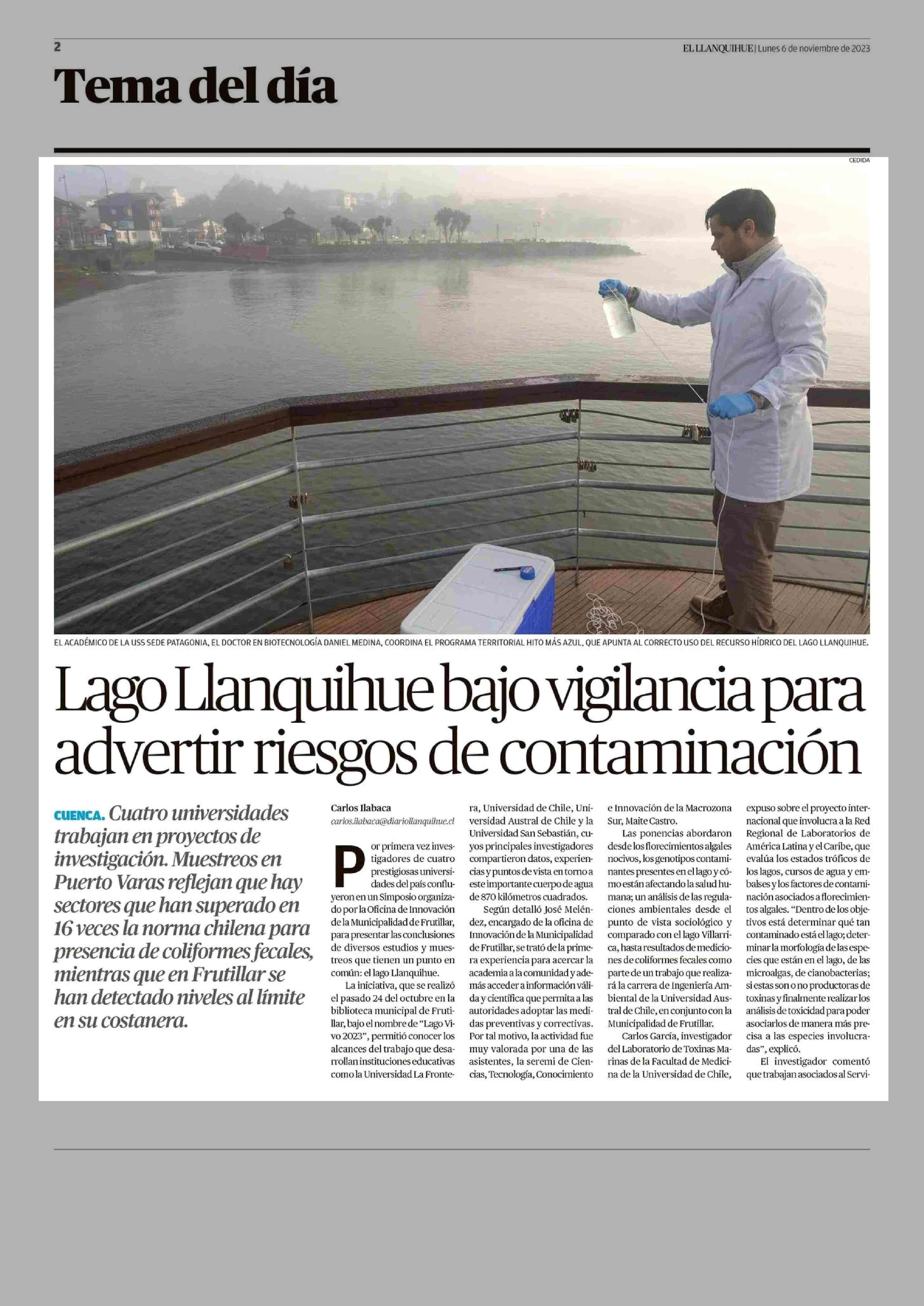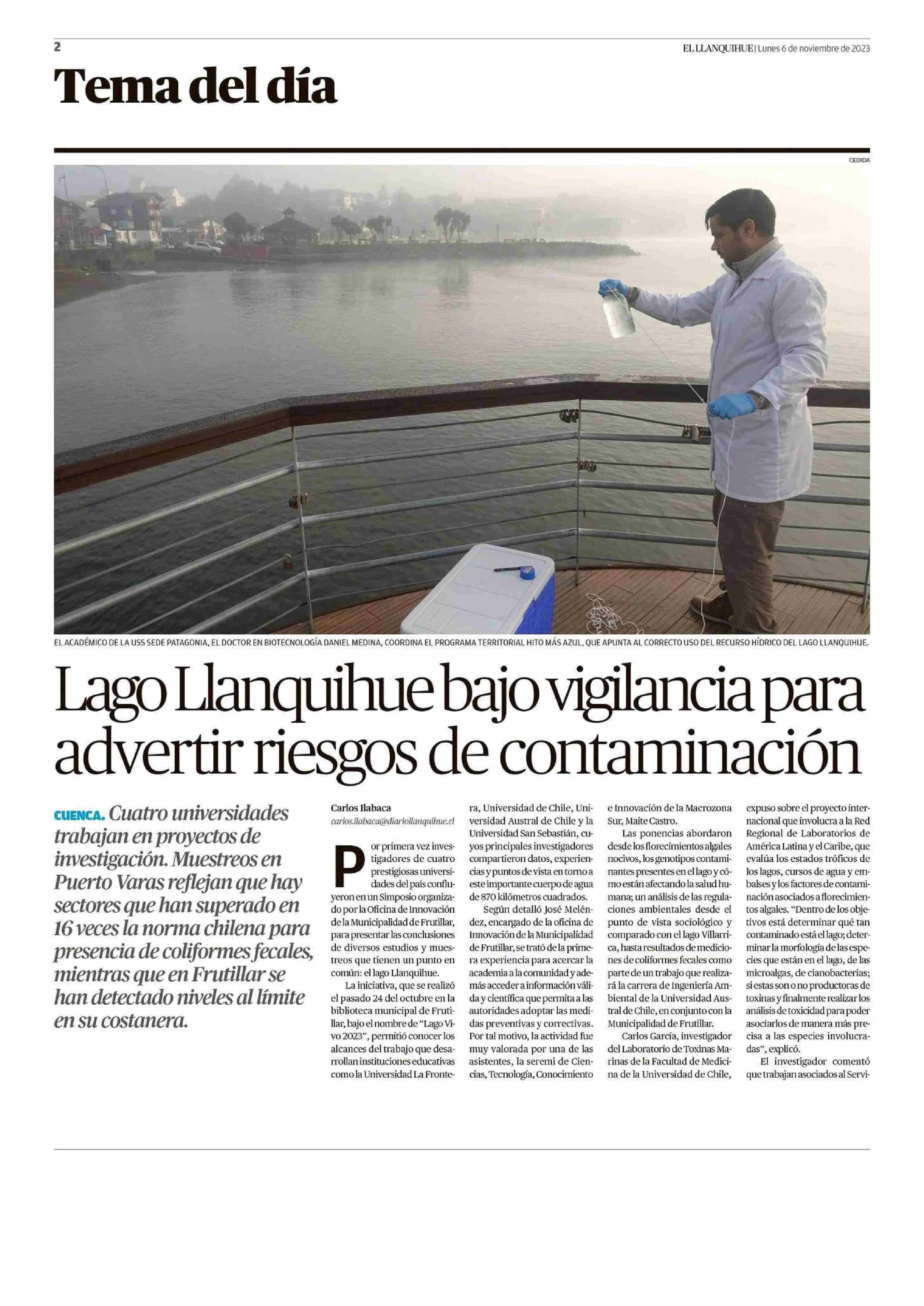 Lago Llanquihue bajo vigilanda para advertir riesgos de contaminación 06-11-2023 El Llanquihue |