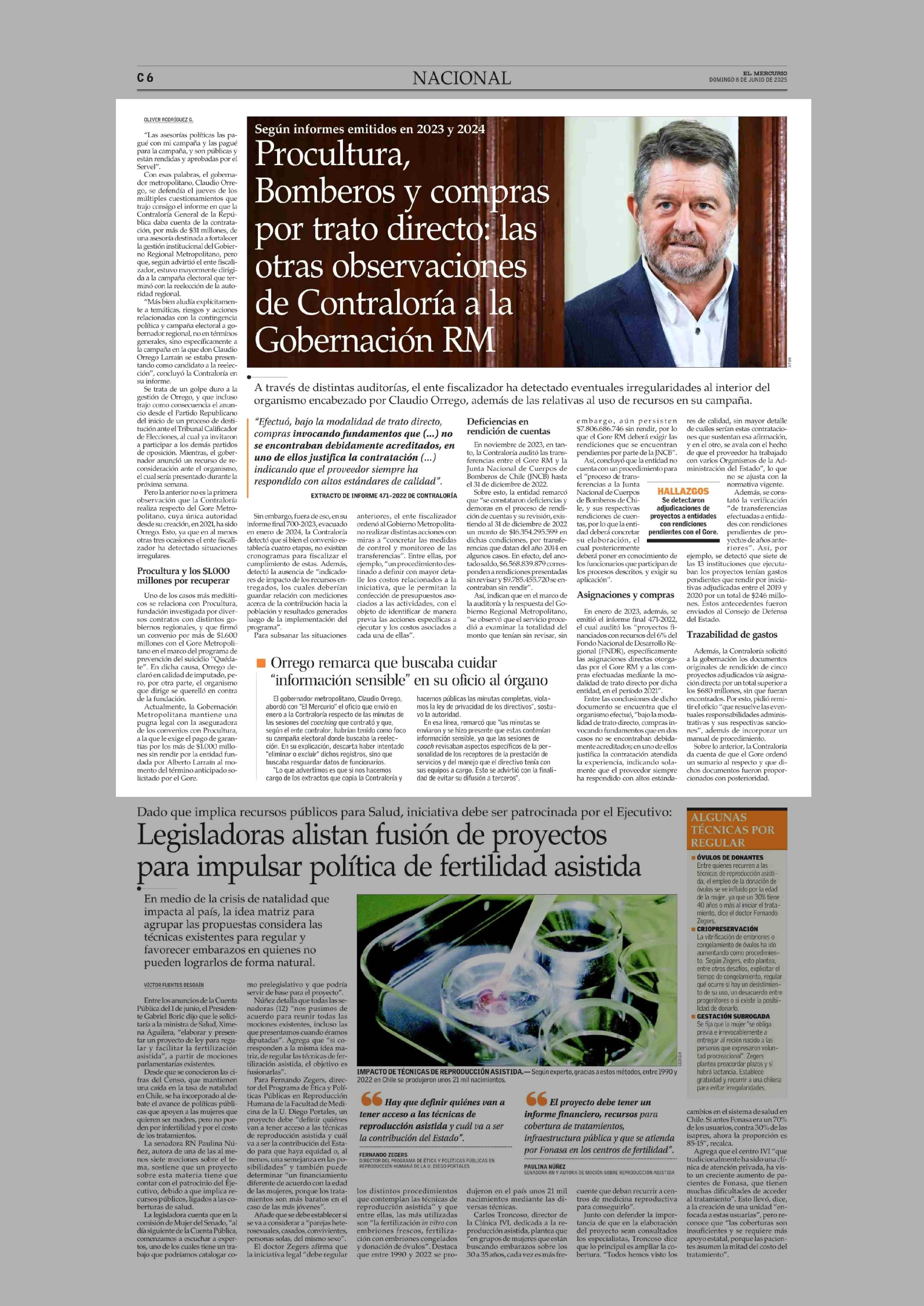Procultura, Bomberos y compras por trato directo; las otras observaciones de Contraloría a lla Gobernación RM 08-06-2025 El Mercurio |