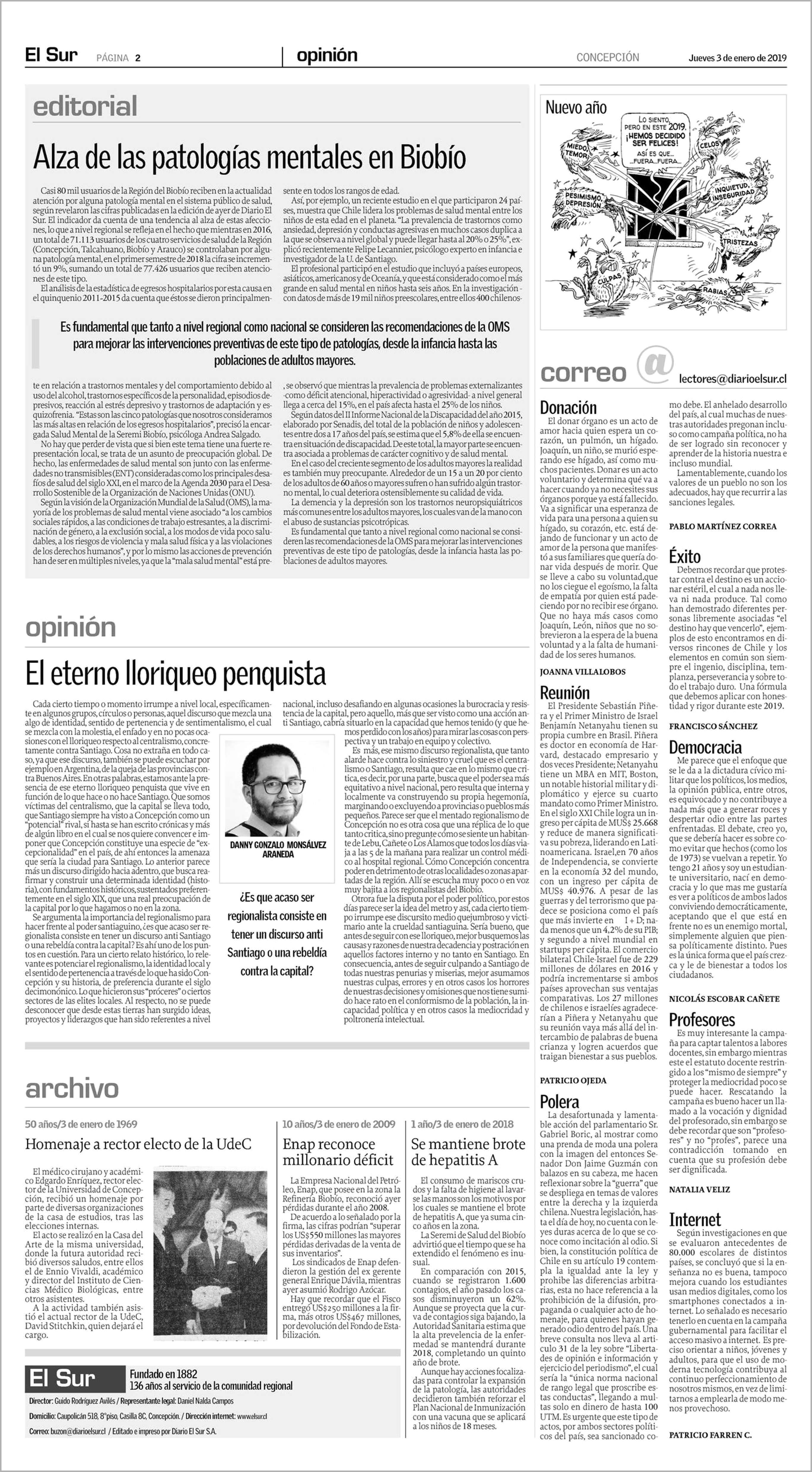 Alza de las patologías mentales en Biobío 03-01-2019 El Sur |