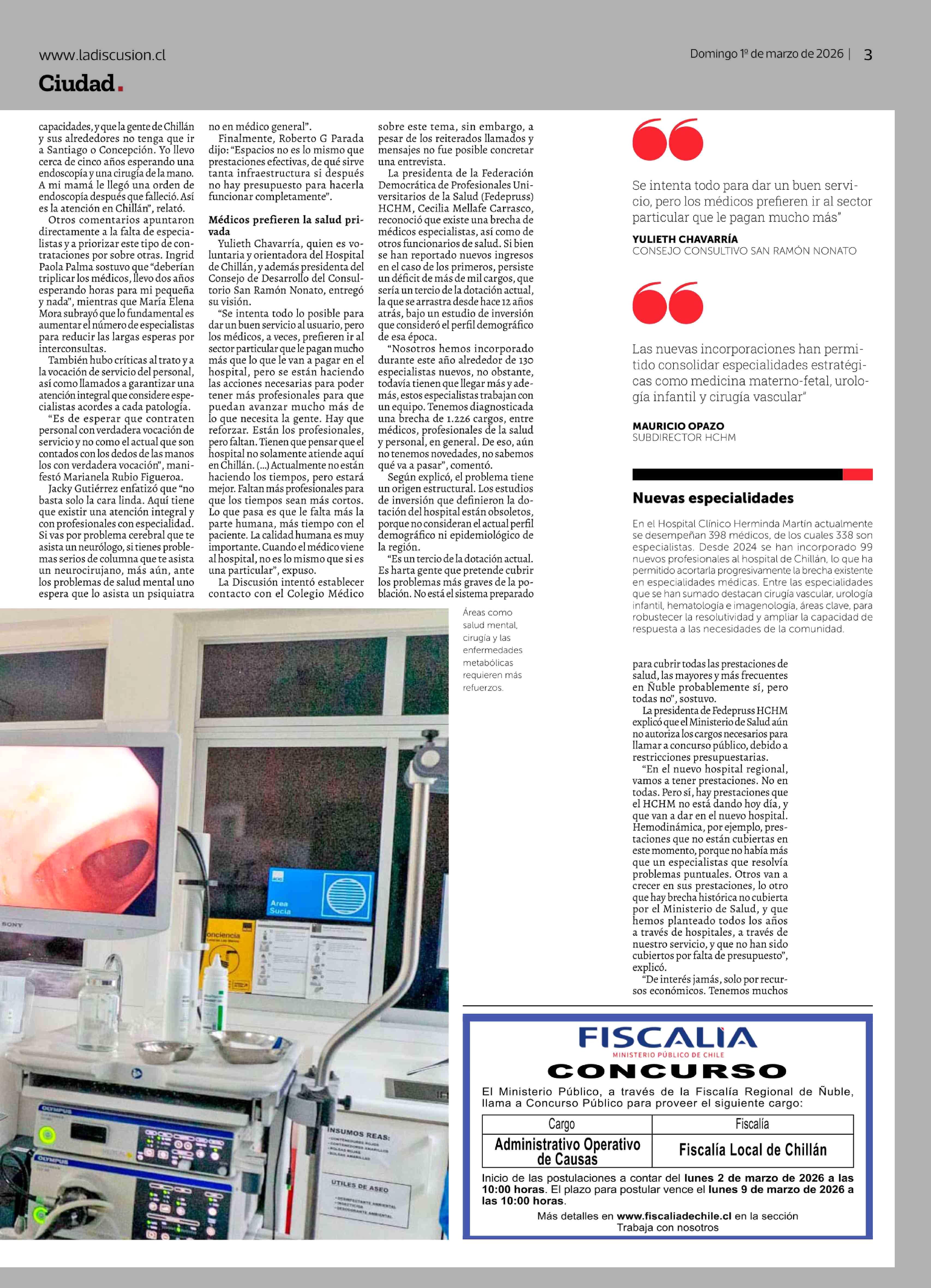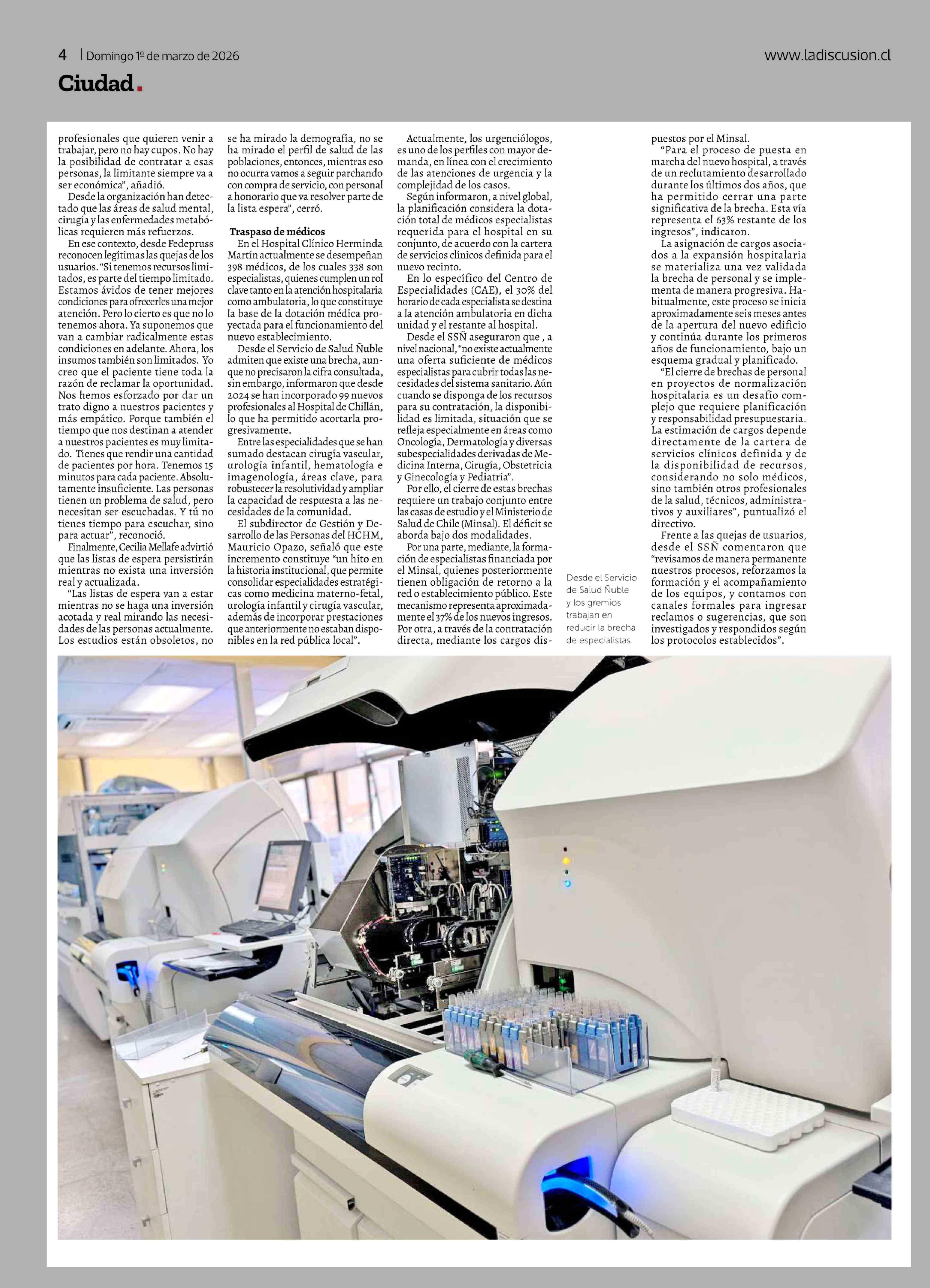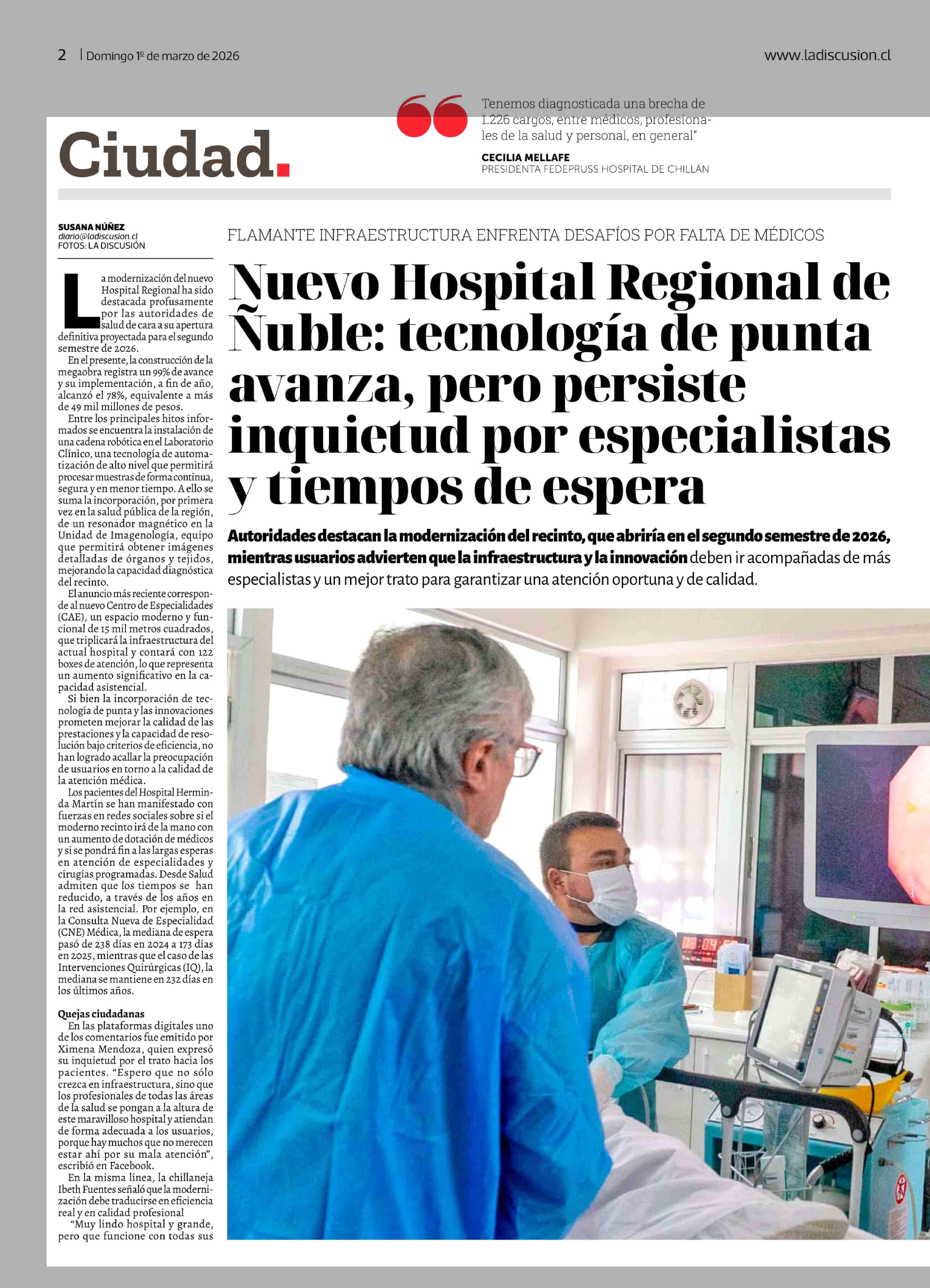 Nuevo Hospital Regional de Nuble: tecnología de punta avanza, pero persiste inquietud por especialistas y tiempos de espera 01-03-2026 La Discusión |