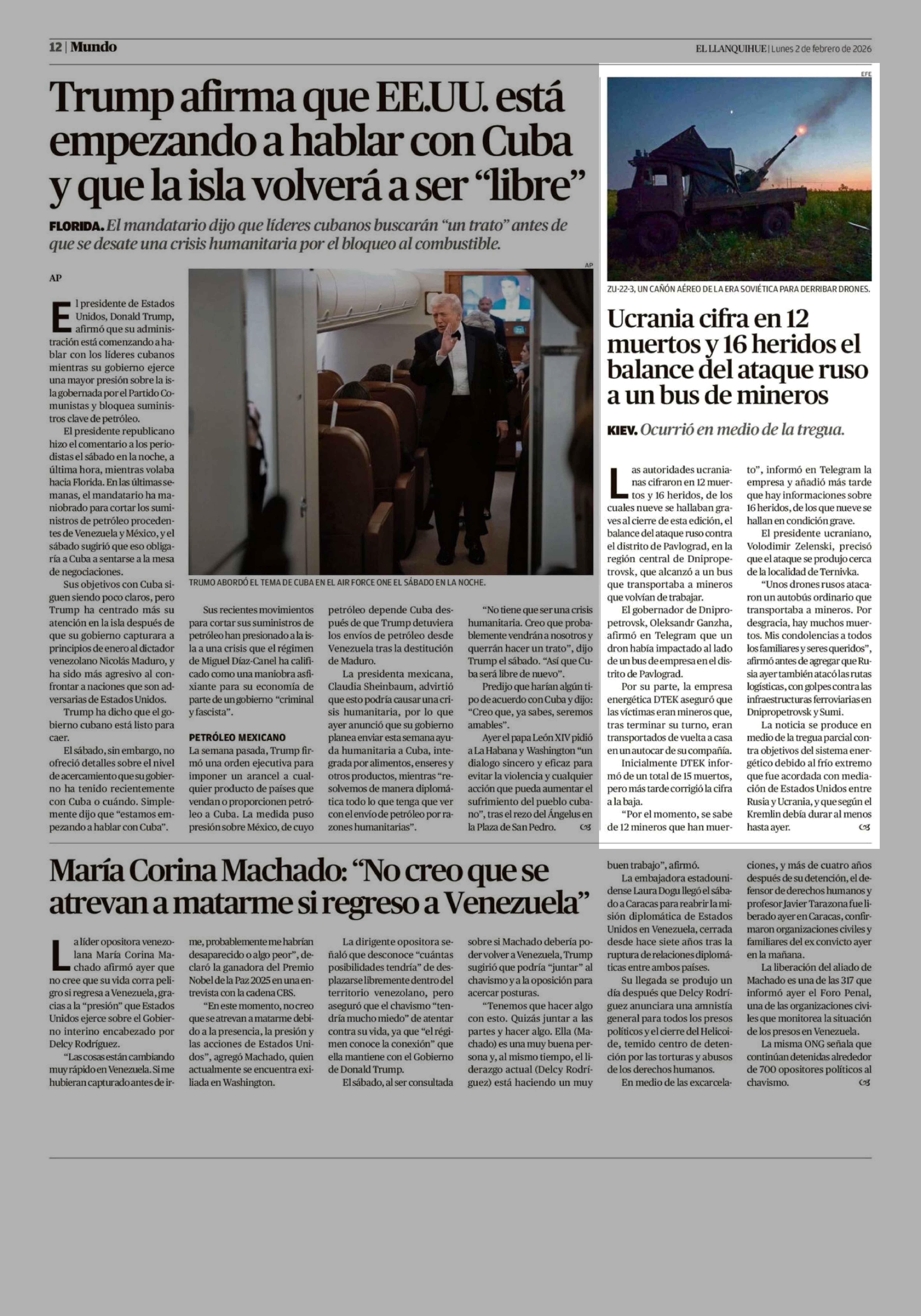 Ucrania cifra en 12 muertos y 16 heridos el balance del ataque ruso a un bus de mineros 02-02-2026 El Llanquihue |