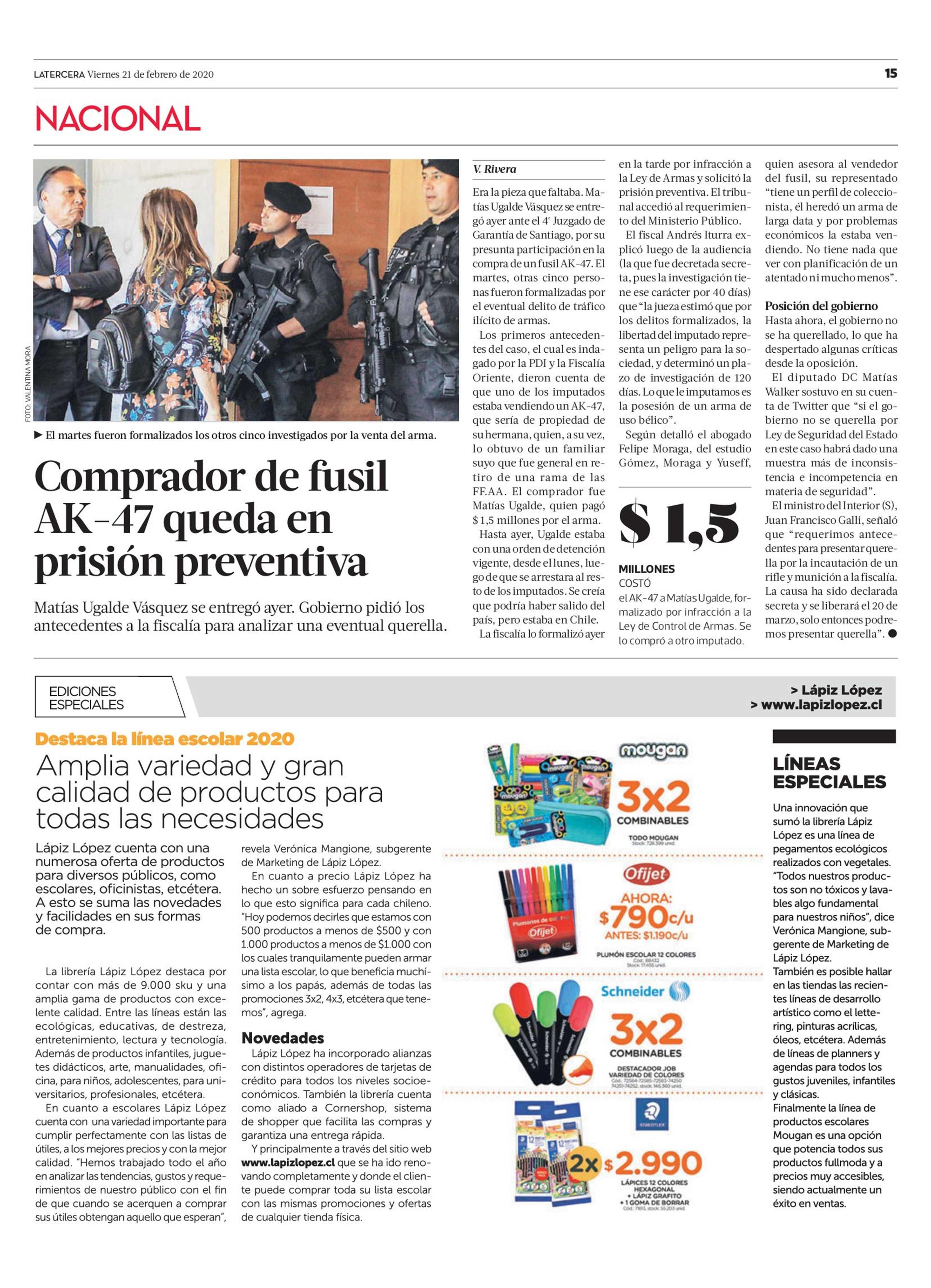 Comprador de fusil AK-47 queda en prisión preventiva 21-02-2020 La Tercera |