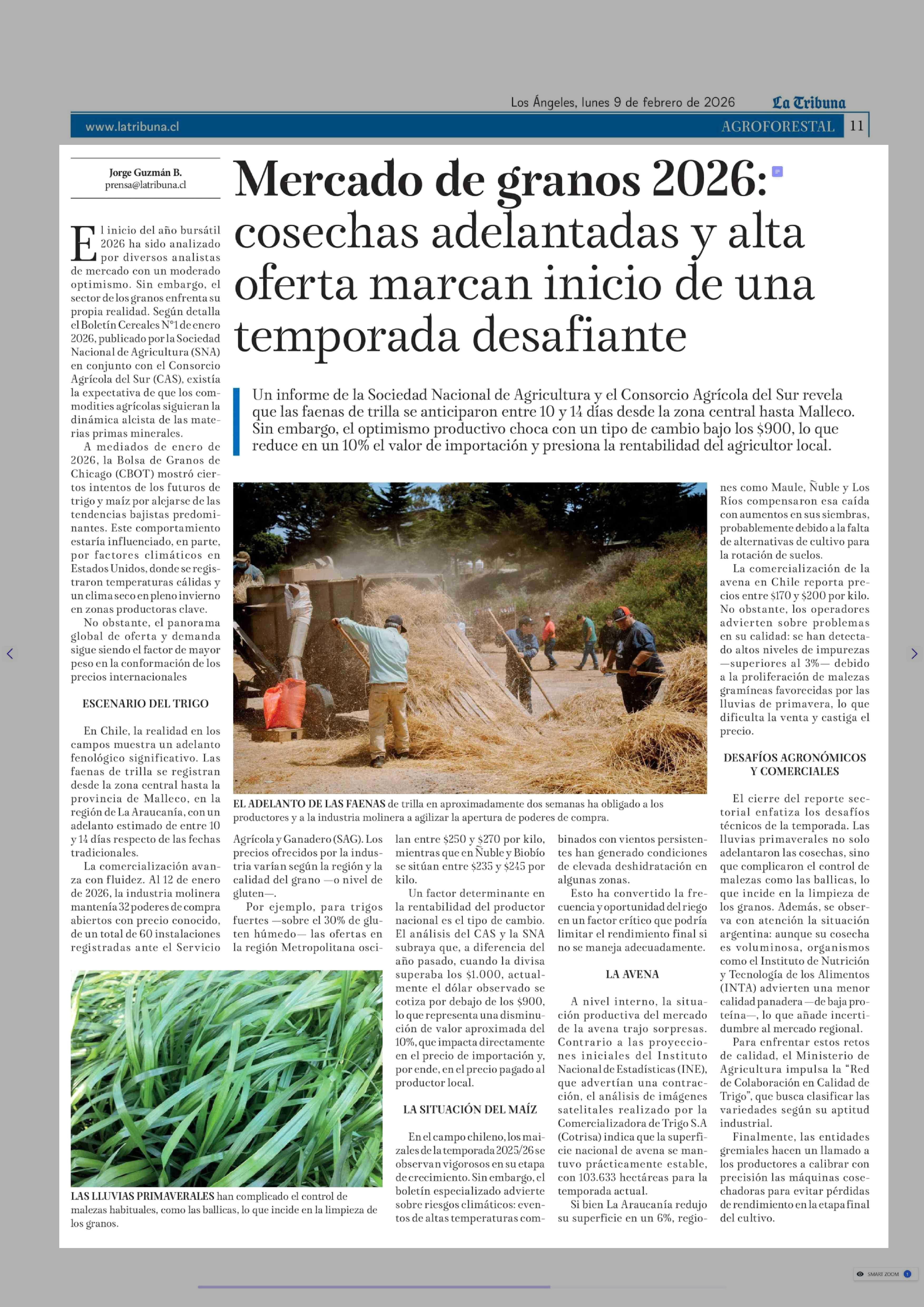 Título: Mercado de granos 2026: cosechas adelantadas y alta oferta marcan inicio de una temporada desafiante