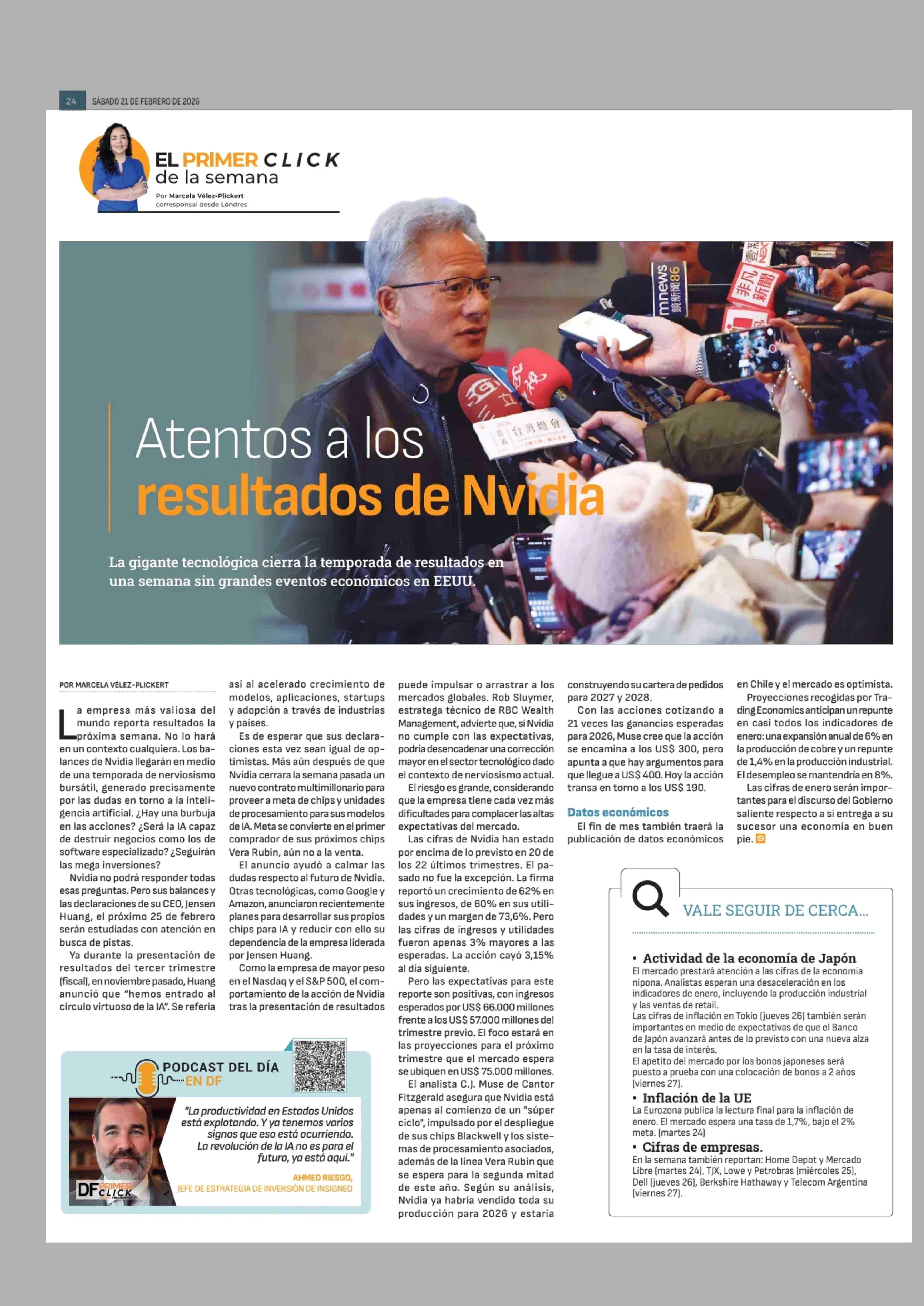 Atentos a los resultados de Nvidia 21-02-2026 Diario Financiero |