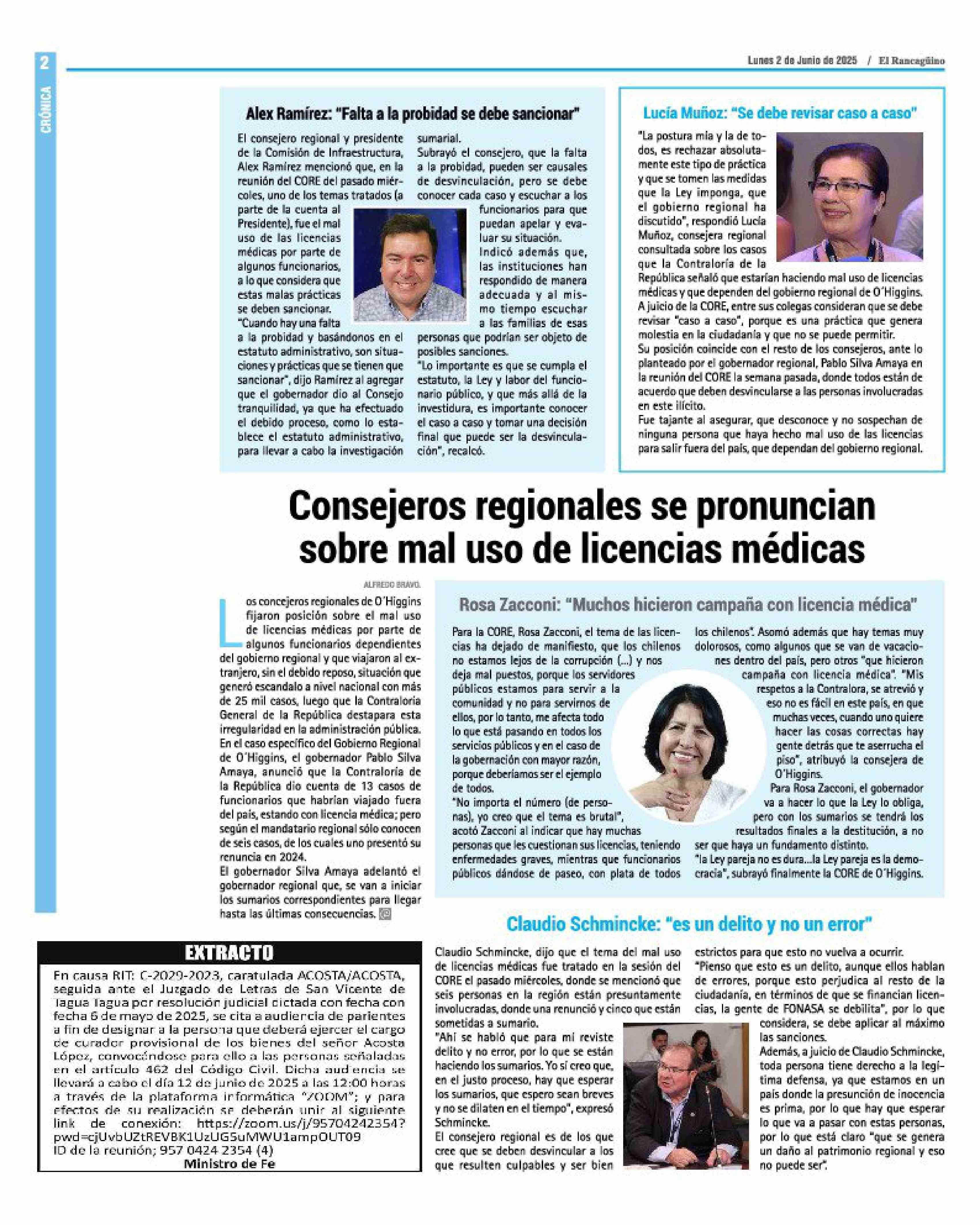 Consejeros regionales se pronuncian sobre mal uso de licencias médicas 02-06-2025 El Rancagüino |