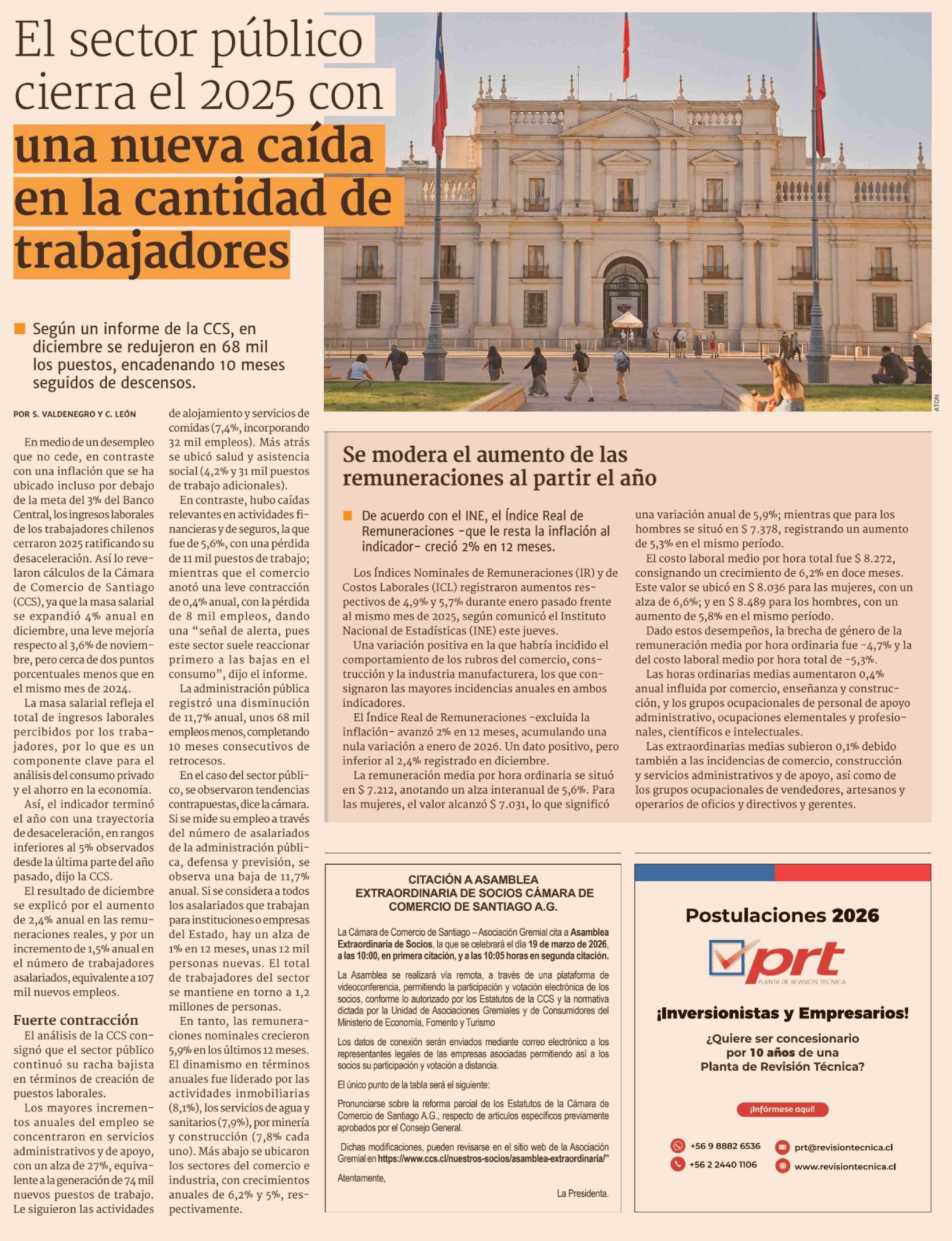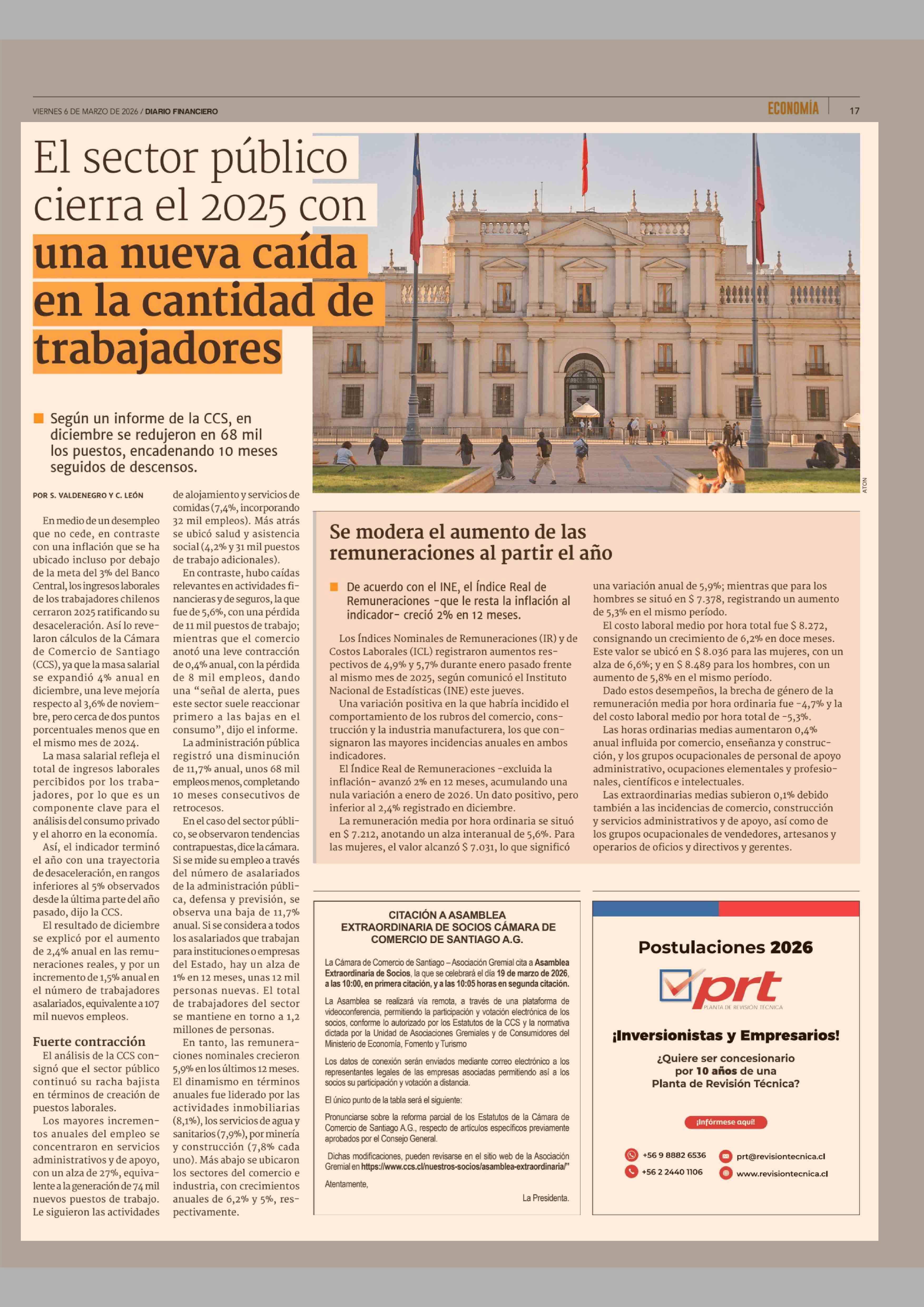El sector público cierra el 2025 con una nueva caída en la cantidad de trabajadores 06-03-2026 Diario Financiero |