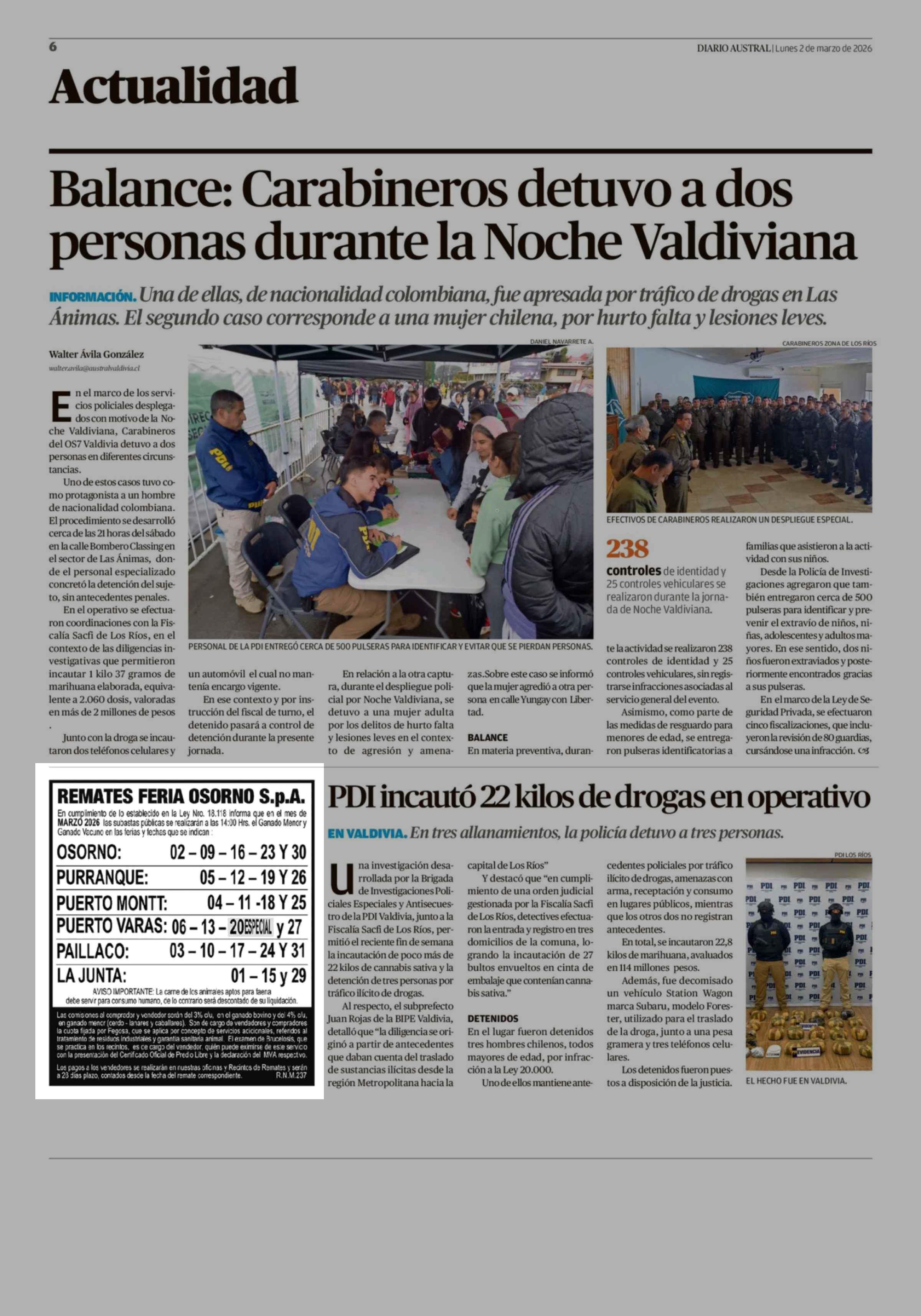 Remates: REMATES FERIA OSORNO S.p.A. 02-03-2026 Diario Austral Región de Los Ríos |