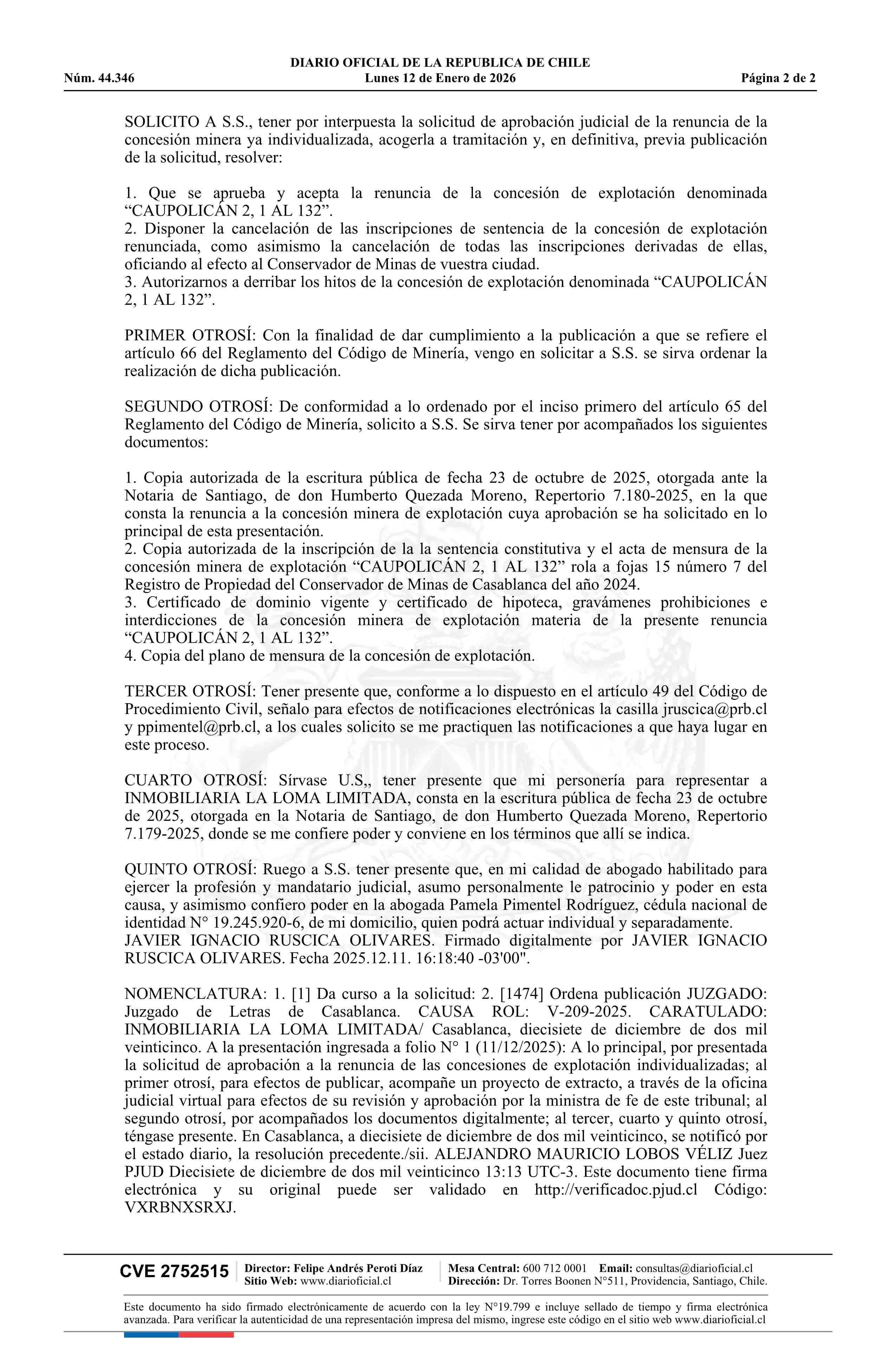 12-01-2026 DIARIO OFICIAL CHILE - BOLETÍN OFICIAL DE MINERÍA