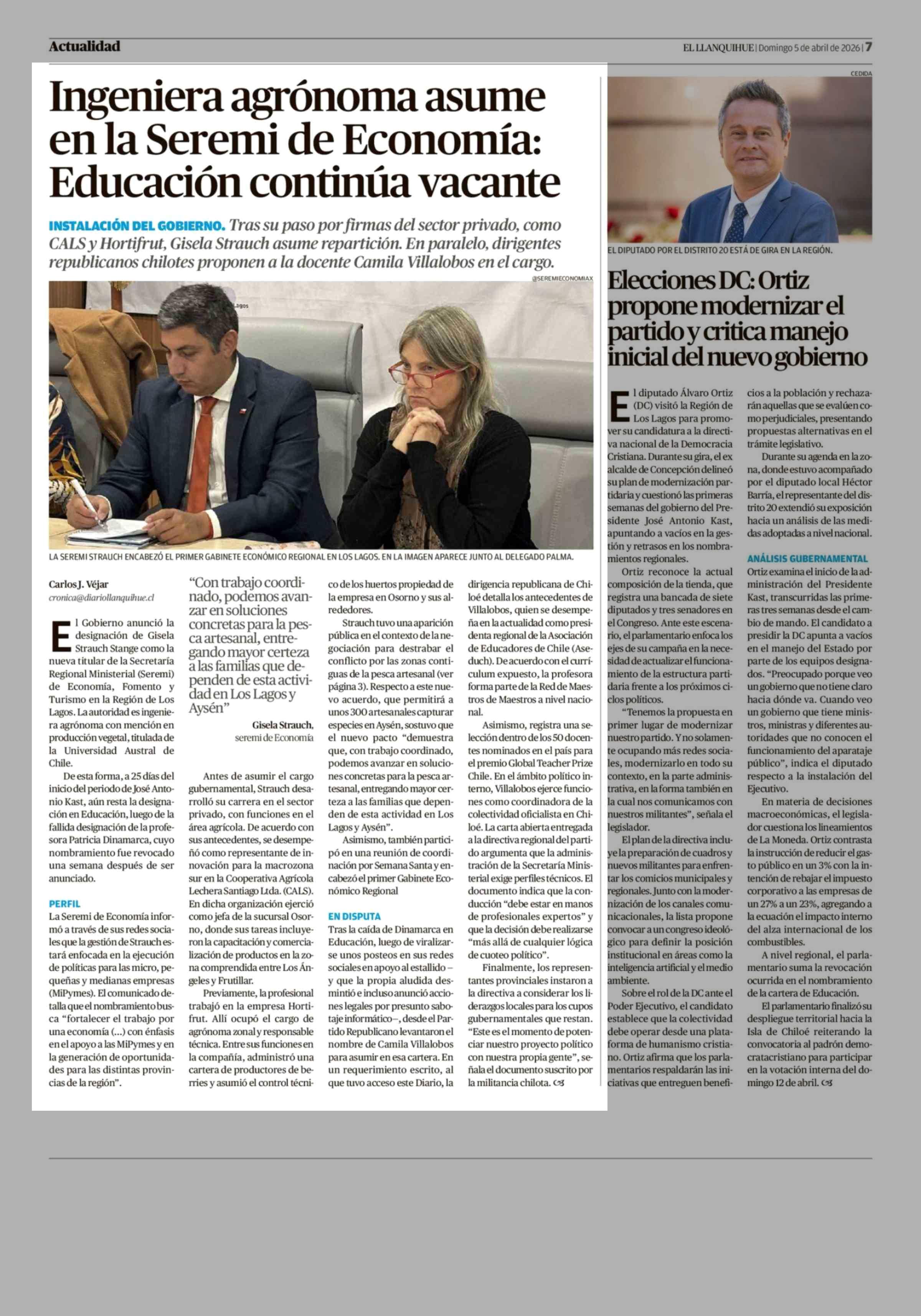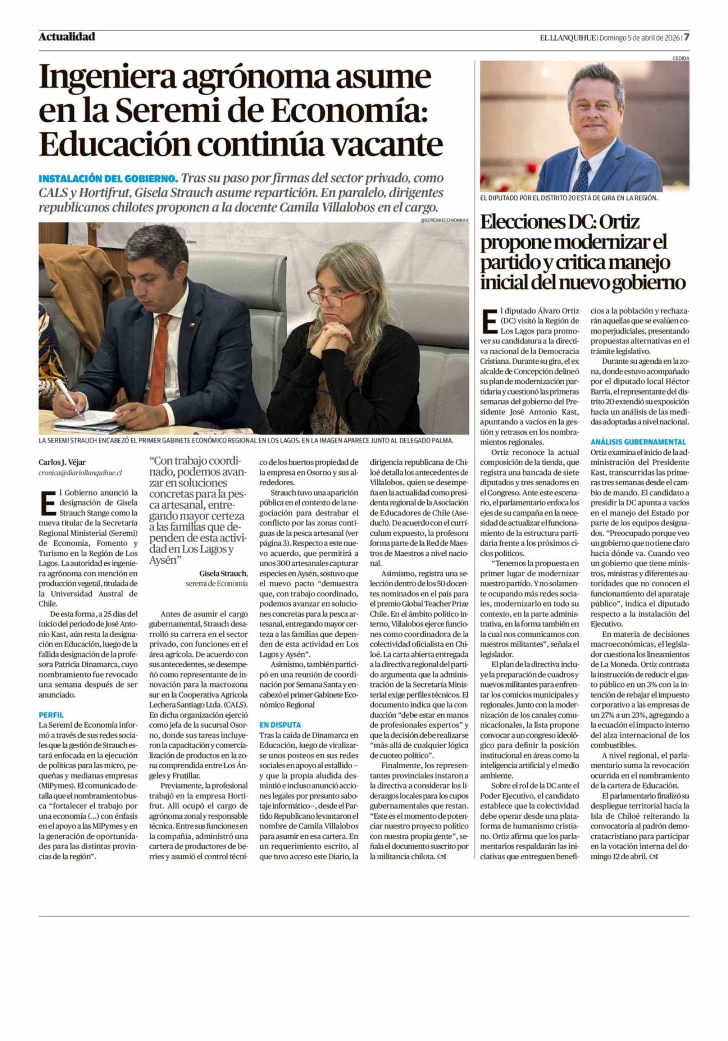 Ingeniera agrónoma asume en la Seremi de Economía: Educación continúa vacante 05-04-2026 El Llanquihue |