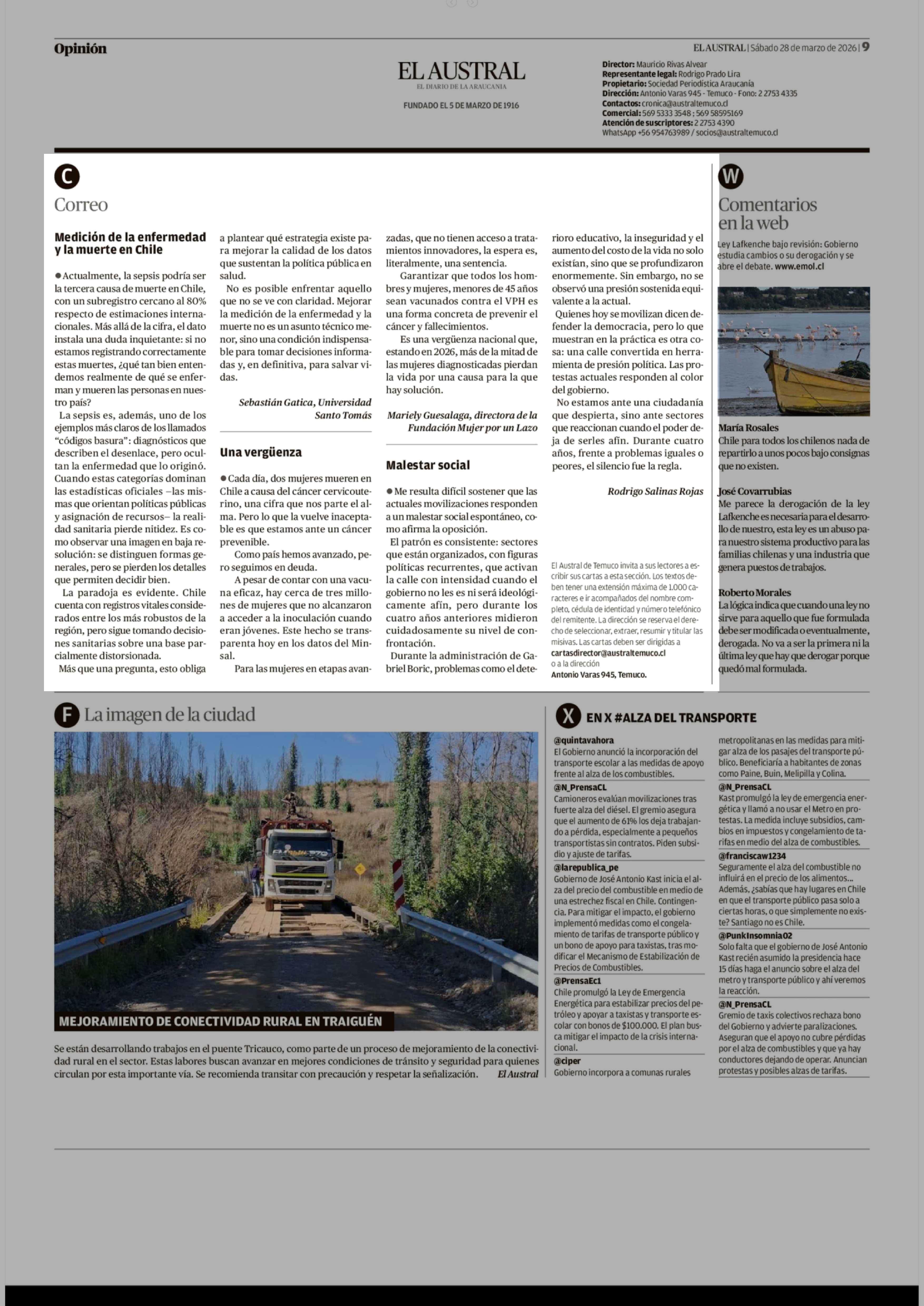 Fecha: 28-03-2026 Sector: Cartas Región: Región de la Araucanía