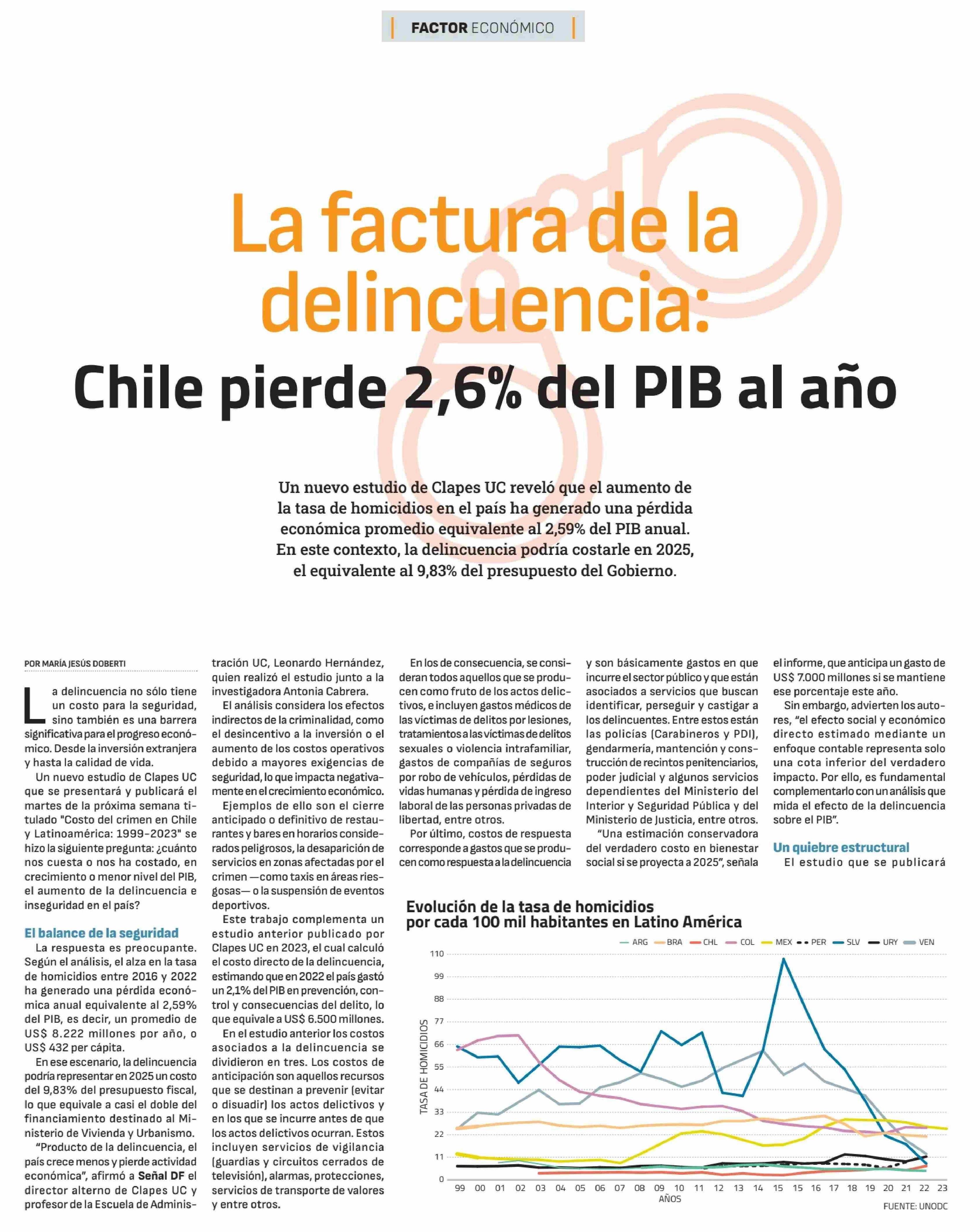 La factura'de la delinctiencia: Chile pierde 2,6% del PIB al año 07-06-2025 Diario Financiero |
