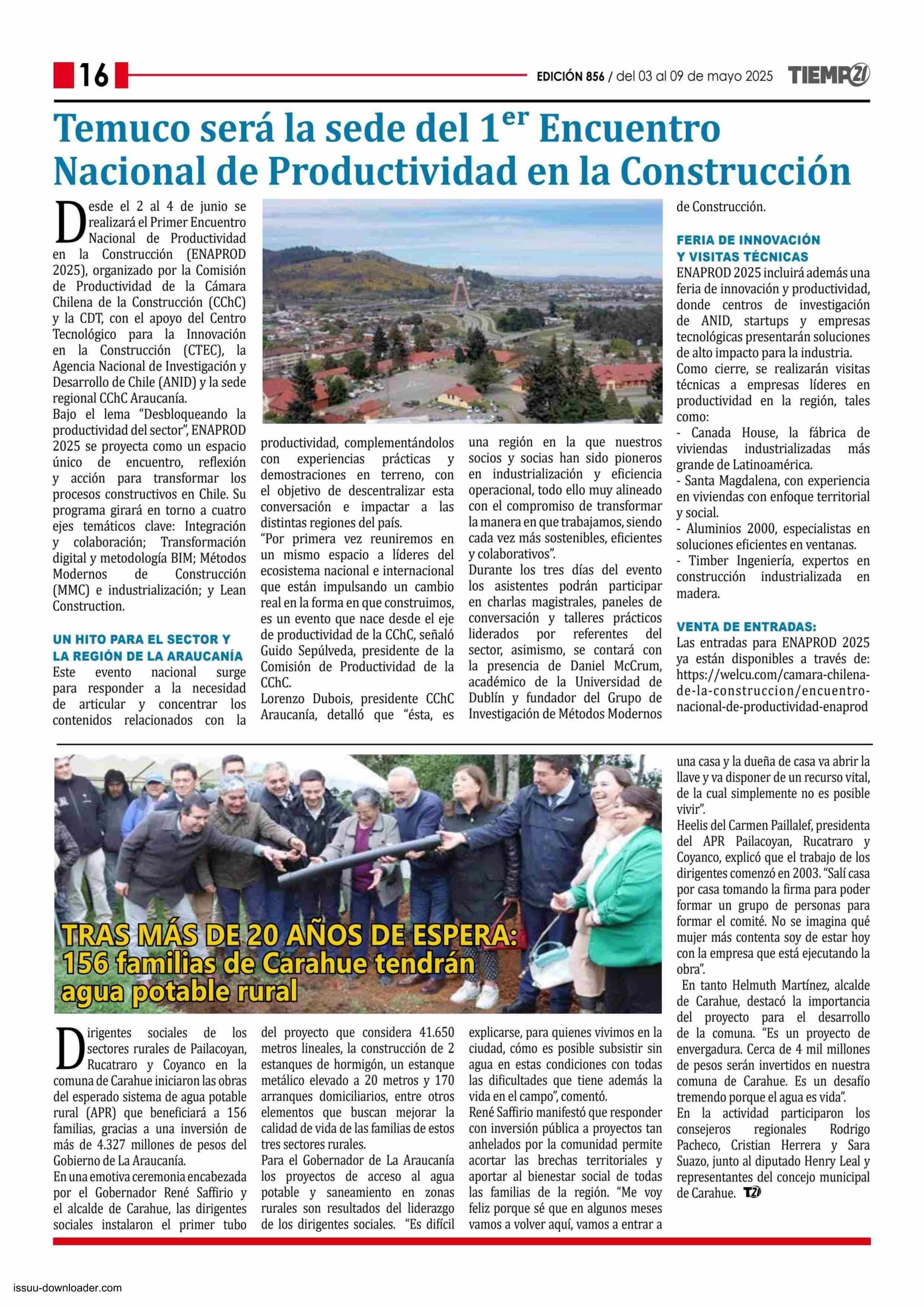 Temuco será la sede del Encuentro Nacional de Productividad en la Construcción 03-05-2025 Tiempo 21 |