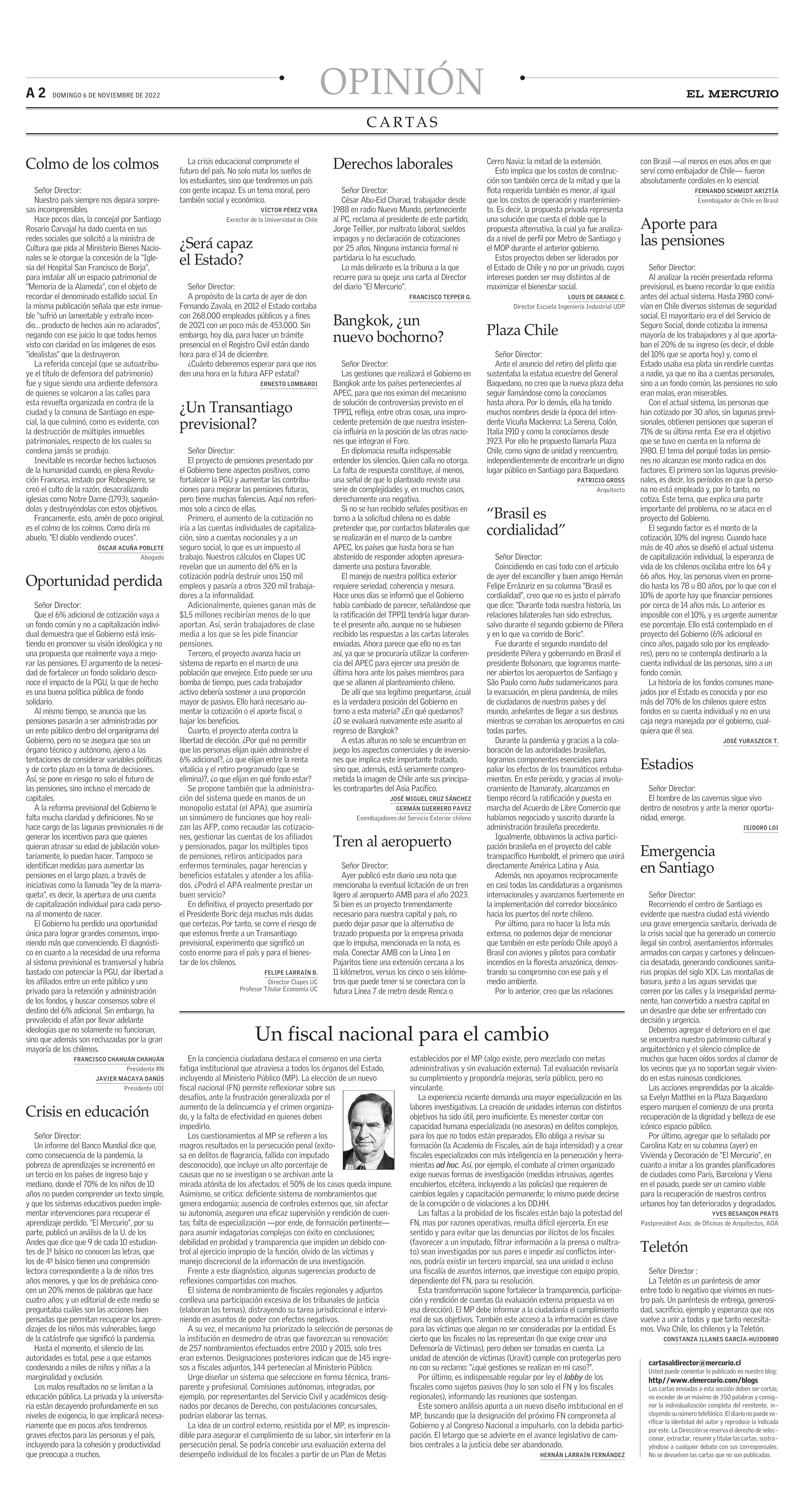 | Fecha: | 06-11-2022 | Sector: | Opinión - Cartas | Región: | Región Metropolitana de Santiago |