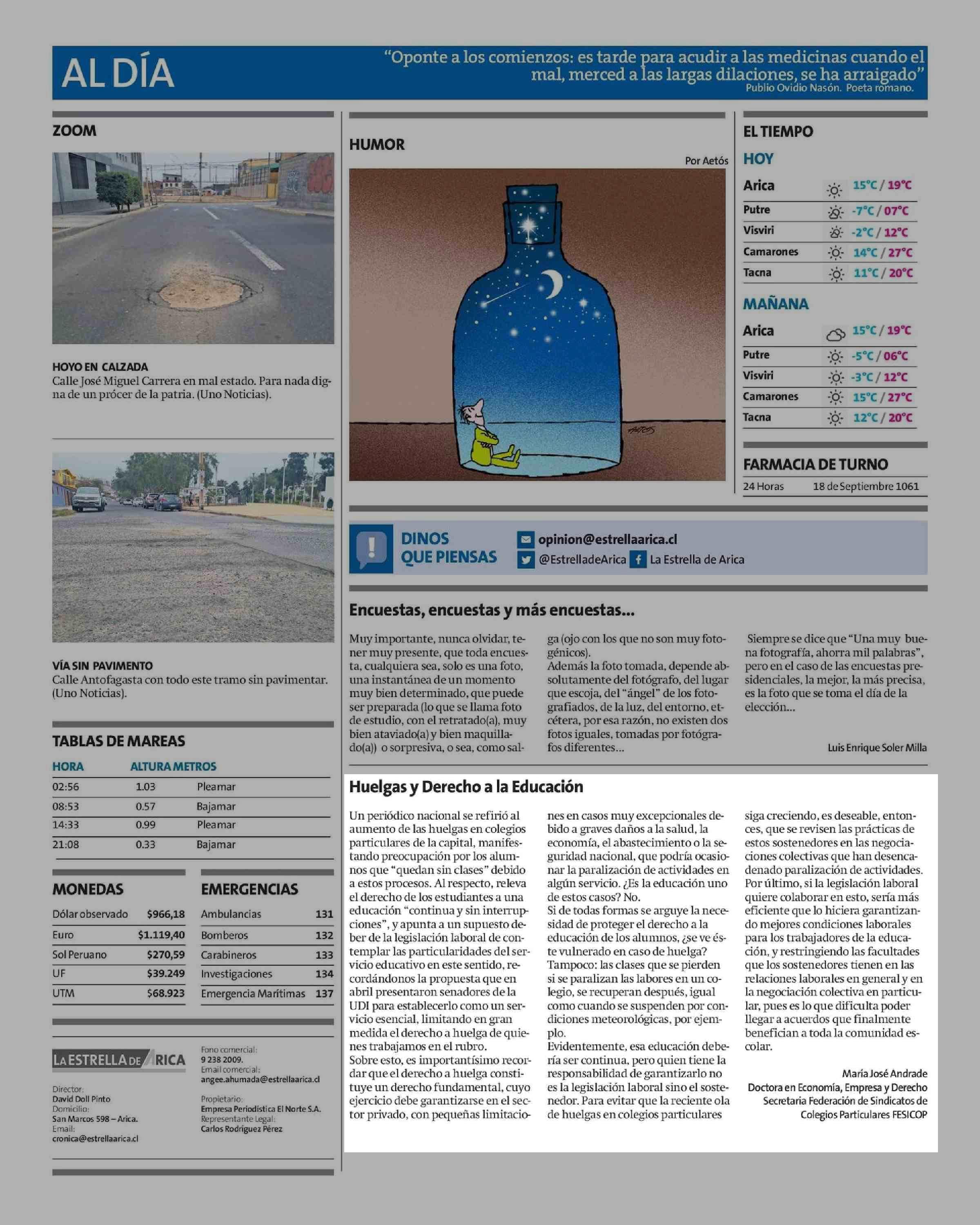 CARTAS: Huelgas y Derecho a la Educación 18-07-2025 La Estrella de Arica |