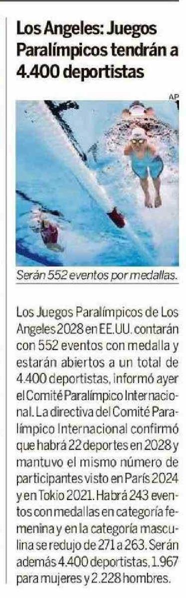 Los Angeles: Juegos Paralímpicos tendrán a 4,400 deportistas 04-06-2025 Hoy x Hoy Antofagasta |
