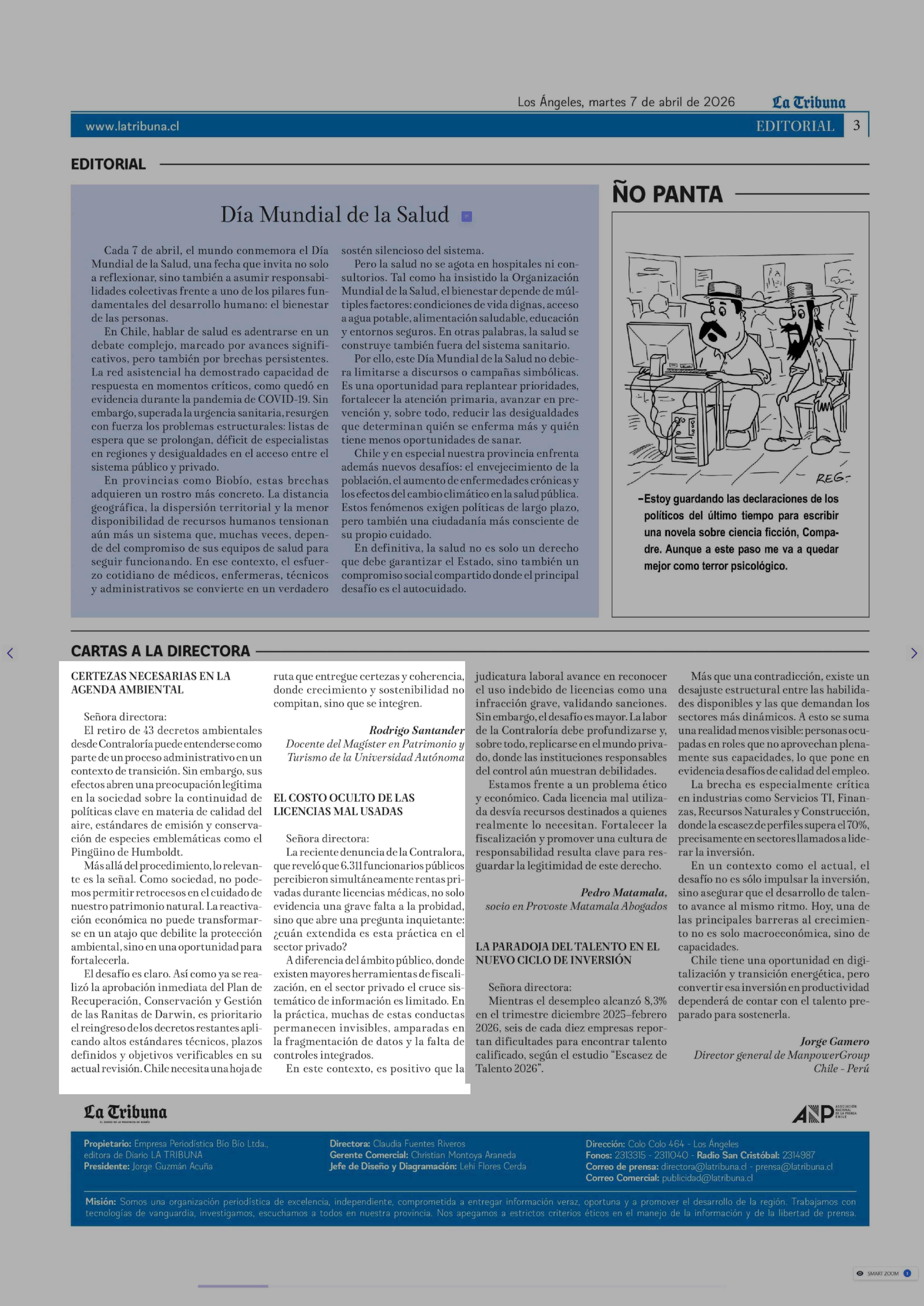 CARTAS: CERTEZAS NECESARIAS EN LA AGENDA AMBIENTAL 07-04-2026 La Tribuna |