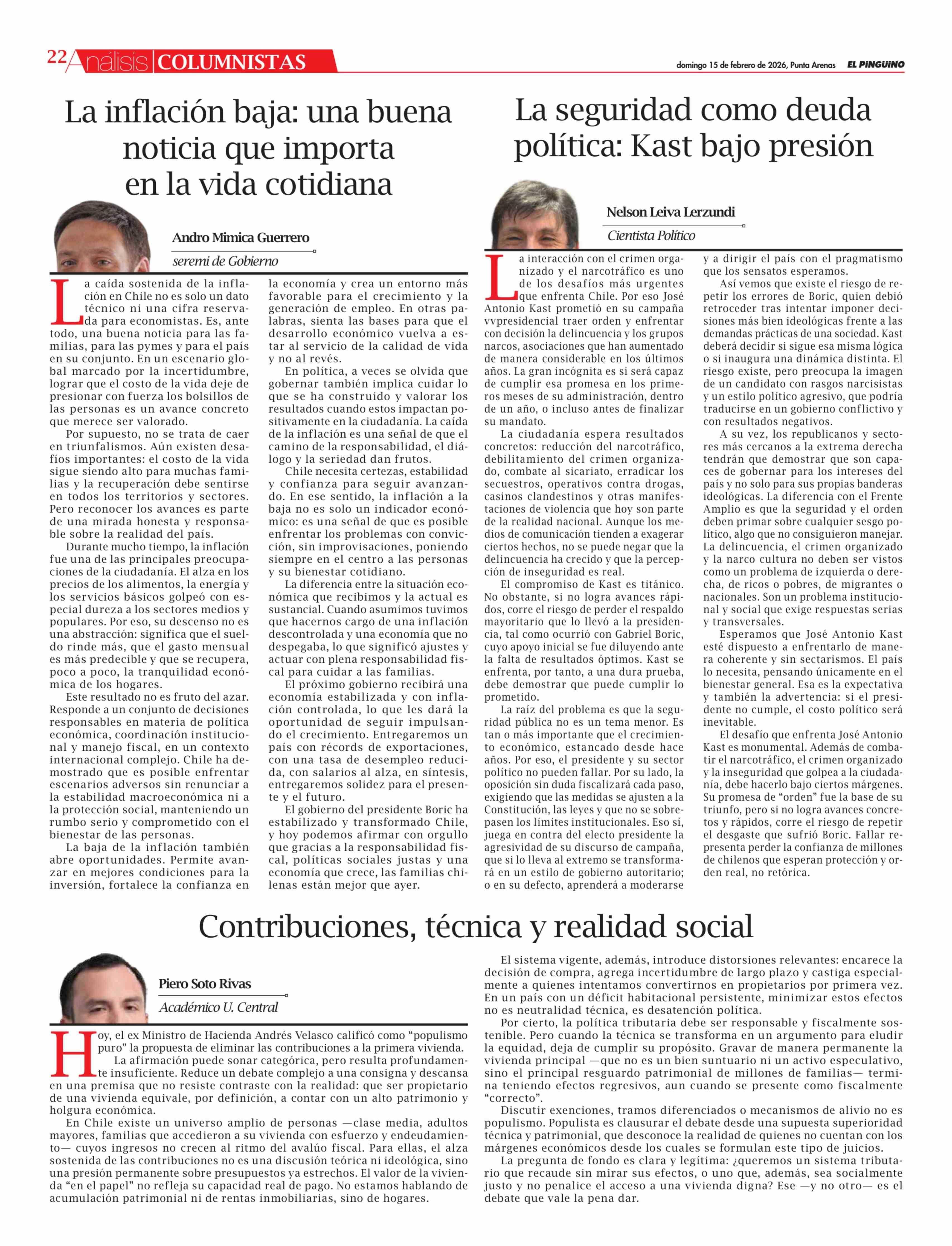 Fecha: 15-02-2026 Sector: Columnas de Opinión Región: Región de Magallanes y de la Antártica Chilena