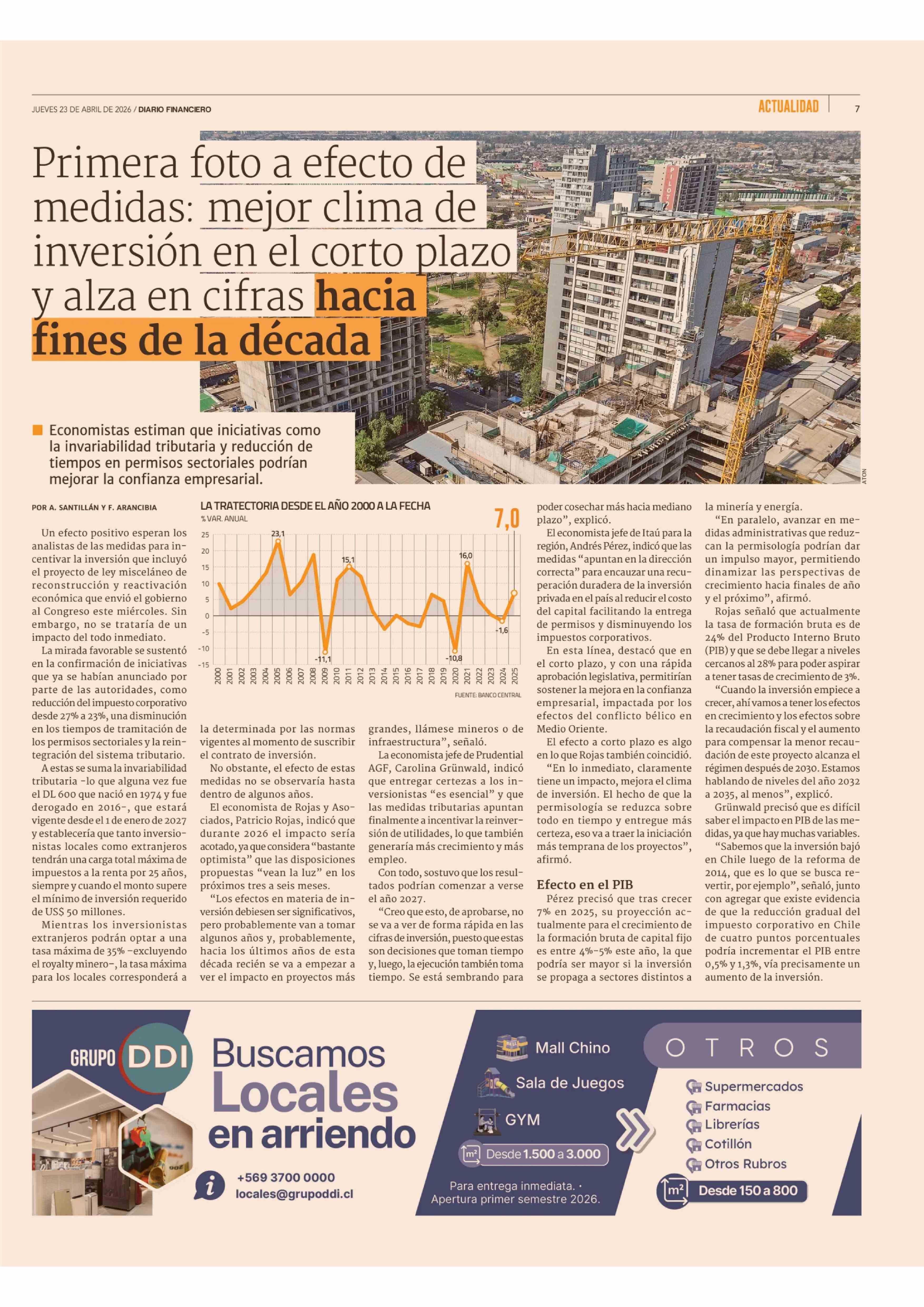 Fuente: Diario Financiero (Diario Financiero) Página(s): 7
