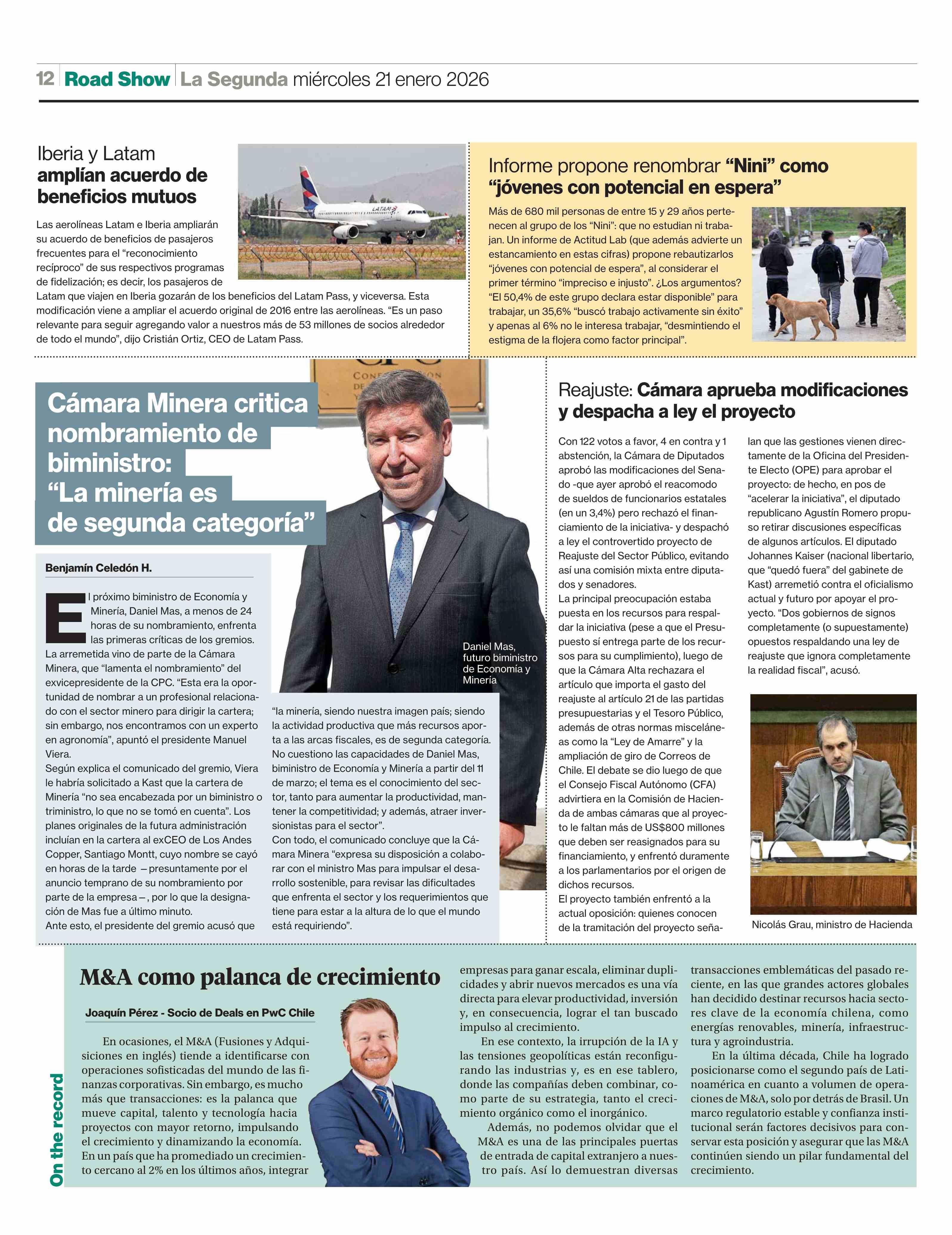 Iberia y Latam amplían acuerdo de beneficios mutuos 21-01-2026 La Segunda |