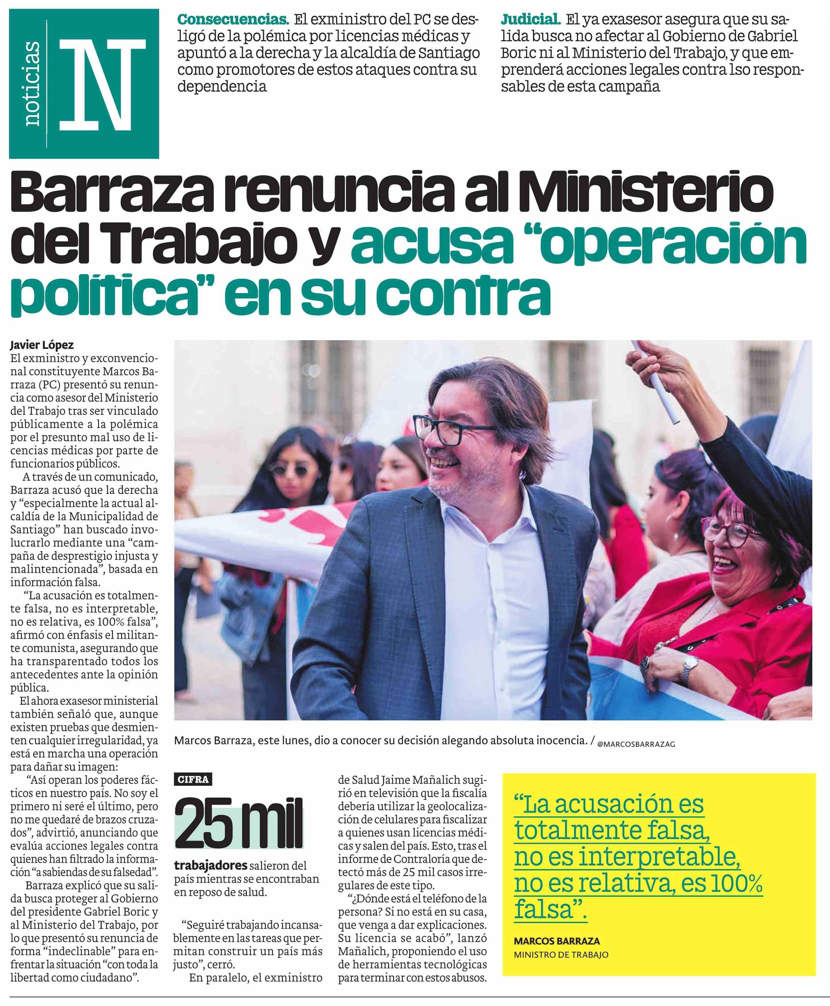 Título: Barraza renuncia al Ministerio del Trabajo y acusa “operación política” en su contra