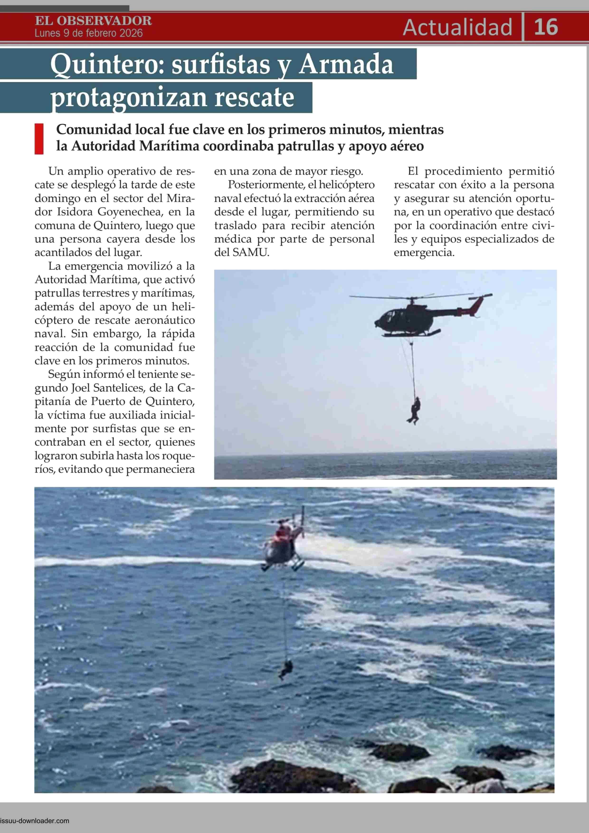 Quintero: surfistas y Armada protagonizan rescate 09-02-2026 El Observador Vespertino |