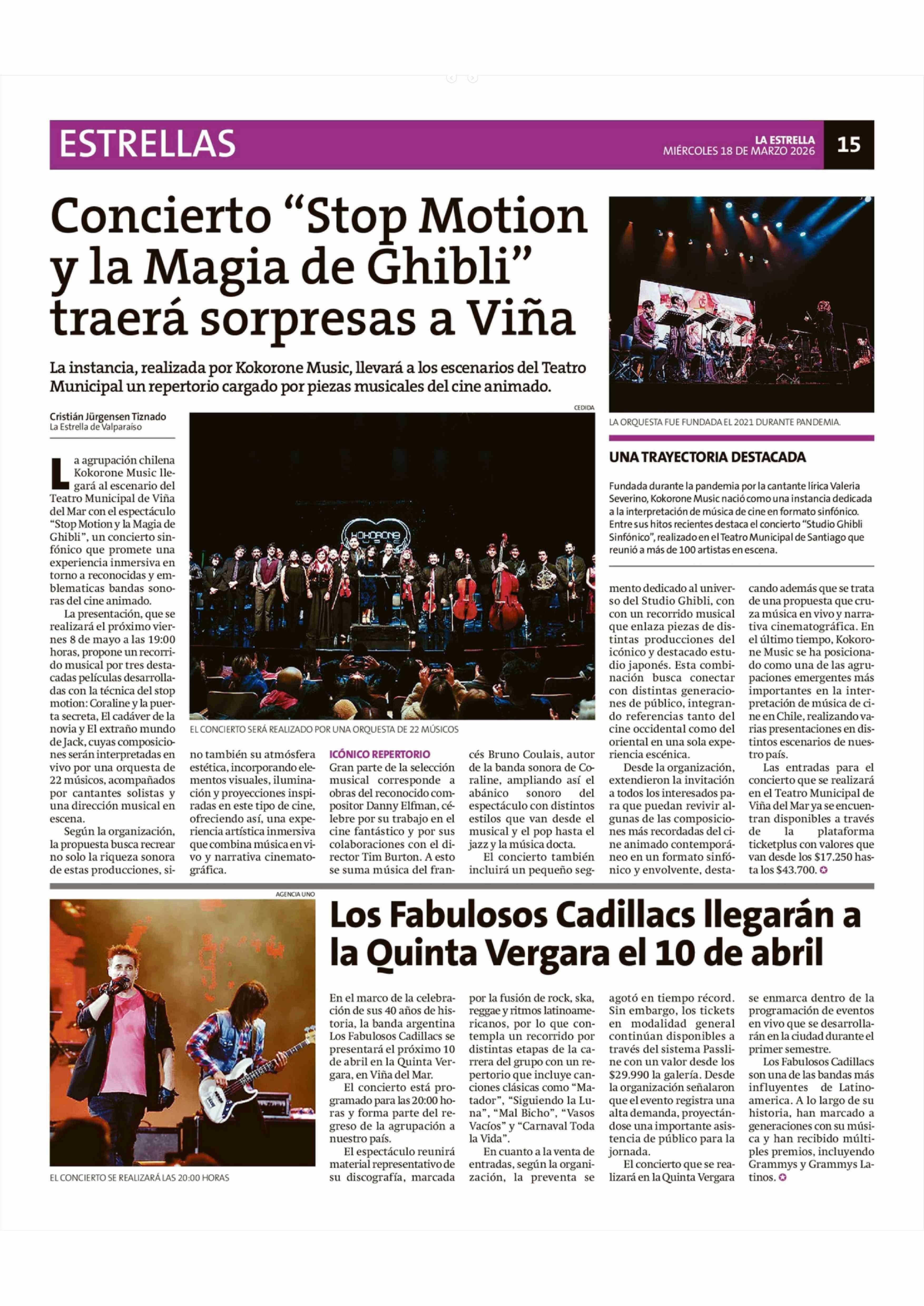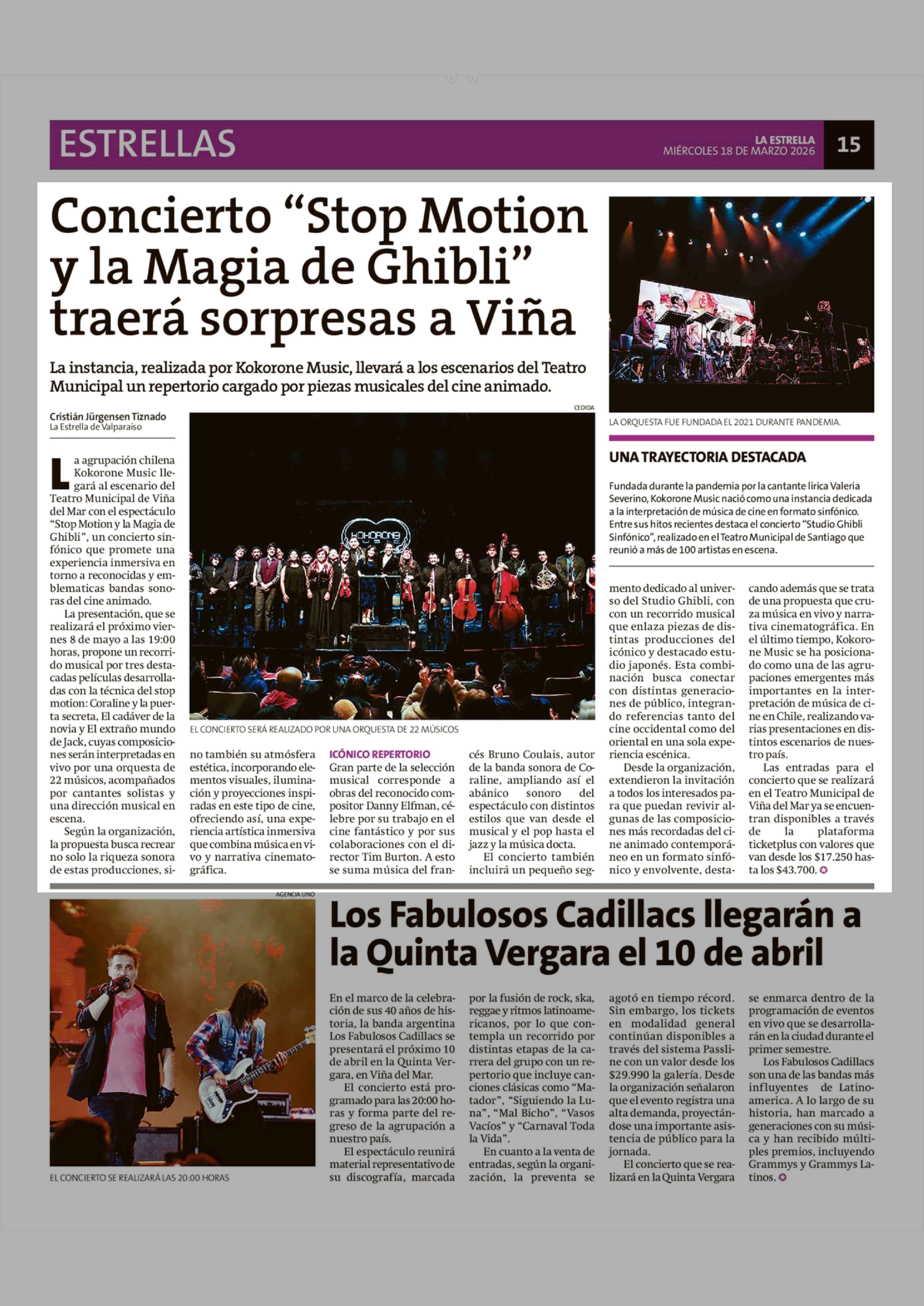 Título: Concierto "Stop Motion y la Magia de Ghibli" traerá sorpresas a Viña