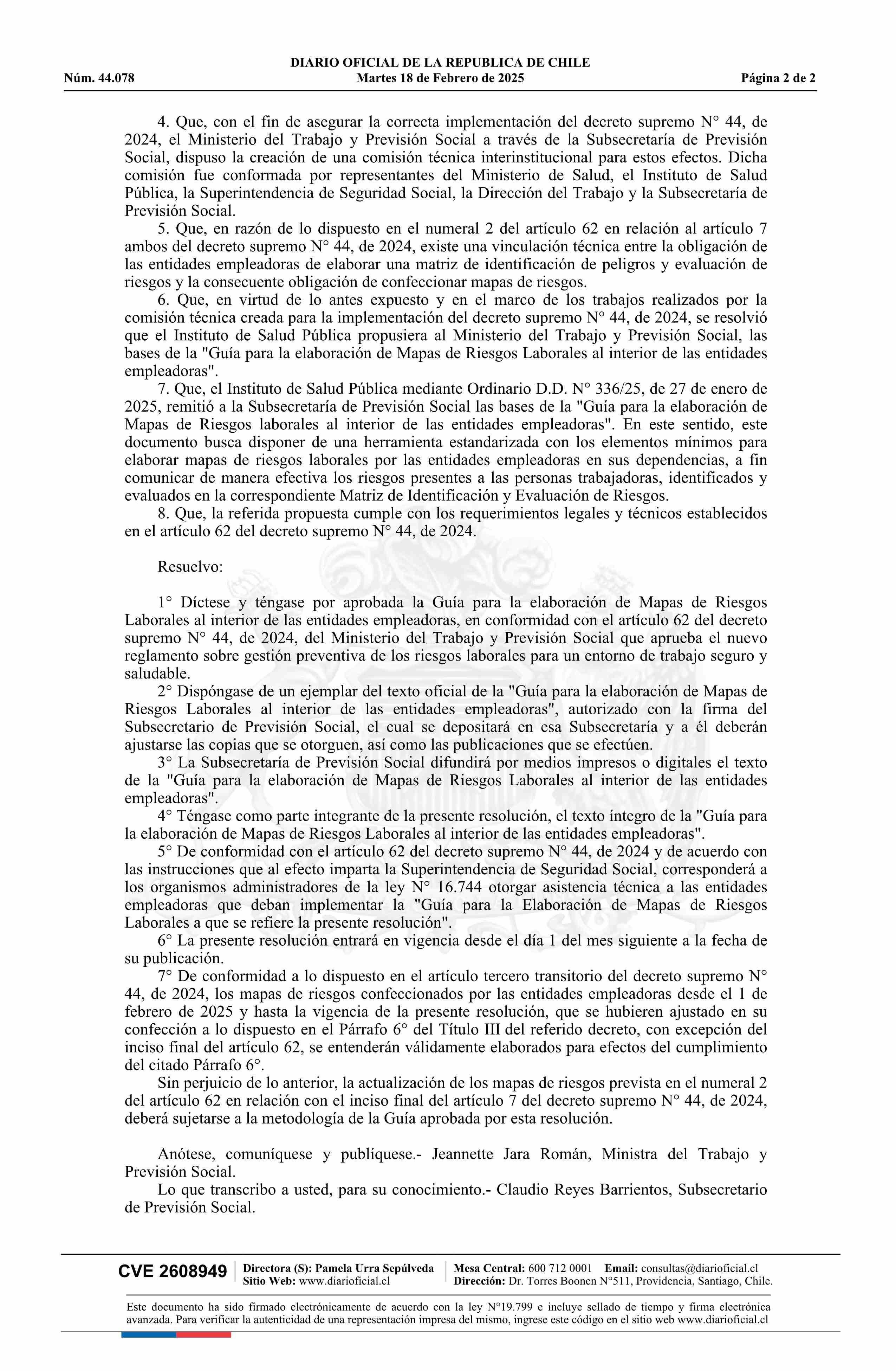 Título: Resolución exenta número 129, de 2025.- Dicta Guía para la elaboración de Mapas de Riesgos Laborales al interior de las entidades empleadoras