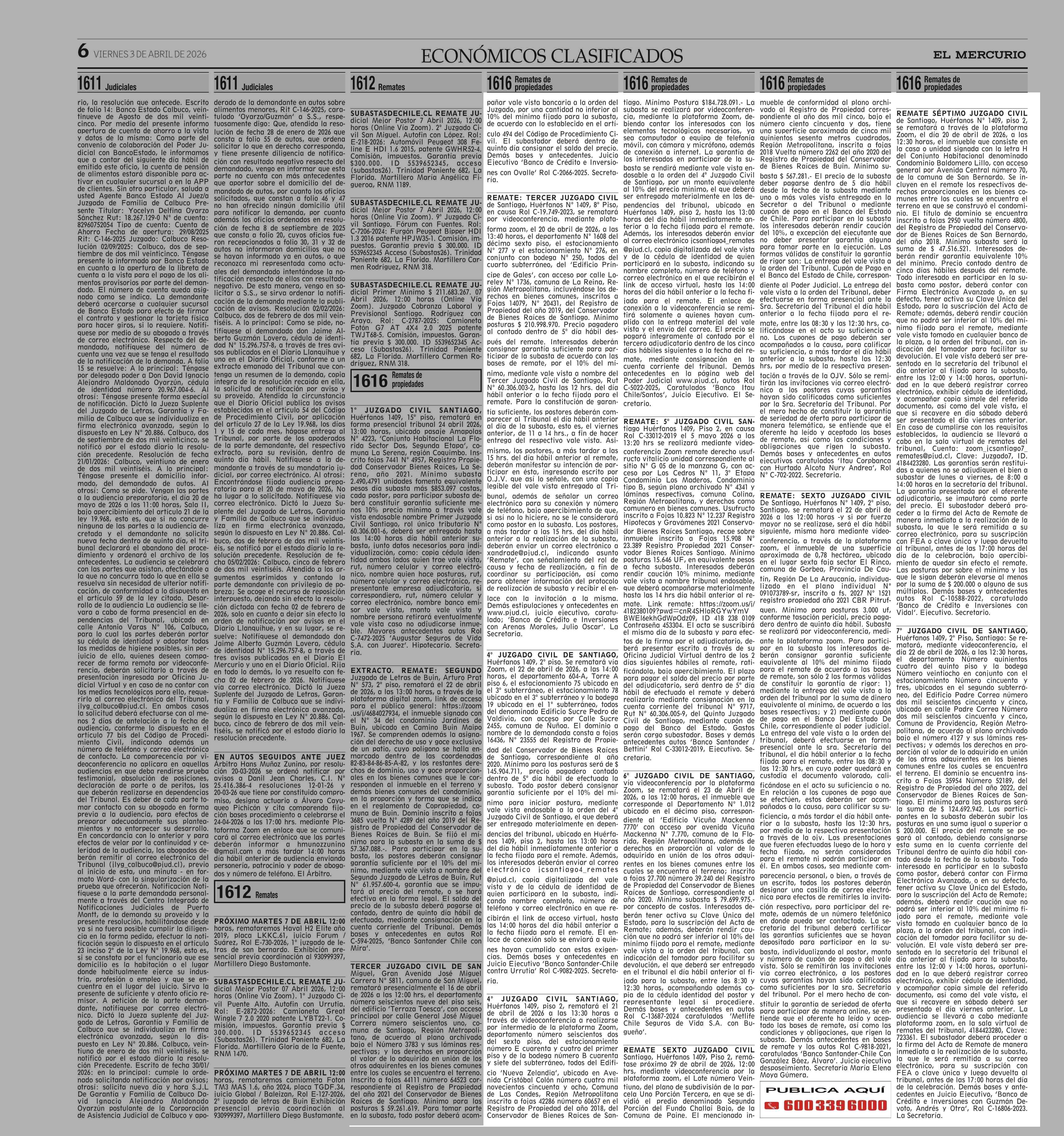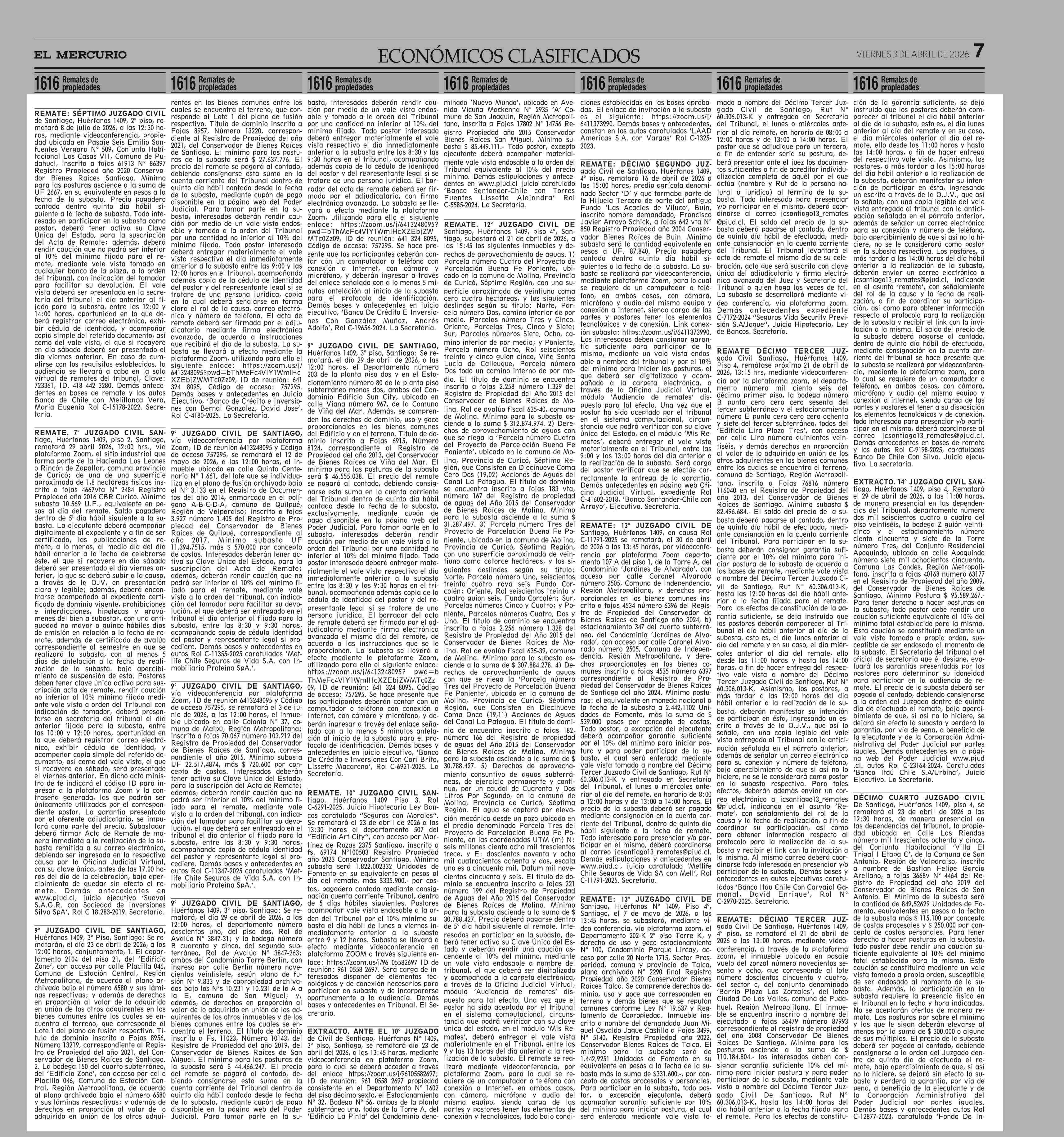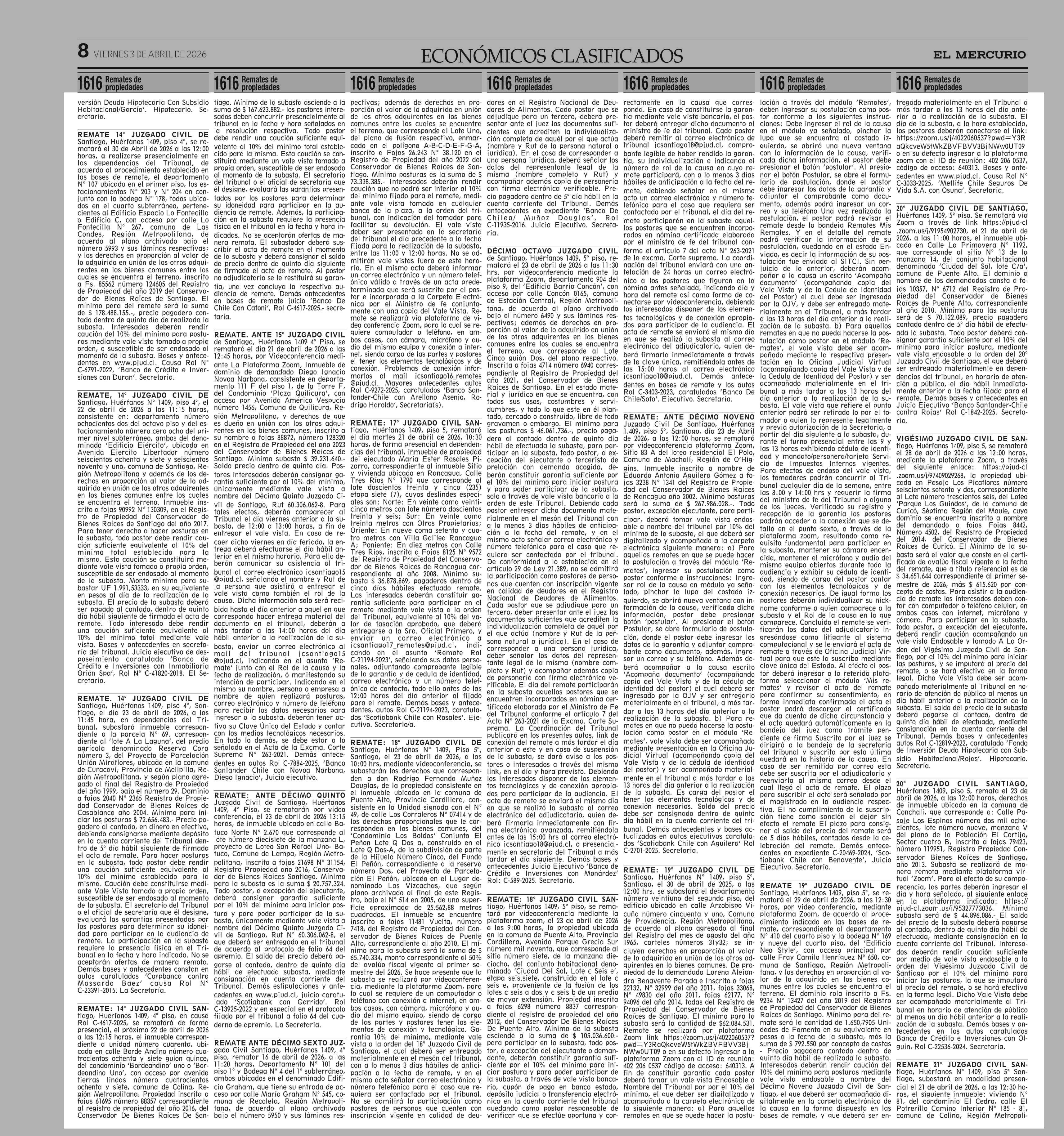 Fecha: 03-04-2026 Sector: Remates Región: Región Metropolitana de Santiago