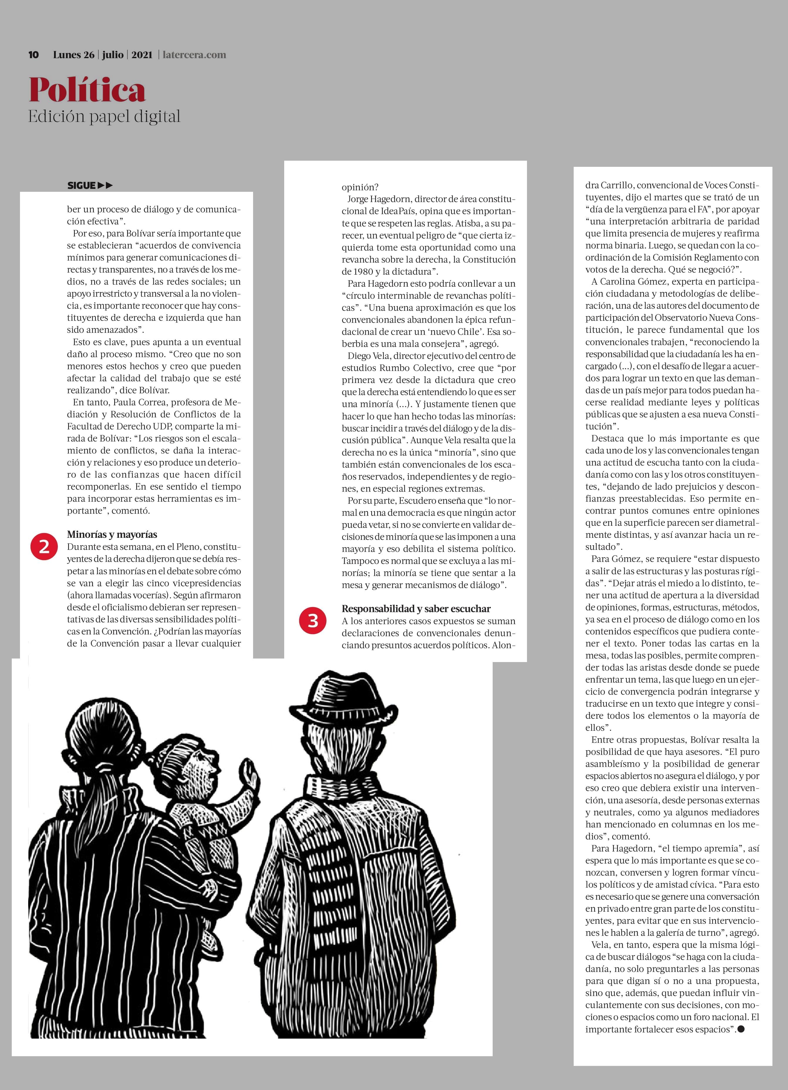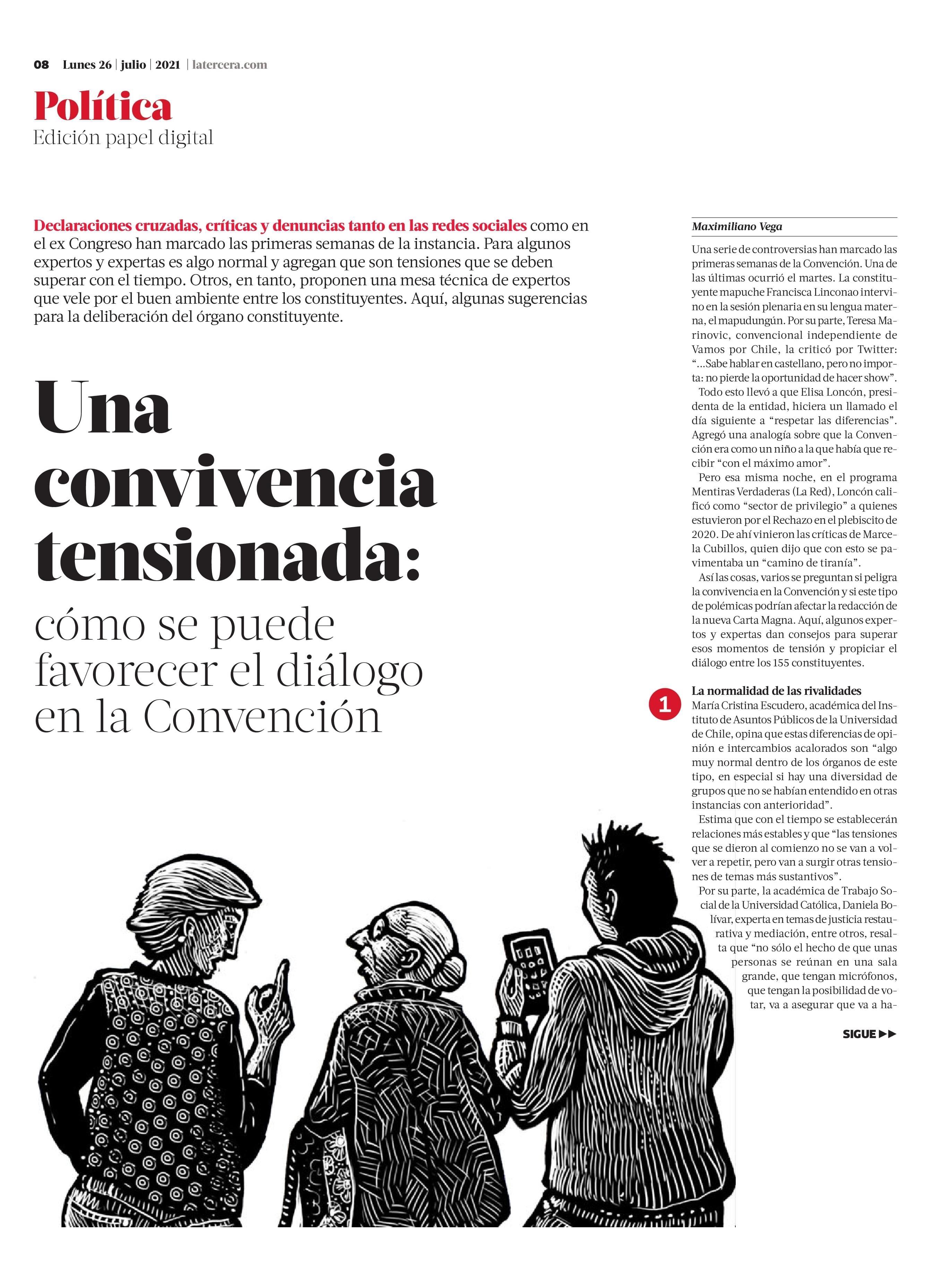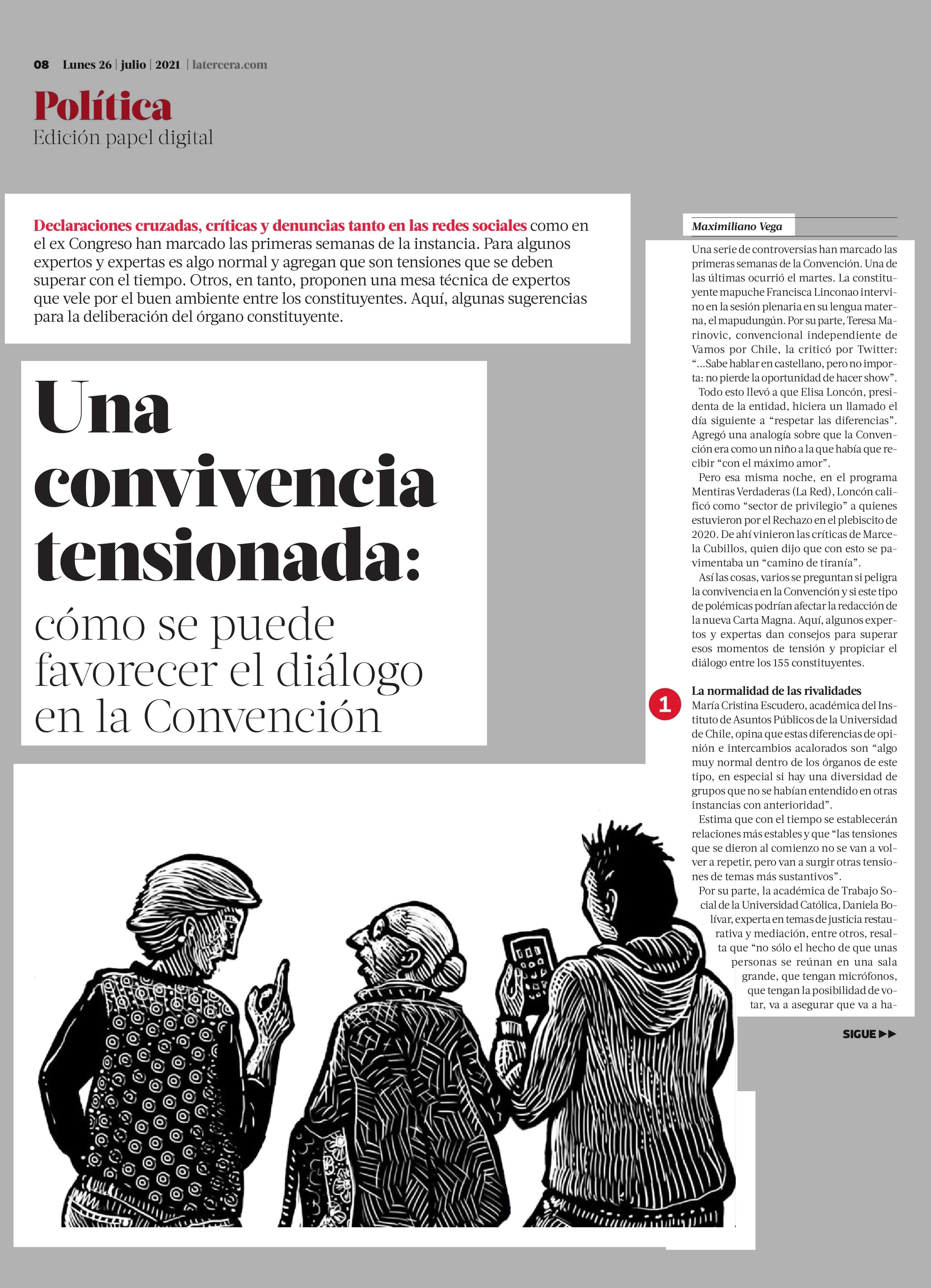 Una convivencia tensionada: cómo se puede favorecer el diálogo en la Convención 26-07-2021 La Tercera |