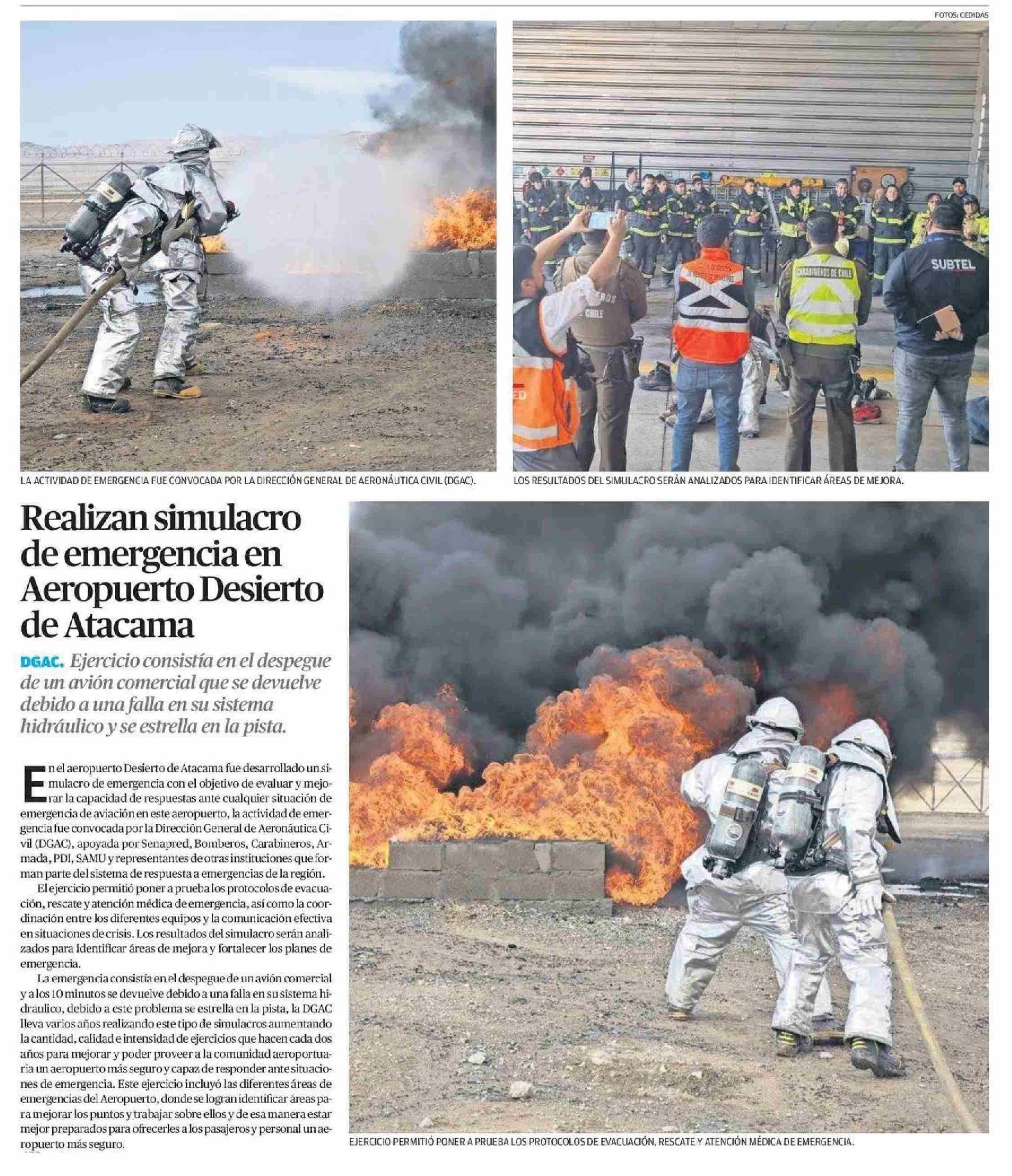 Realizan simulacro de emergencia en Aeropuerto Desierto de Atacama 18-06-2025 El Diario de Atacama |