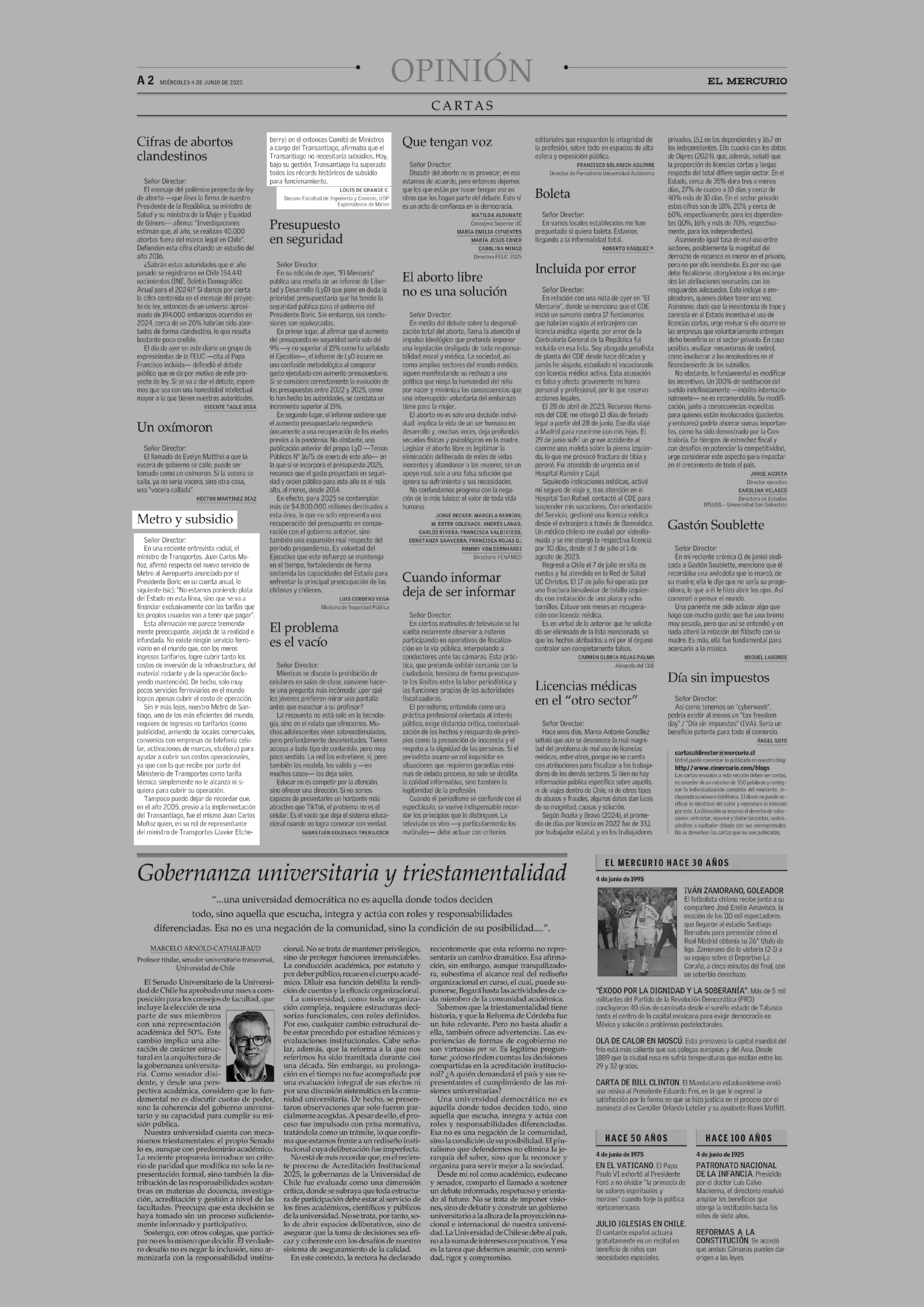 CARTAS: Metro y subsidio 04-06-2025 El Mercurio |