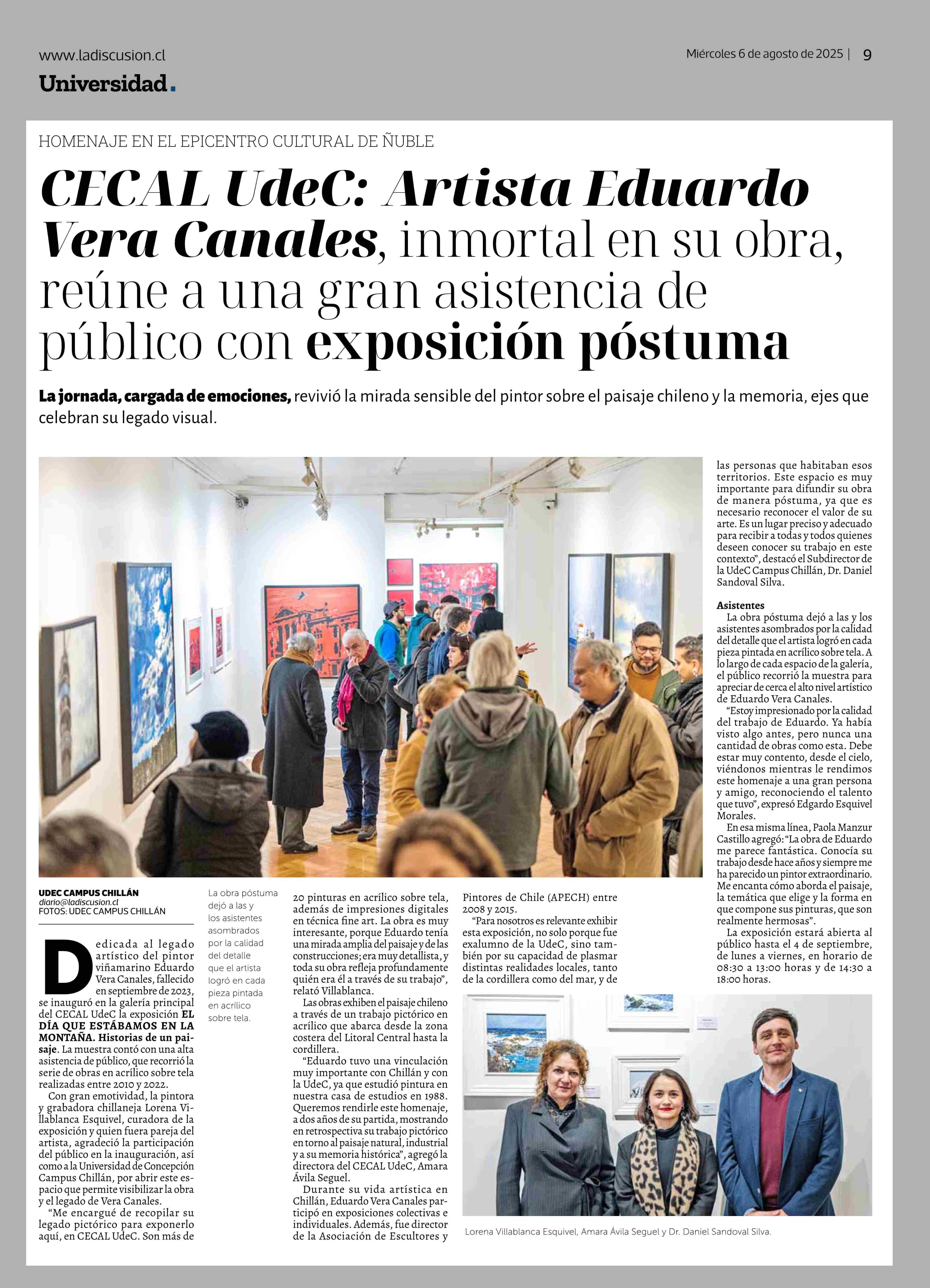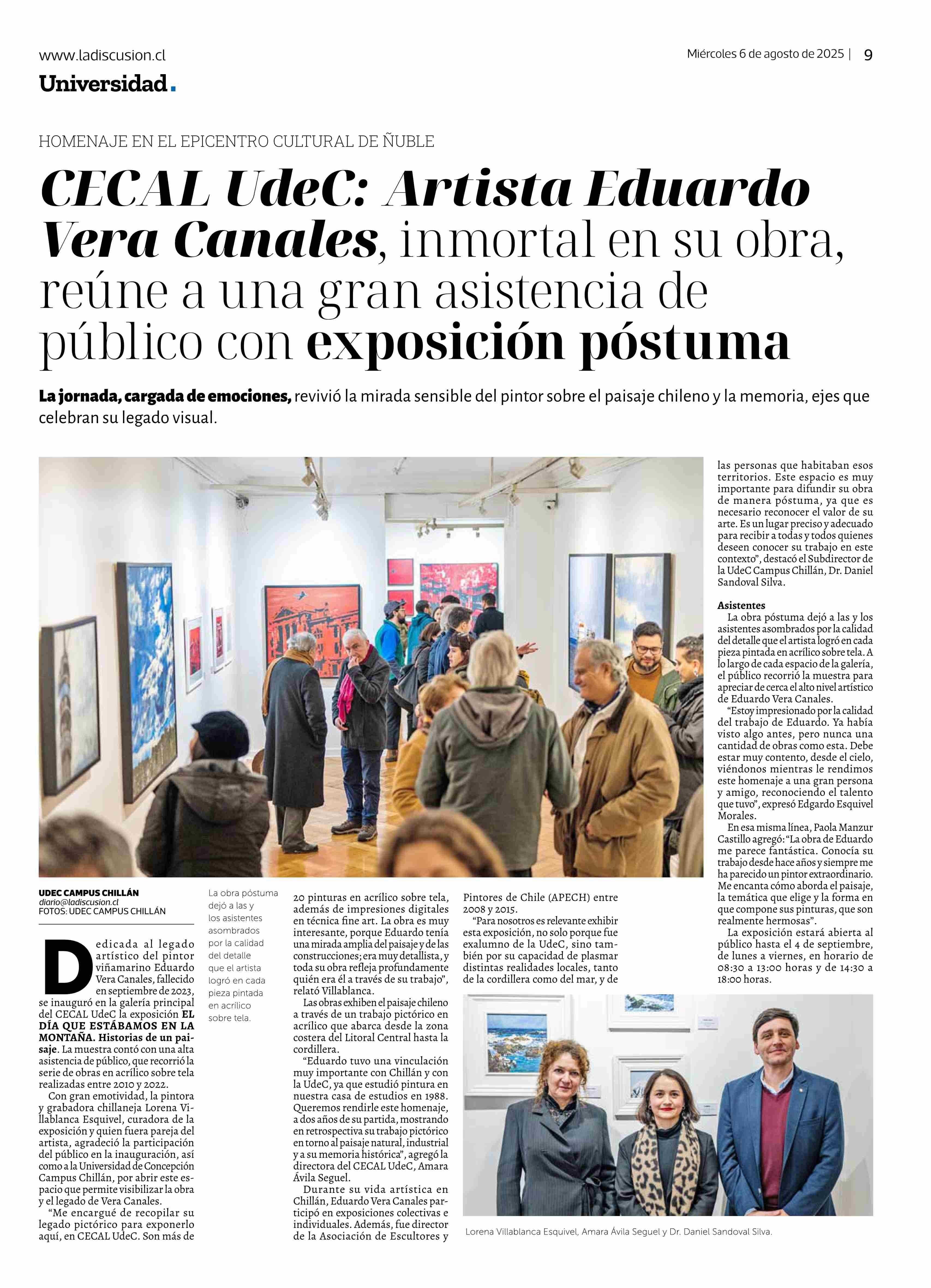 CECAL UdeC: Artista Eduardo Vera Canales, inmortal en su obra, reúne a una gran asistencia de público con exposición póstuma 06-08-2025 La Discusión |