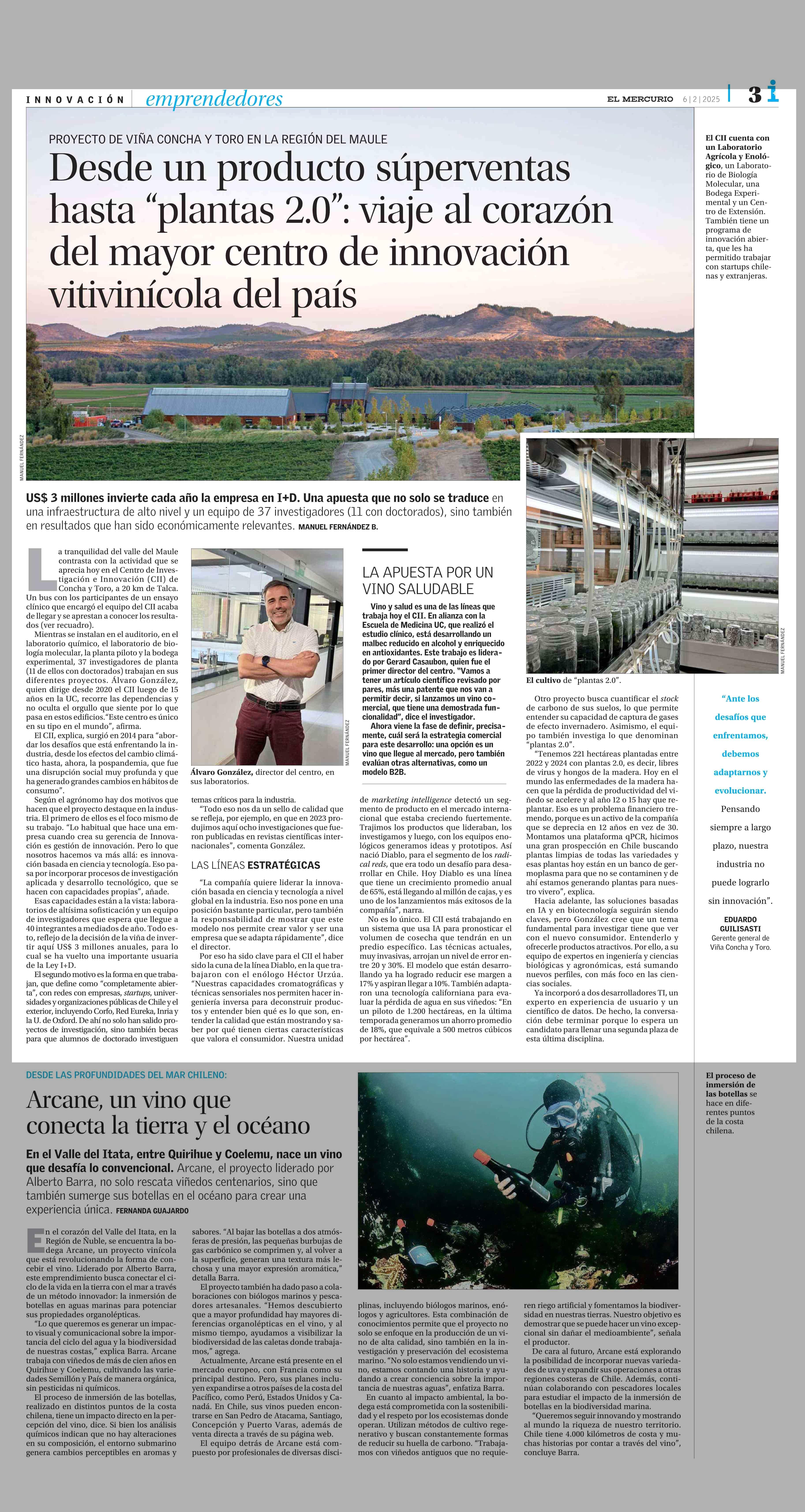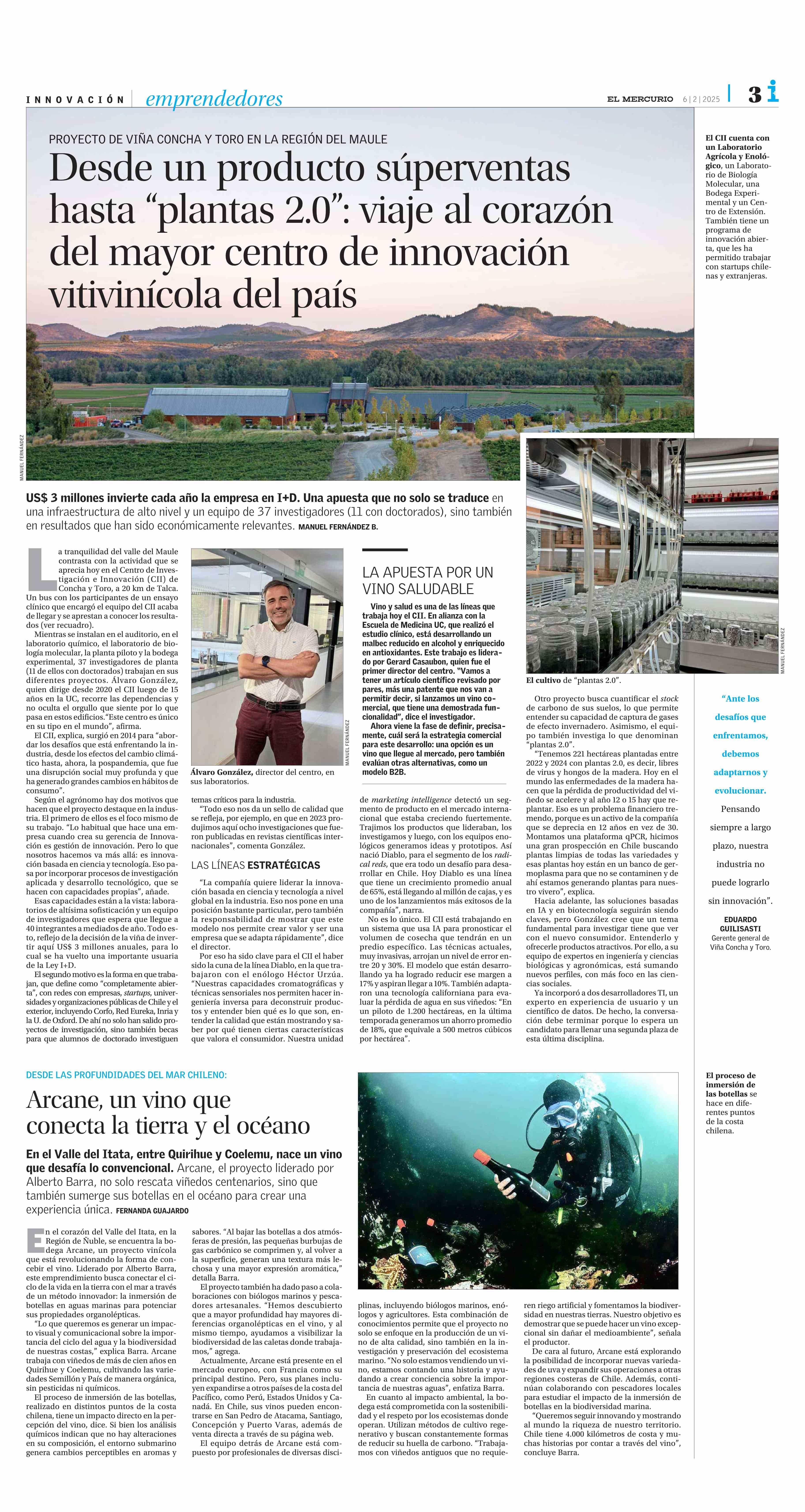 Desde un producto súperventas hasta “plantas 2.0”: viaje al corazón del mayor centro de innovación vitivinícola del país 06-02-2025 El Mercurio |