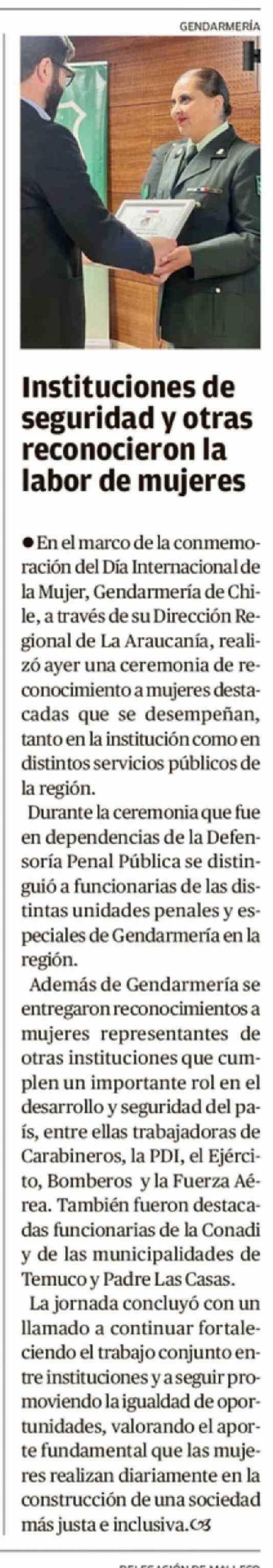 Instituciones de seguridad y otras reconocieron la labor de mujeres 11-03-2026 El Austral de la Araucanía |