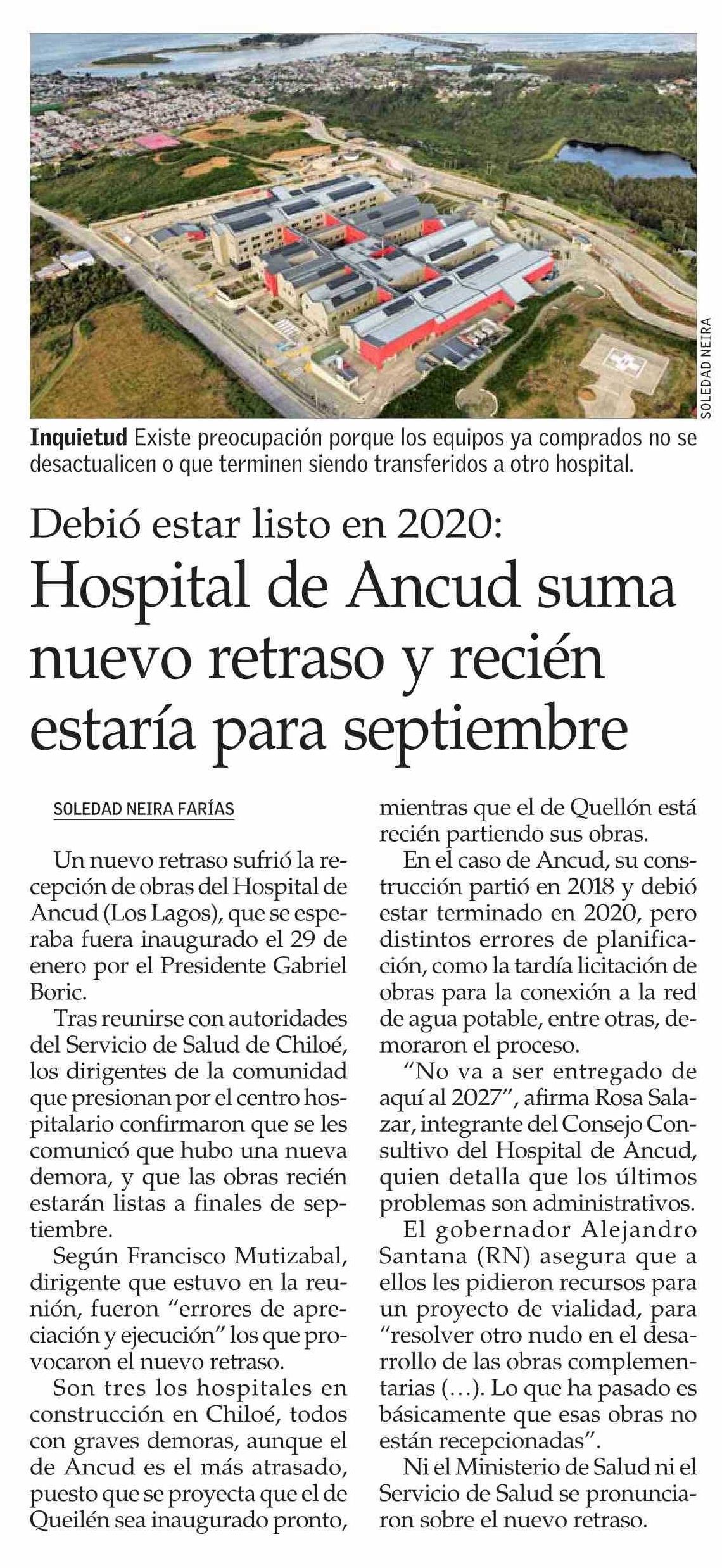 Título: Hospital de Ancud suma nuevo retraso y recién estaría para septiembre