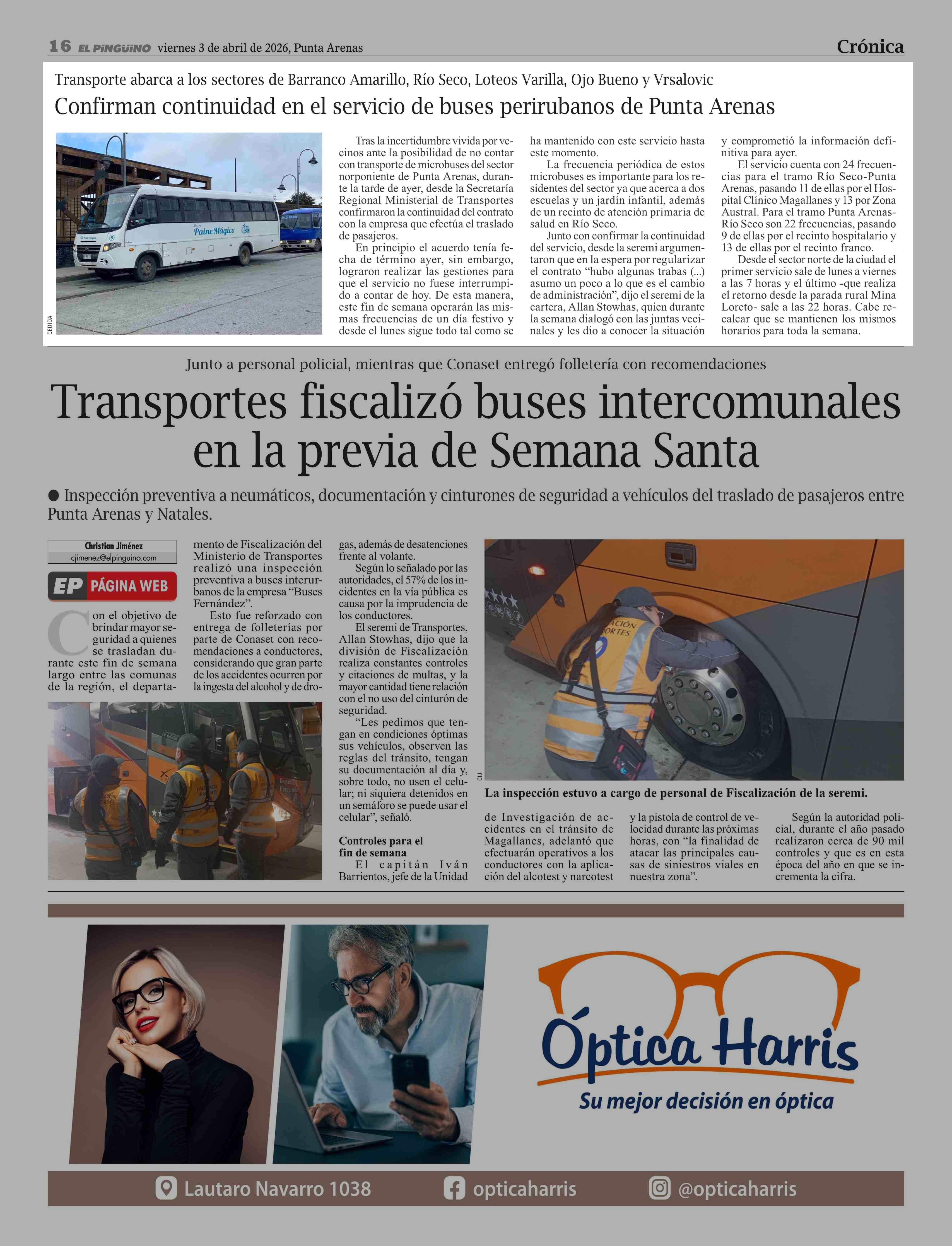 Confirman continuidad en el servicio de buses perirubanos de Punta Arenas 03-04-2026 El Pingüino |