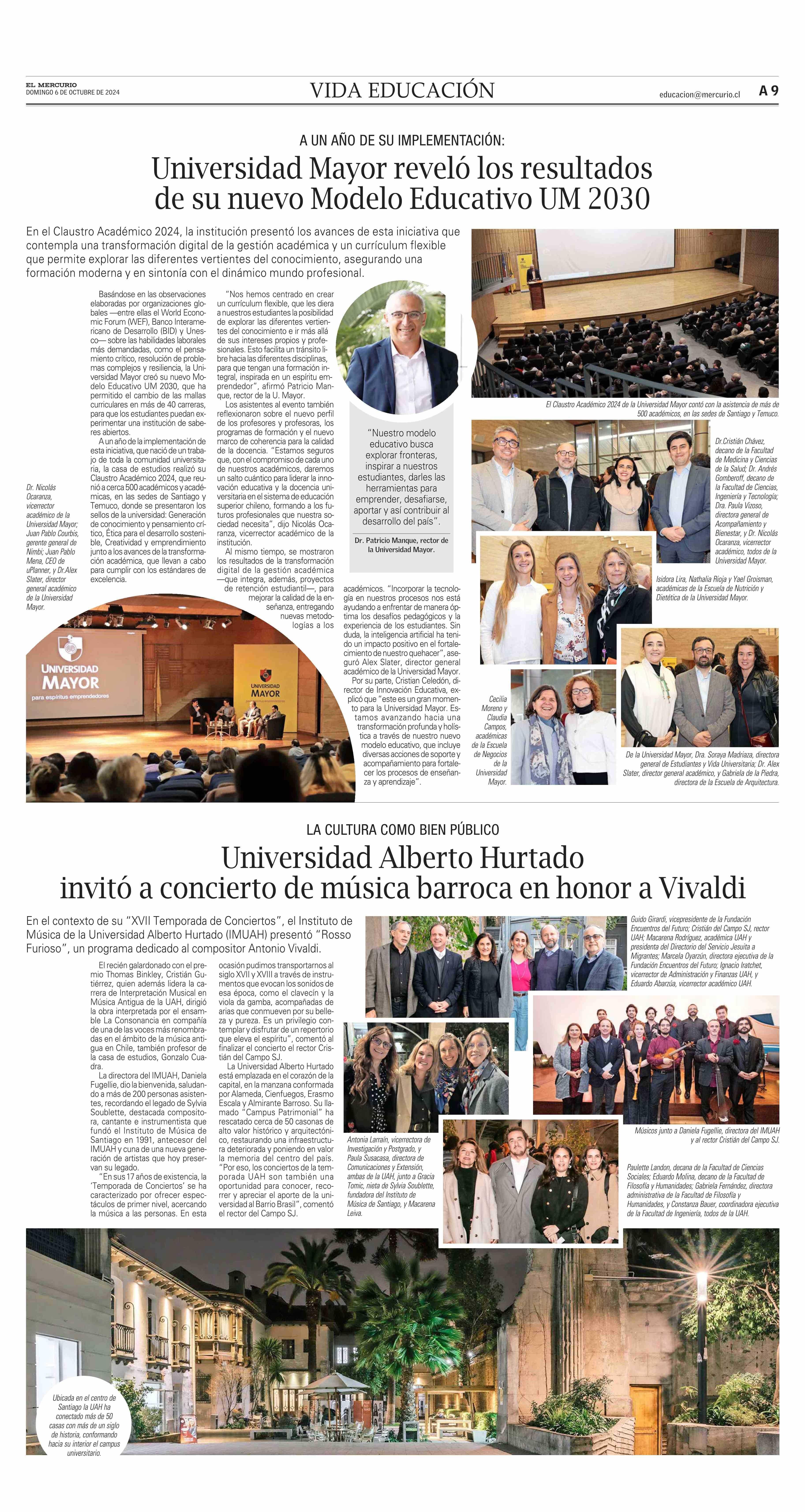 Universidad Mayor reveló los resultados de su nuevo Modelo Educativo UM 2030 06-10-2024 El Mercurio |