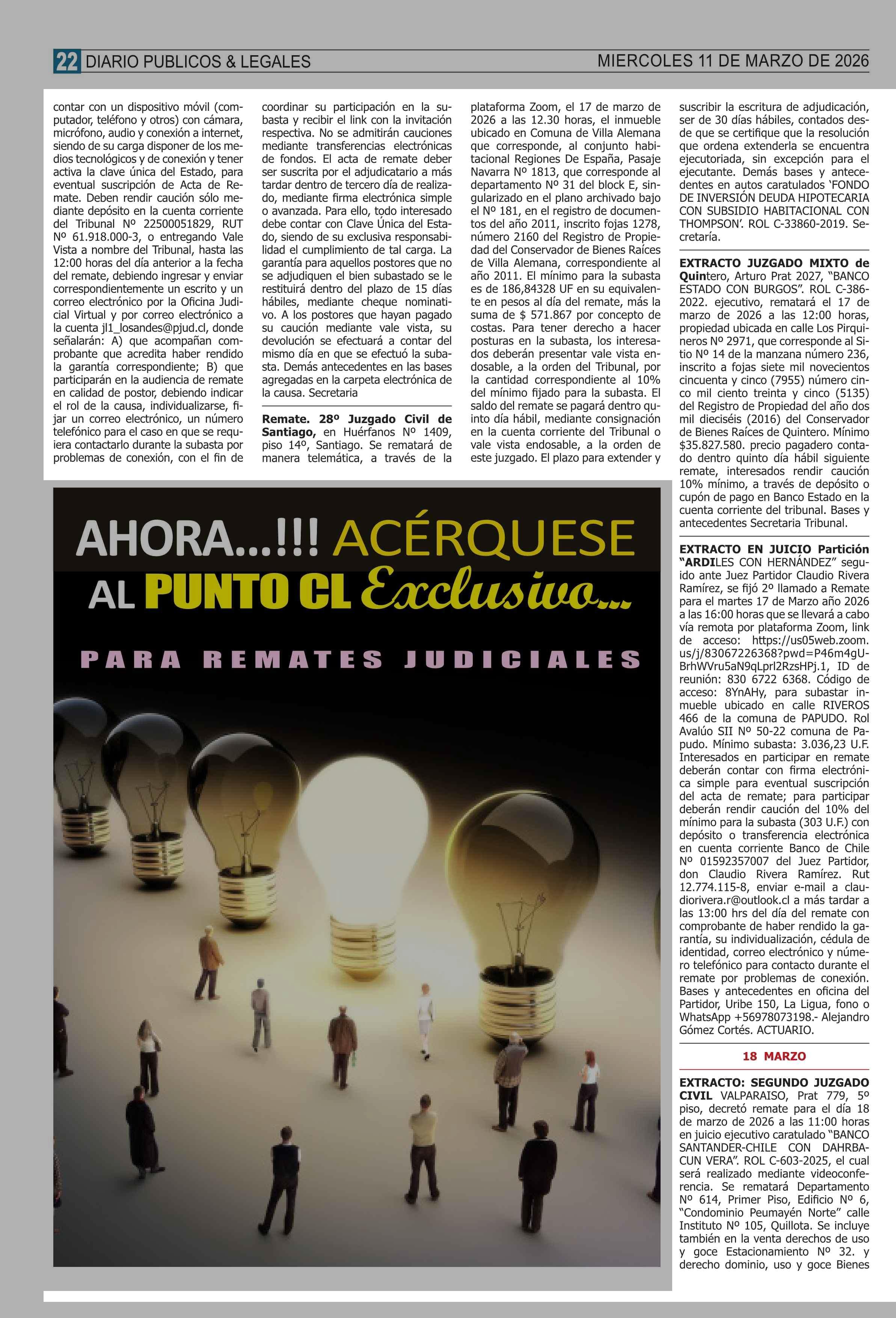 | Fecha: | 11-03-2026 | Sector: | Remates | Región: | Región Metropolitana de Santiago |