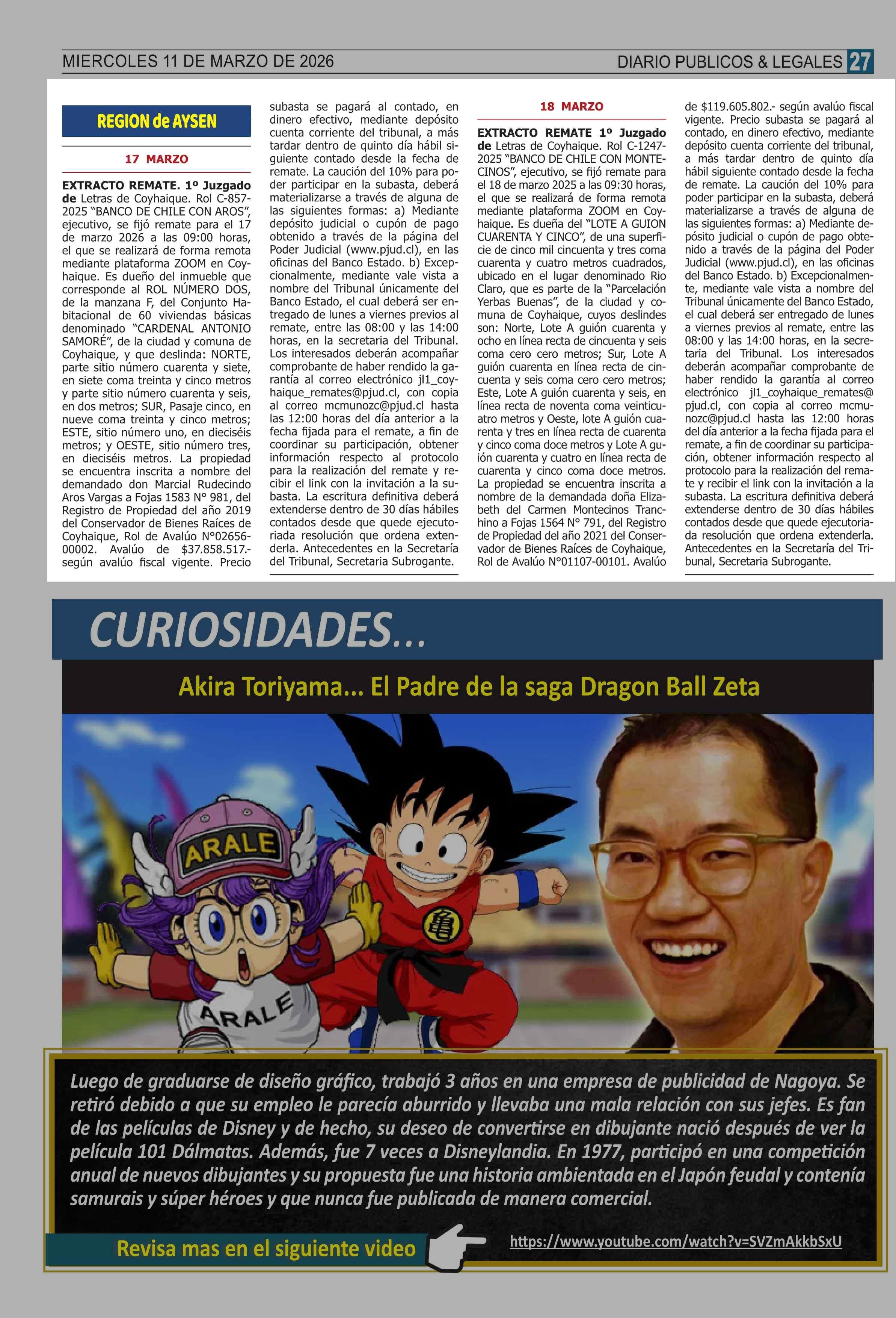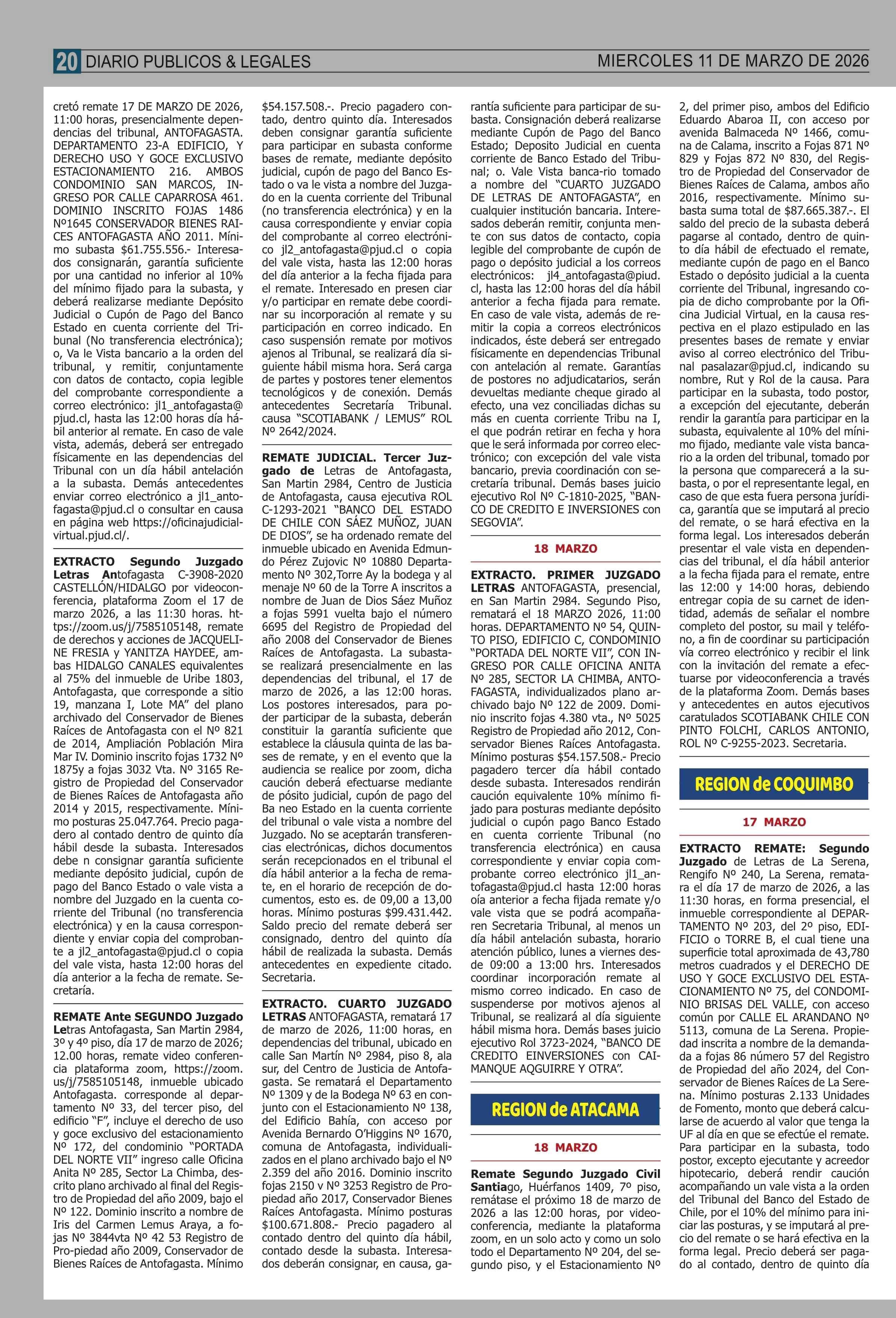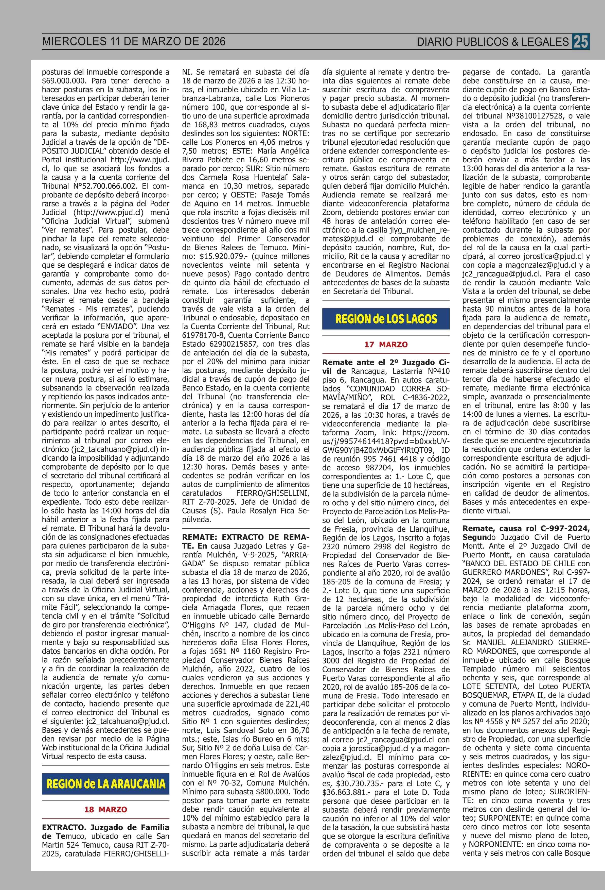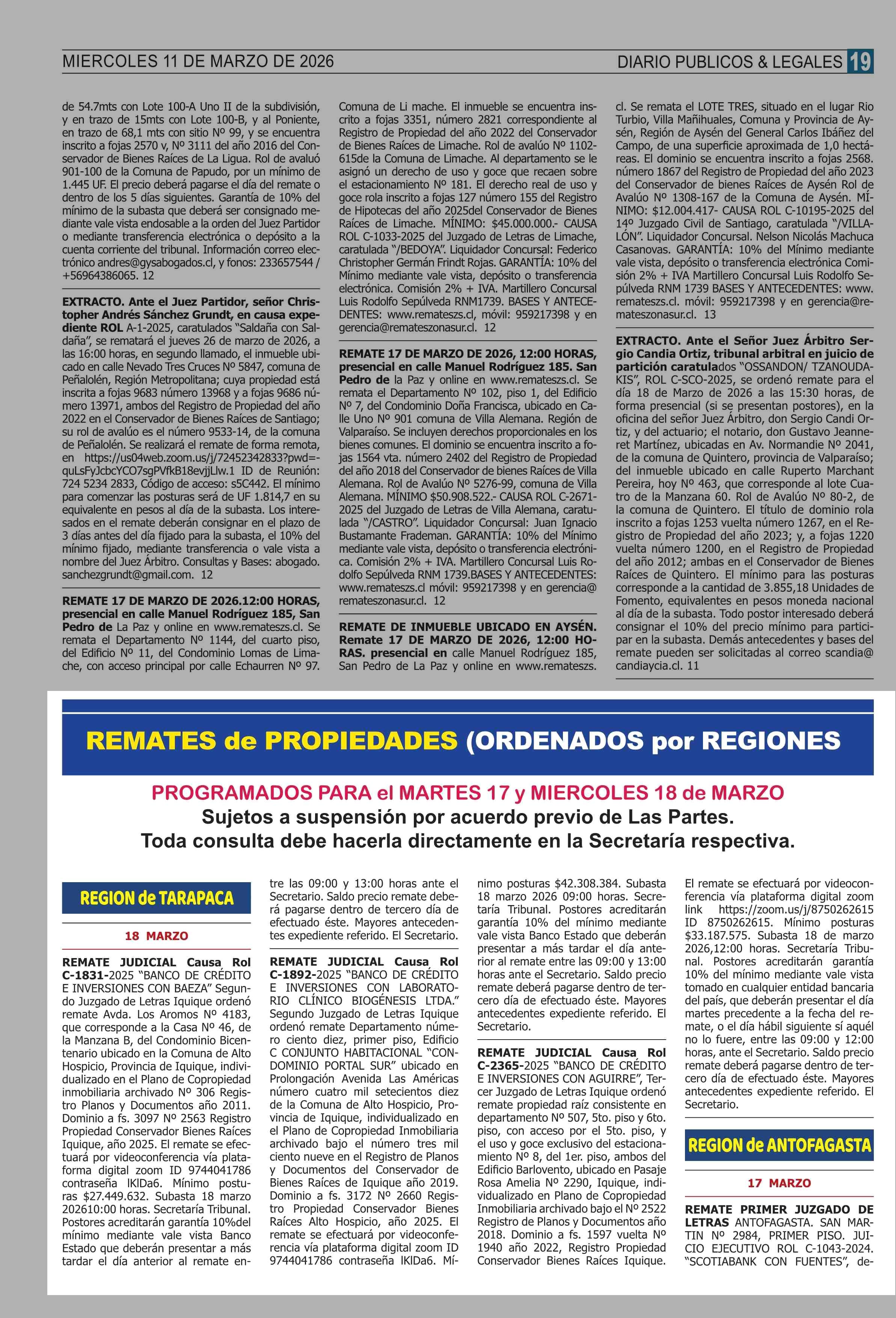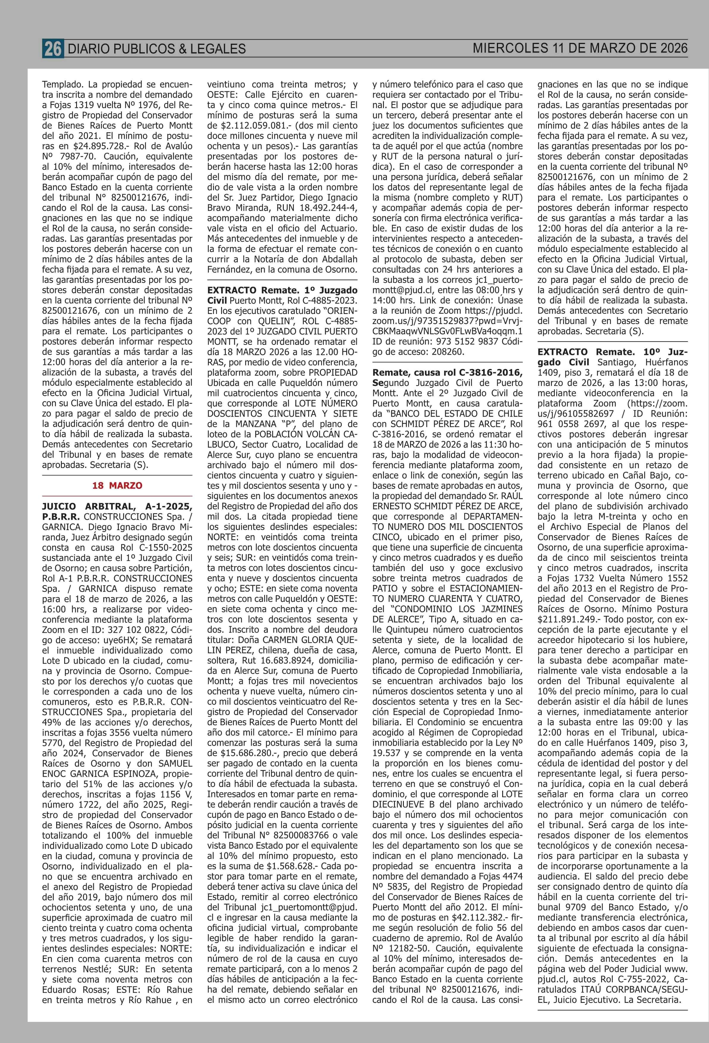 REMATES: REMATES de PROPIEDADES (ORDENADOS por REGIONES 11-03-2026 P&L Públicos y Legales |