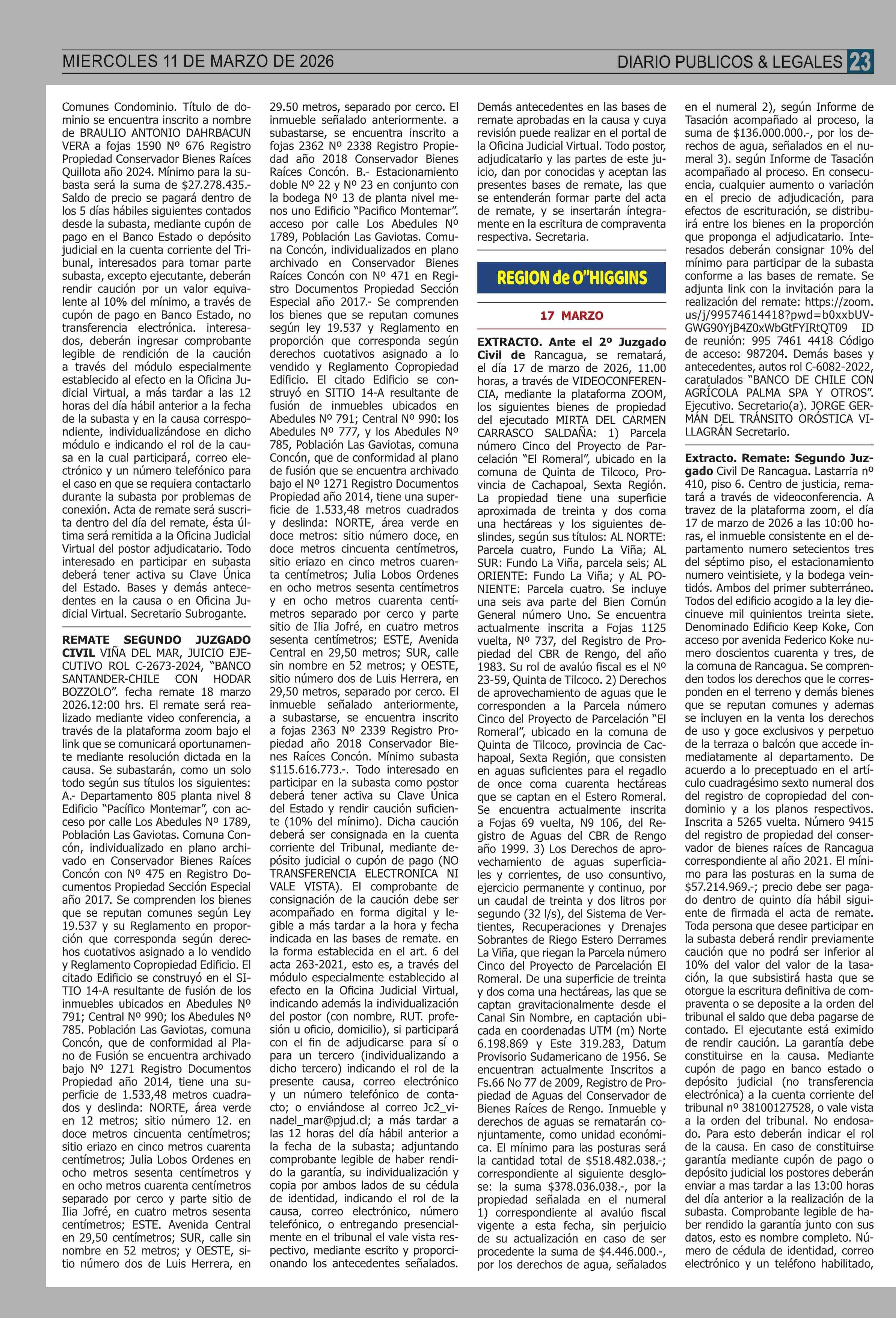 | Título: | REMATES: REMATES de PROPIEDADES (ORDENADOS por REGIONES |