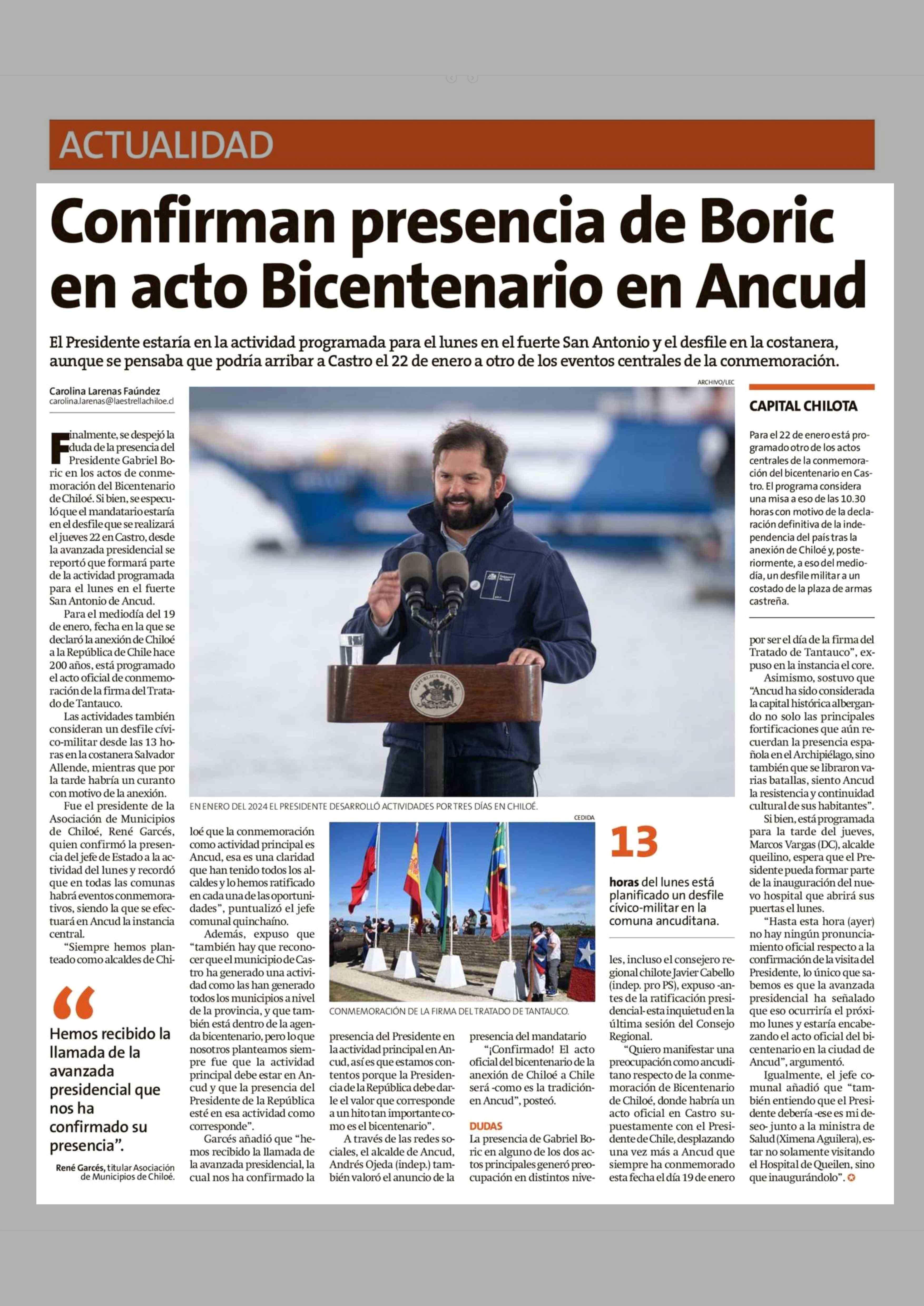 Título: Confirman presencia de Boric en acto Bicentenario en Ancud