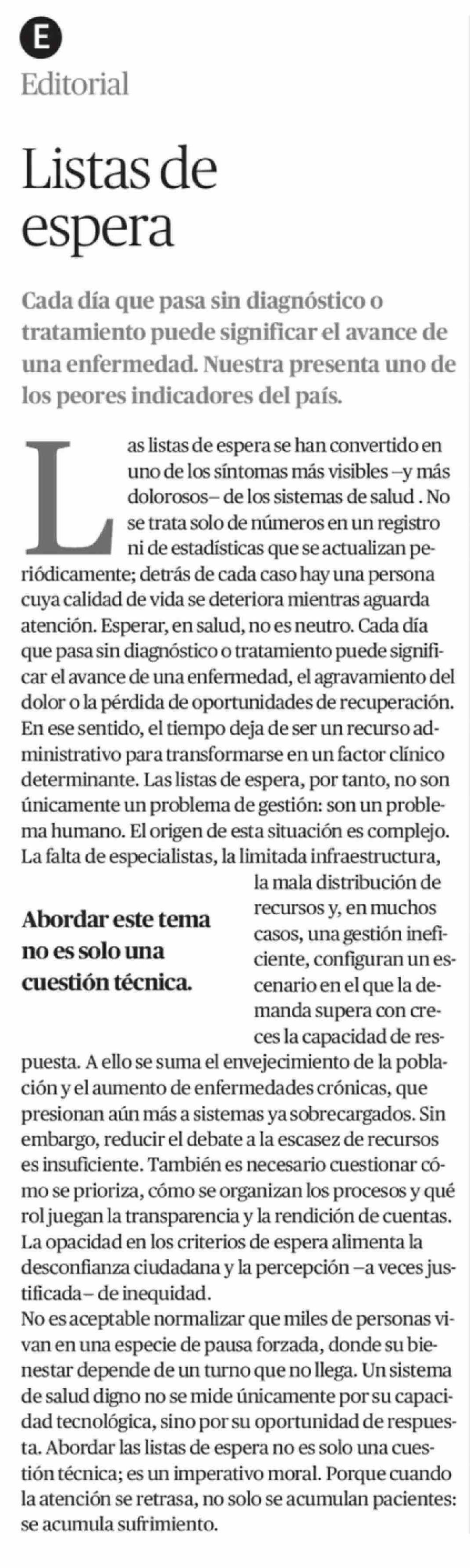 Editorial: Listas de espera 04-04-2026 El Diario de Atacama |