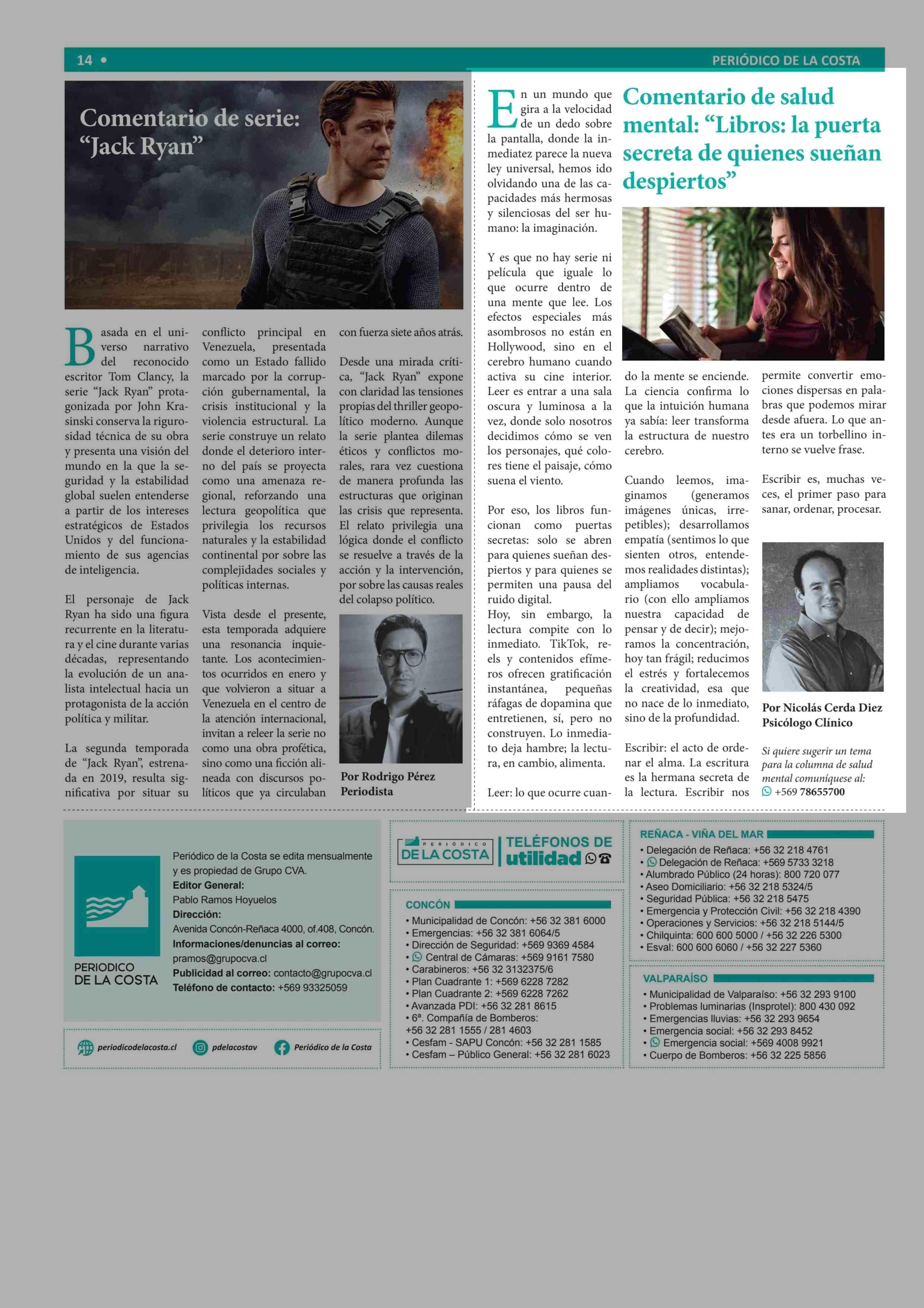 Comentario de salud mental: “Libros: la puerta secreta de quienes sueñan despiertos” 23-01-2026 Periódico de la Costa |