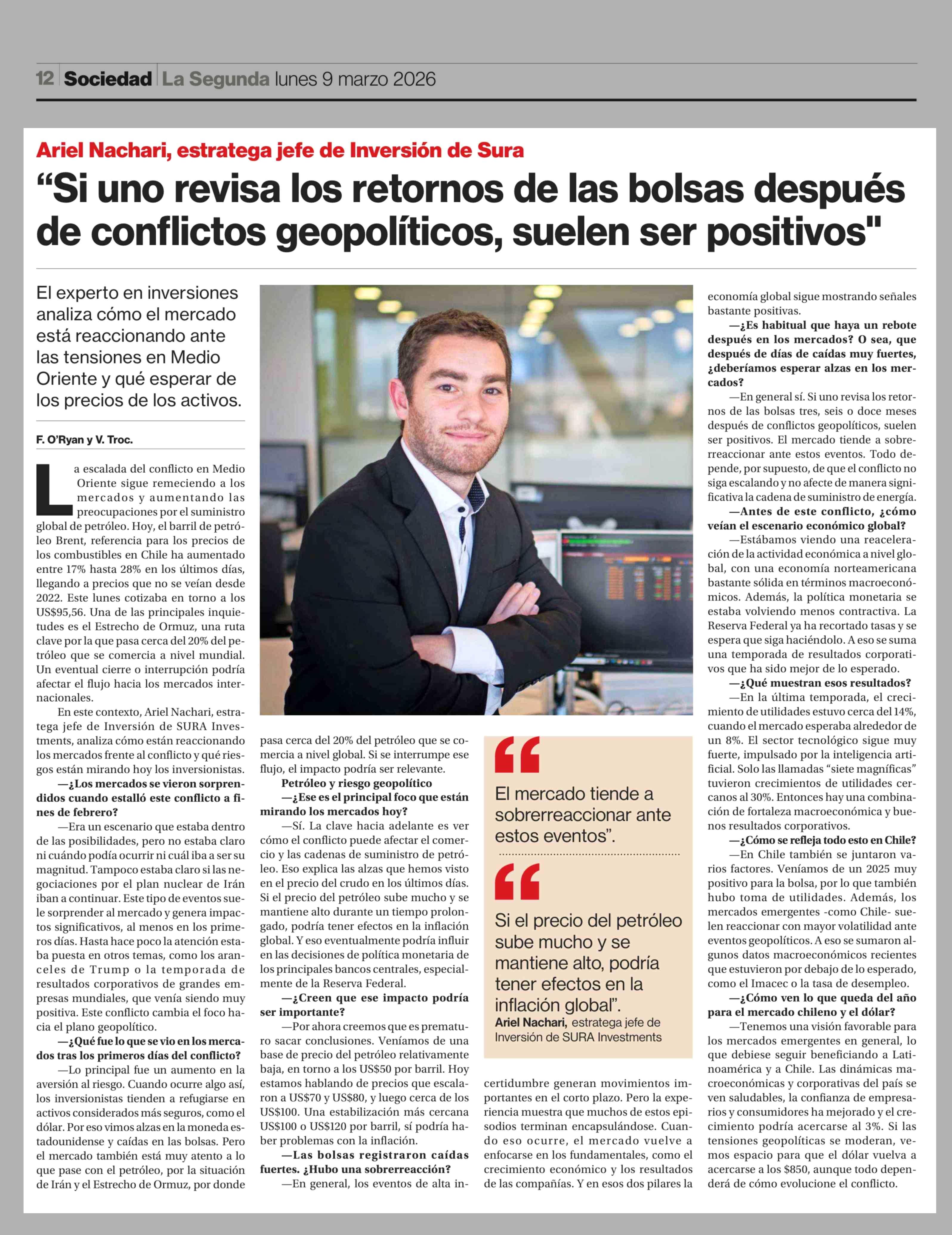 Título: "Si uno revisa los retornos de las bolsas después de conflictos geopolíticos, suelen ser positivos"